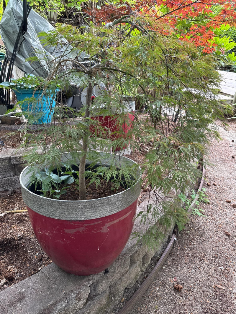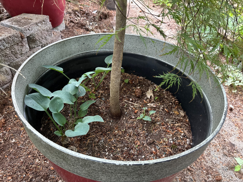 Lot # 28 - Large Japanese Maple Tree and Hosta's in 2 Toned Pot