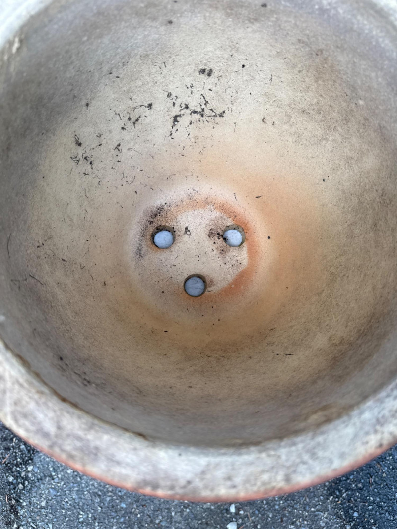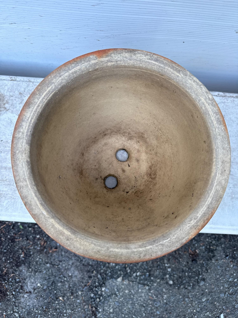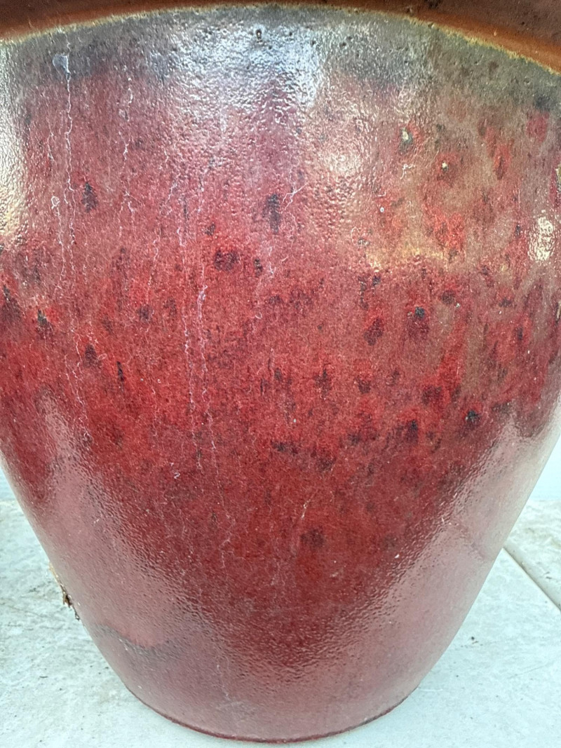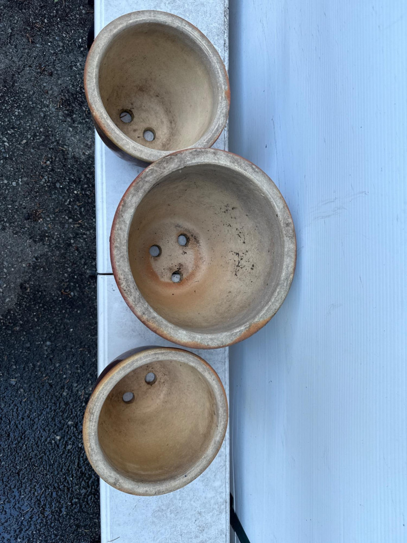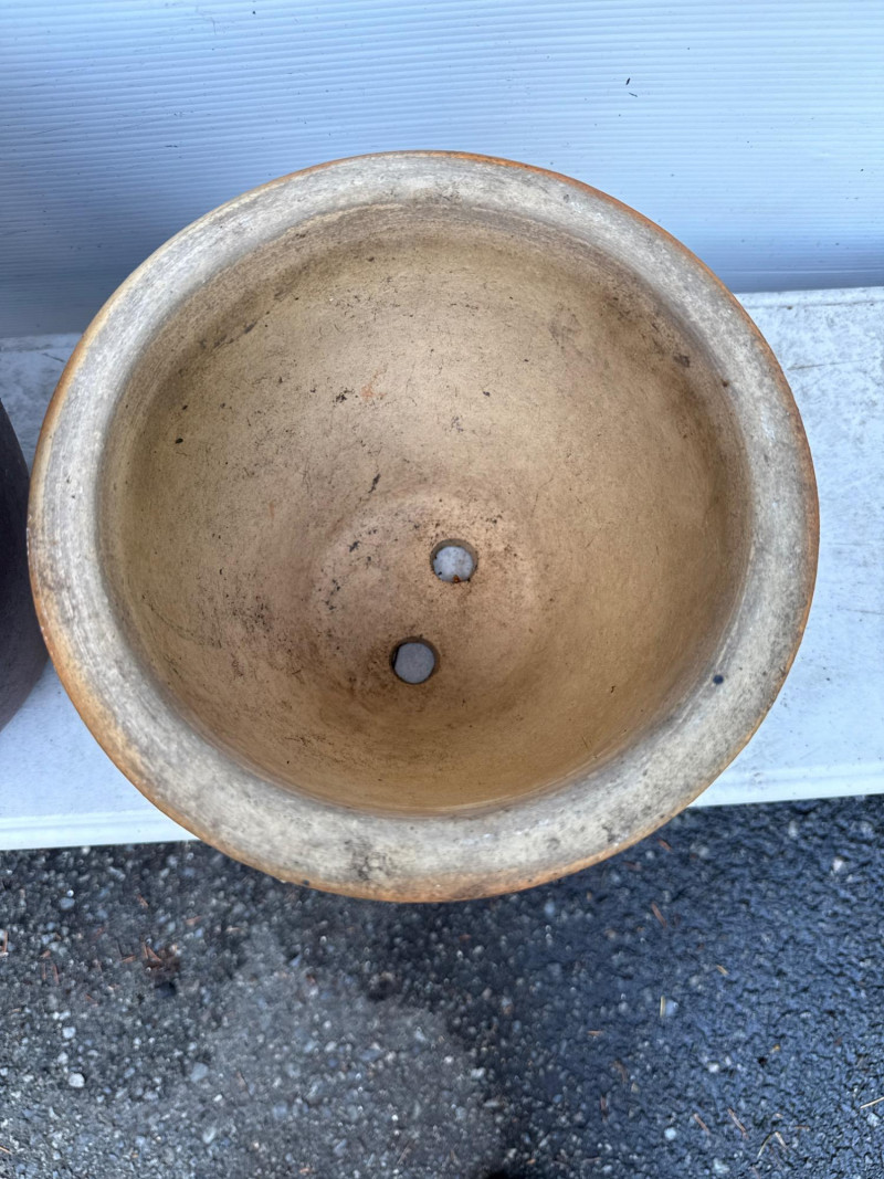 Quality ceramic glazed clay pots. Rims are brown and unglazed. Color variations In good condition. Two sizes. Small are 8in tall, 9.5in wide.