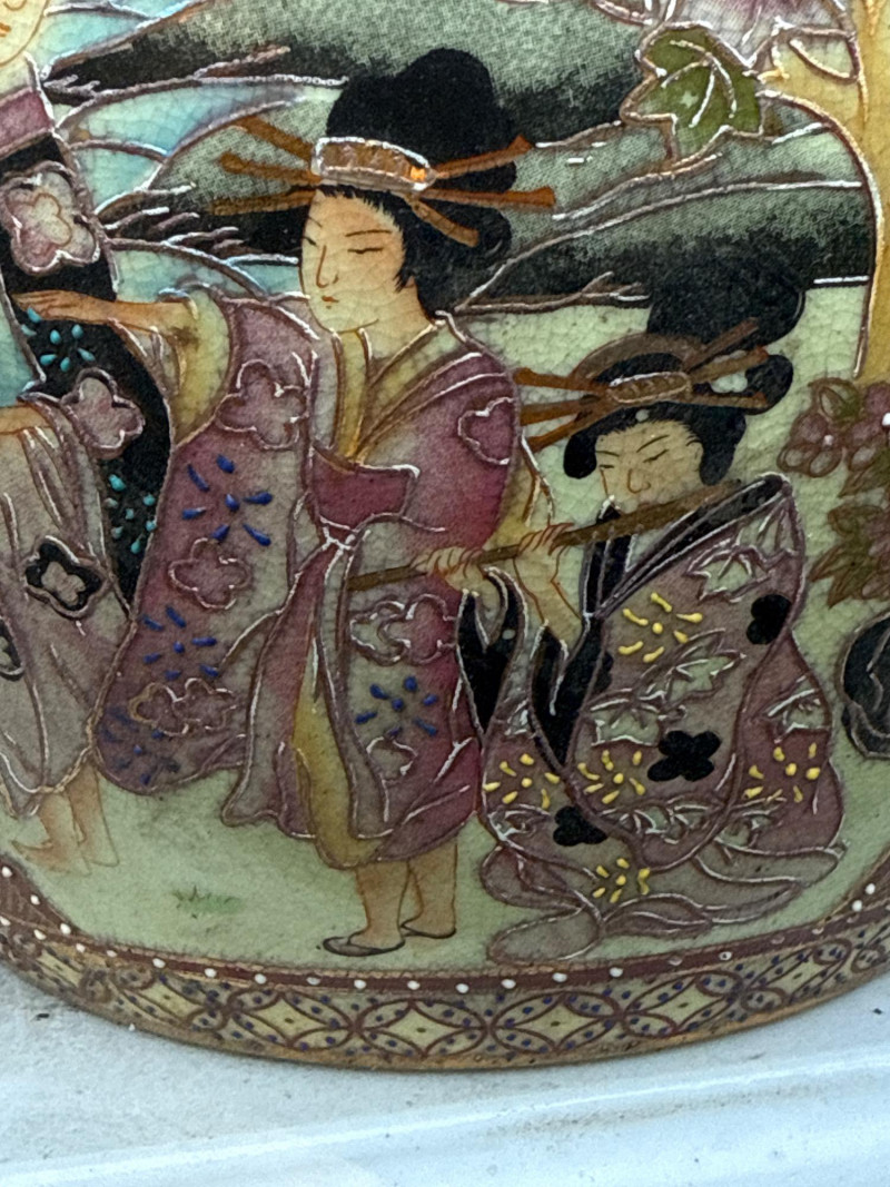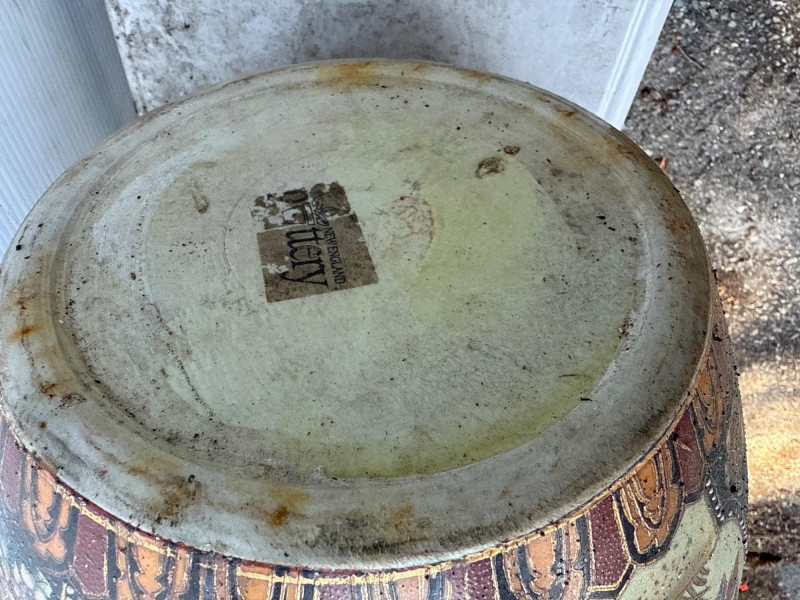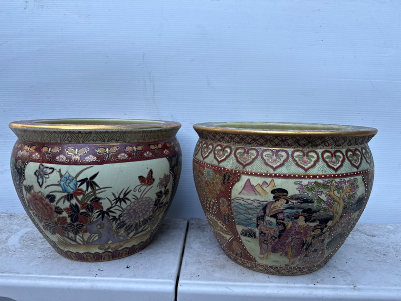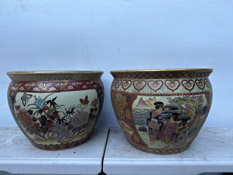 Two vintage, highly detailed egg pots. Glazed pot with painted detail and makers mark on one. Needs cleaned but in good condition. Exterior has raised detail, adding texture and dimension