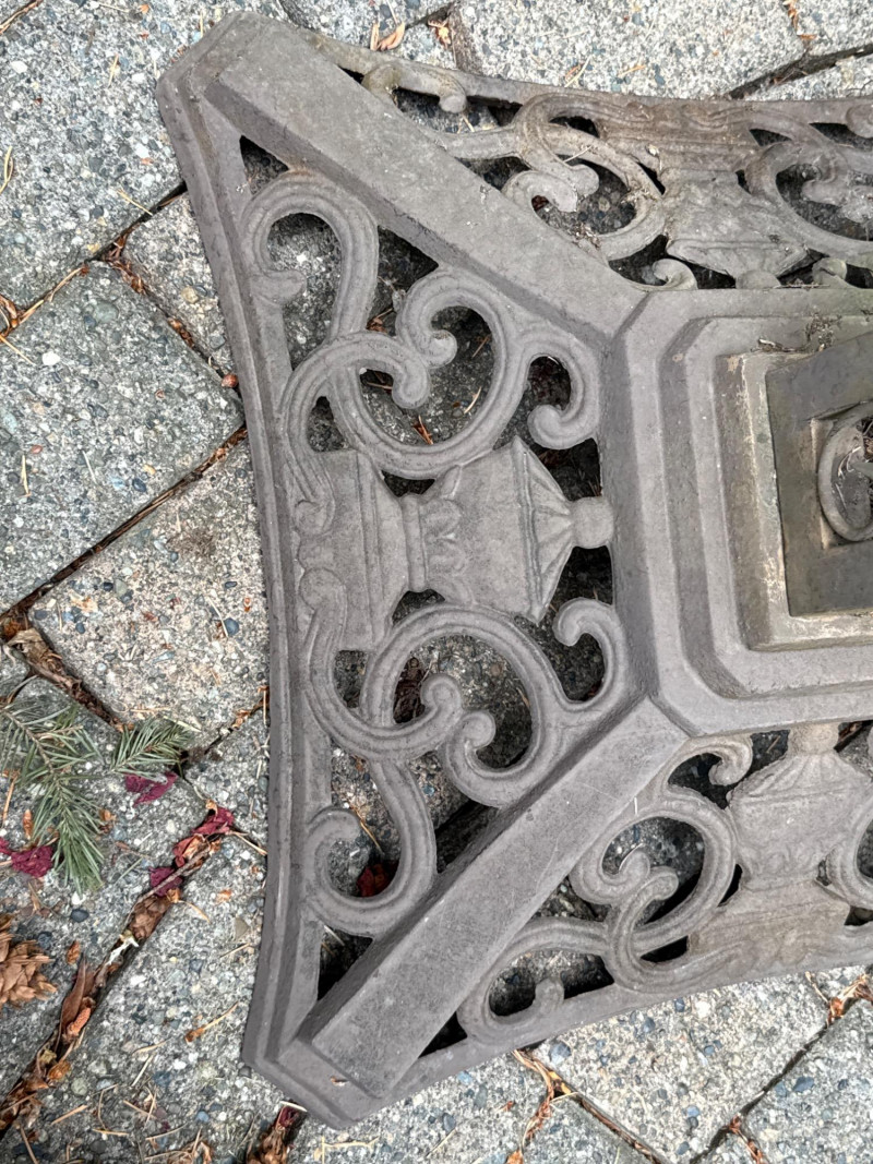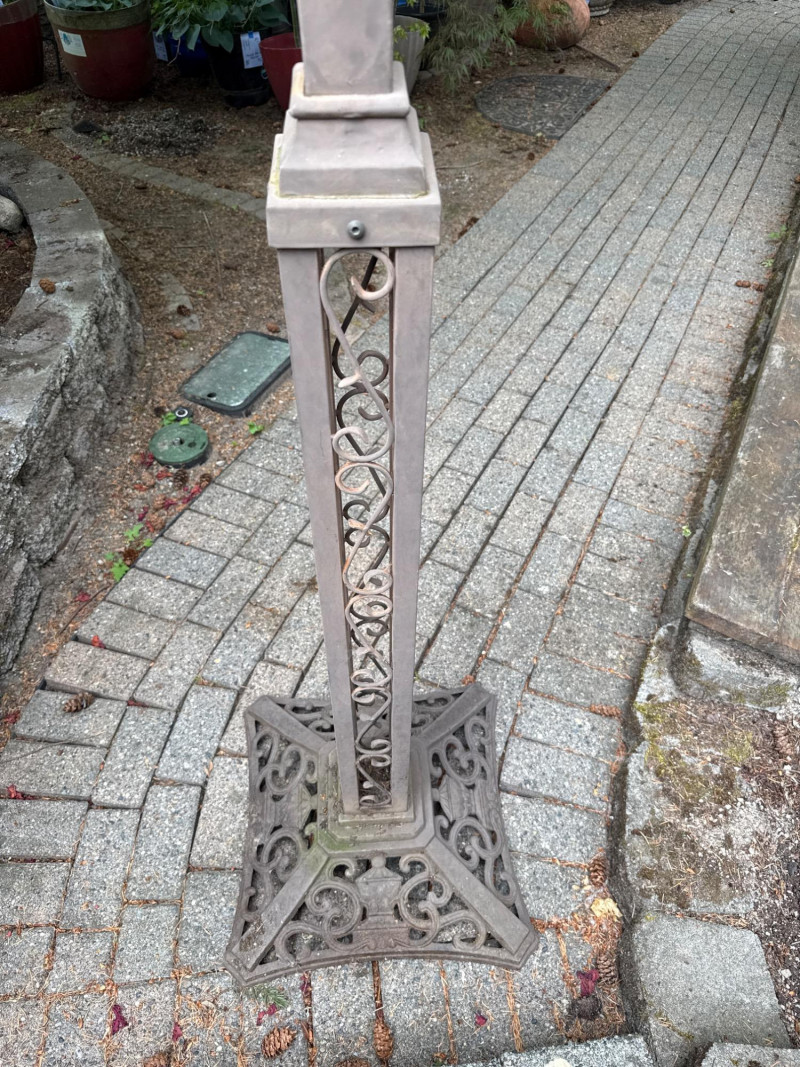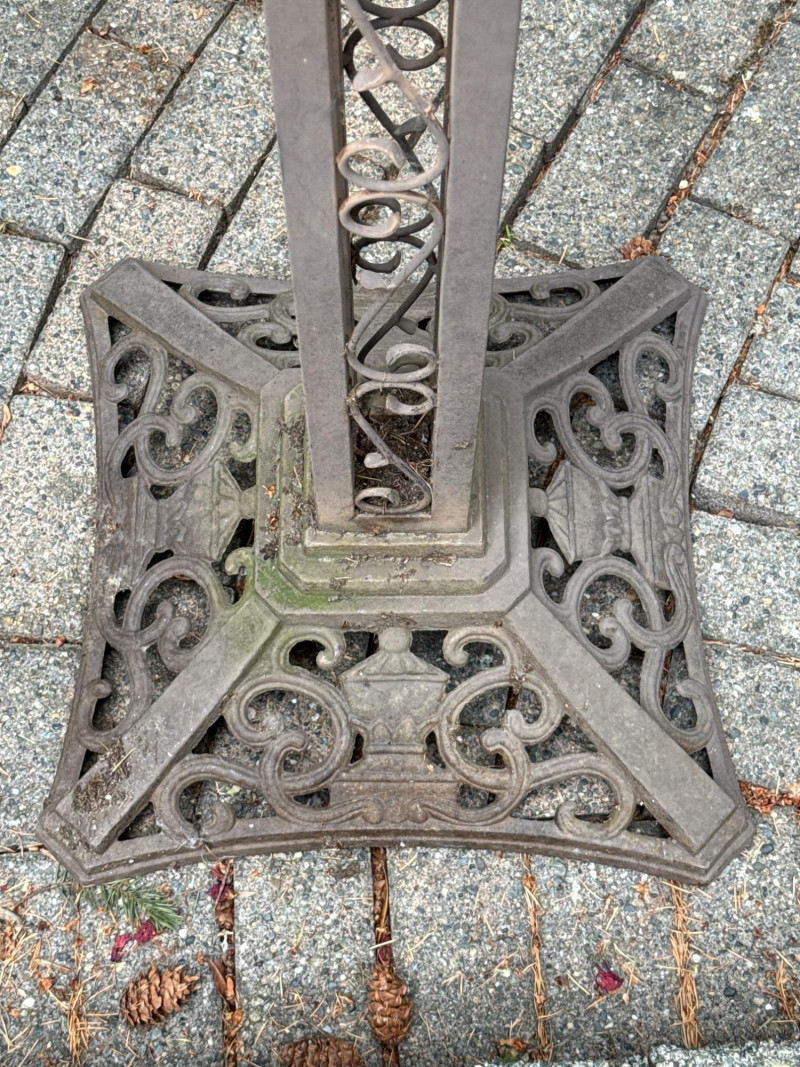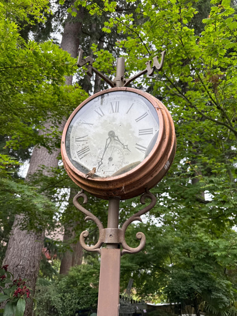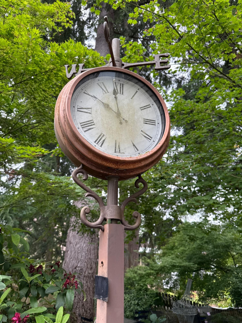 Heavy metal vintage clock and weathervane. Some rust and age shown Cast iron base, metal and copper components. Needs cleaned and serviced.