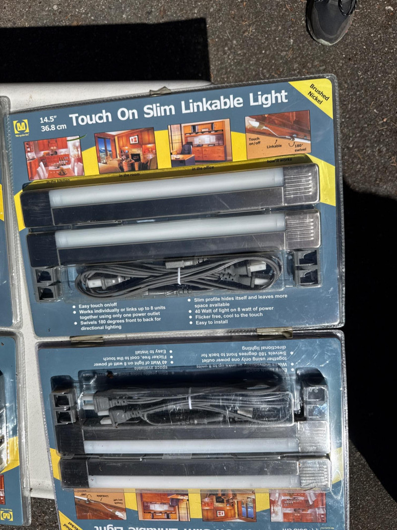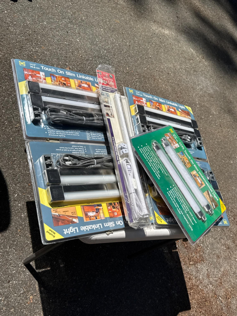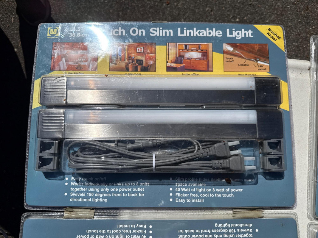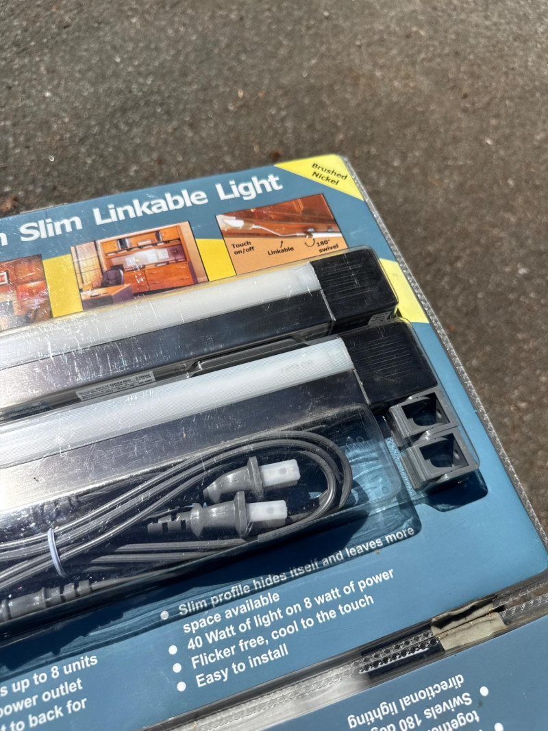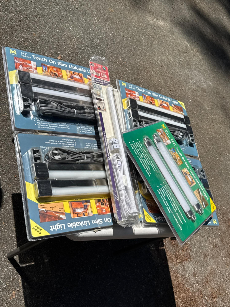 NIB cabinet lights. 4 sets of 14.5in long lights 1 set of 13.5in long lights 2 sets of Mega Life 16in Long lights.