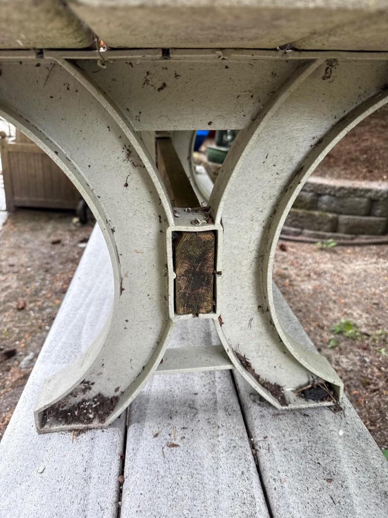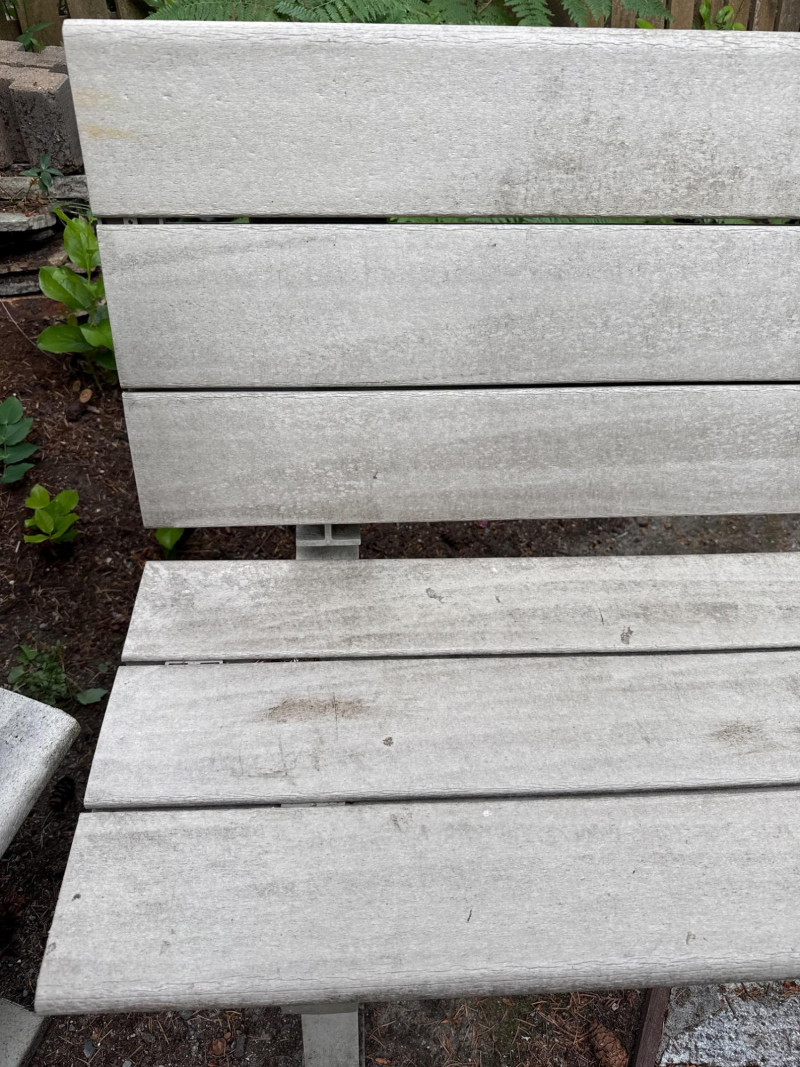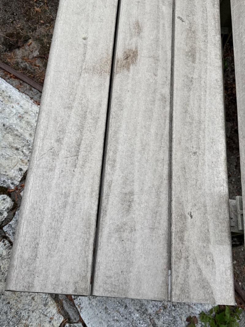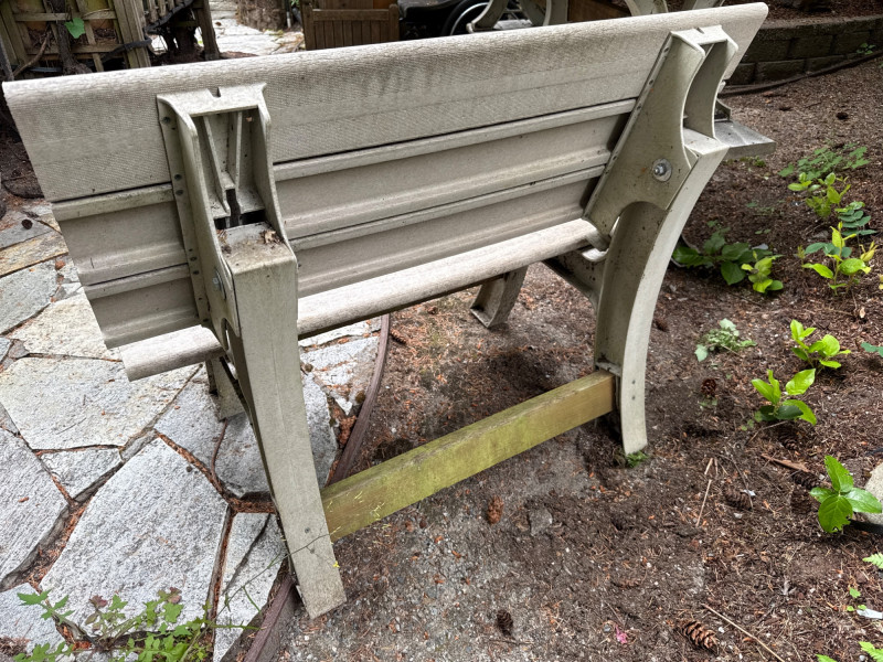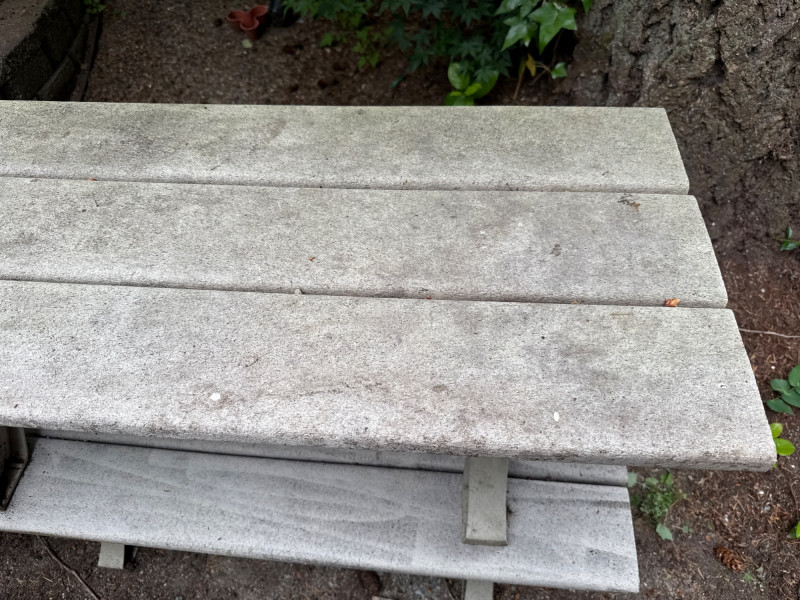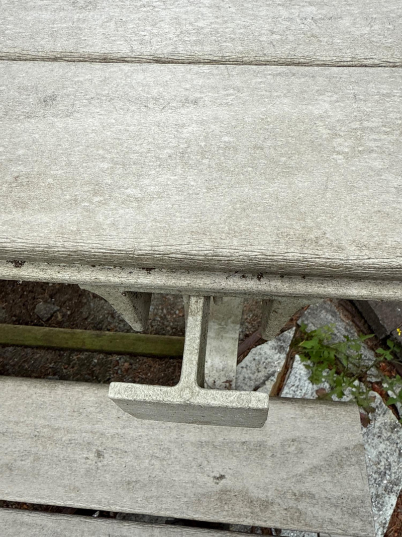 2x4 Basics poly resin bench and table set. Bench is 43in long, 30in wide, 35in tall. Table conversion is 29in wide extended Bench dimensions are 72in long, 17in wide, 16.5in tall Needs a good cleaning. Heavy and bring help to load.