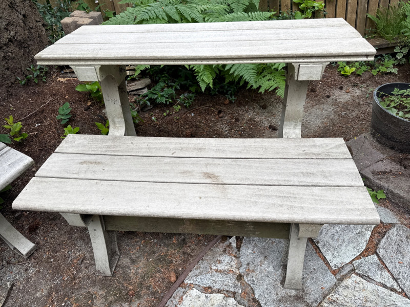 Lot # 79 - 2x4 Basics Poly Resin Bench Table and Two Bench Seats