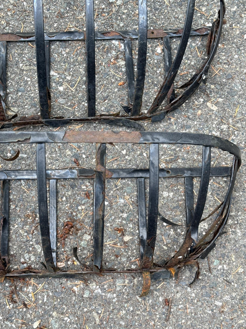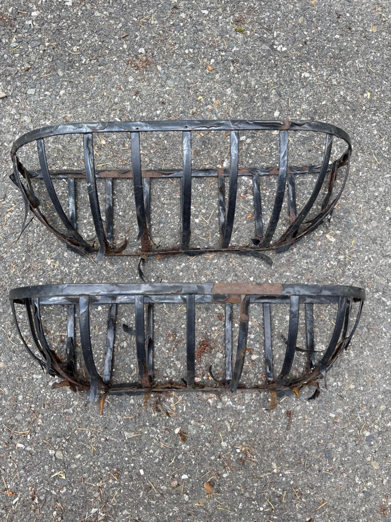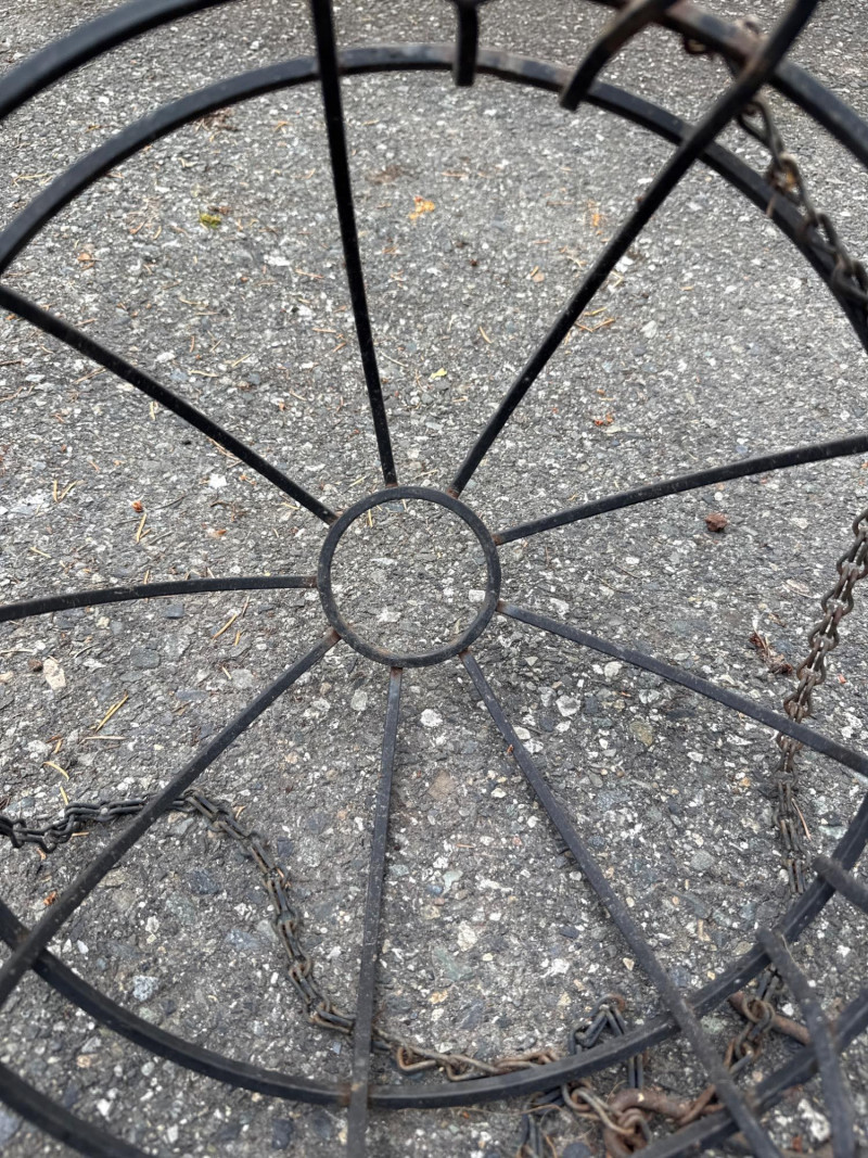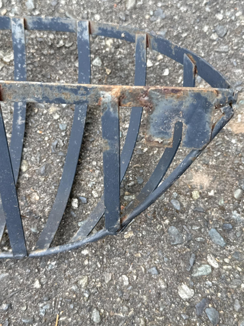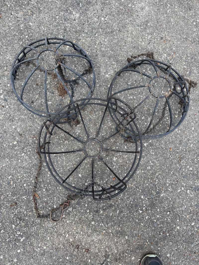 Large collection of metal baskets in various sizes and shapes. More may be added if found Some are heavier metal with some weight. Two window baskets have peeled paint and some rust. Dimensions are 22in long, 7in tall Corner backet is 10.5in tall, 25in wide. Largest round is 15in wide, 8in tall.