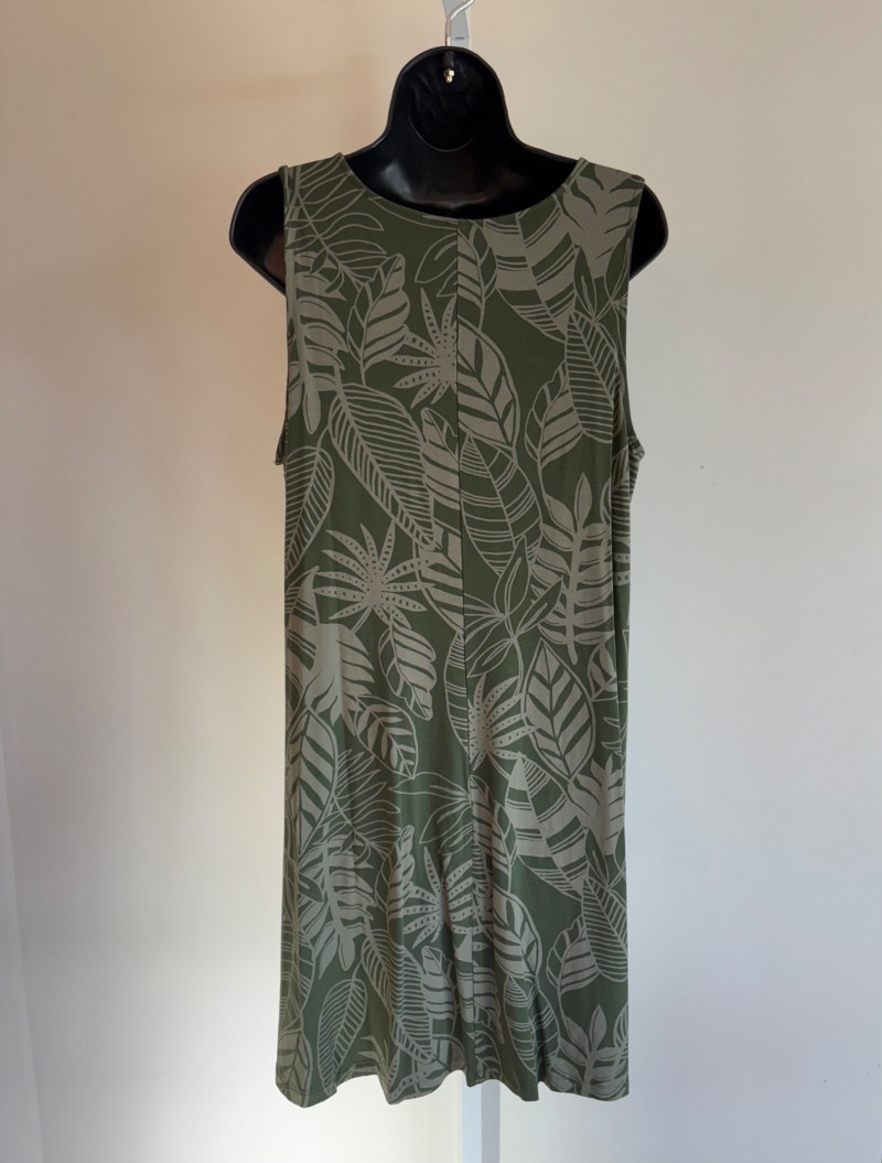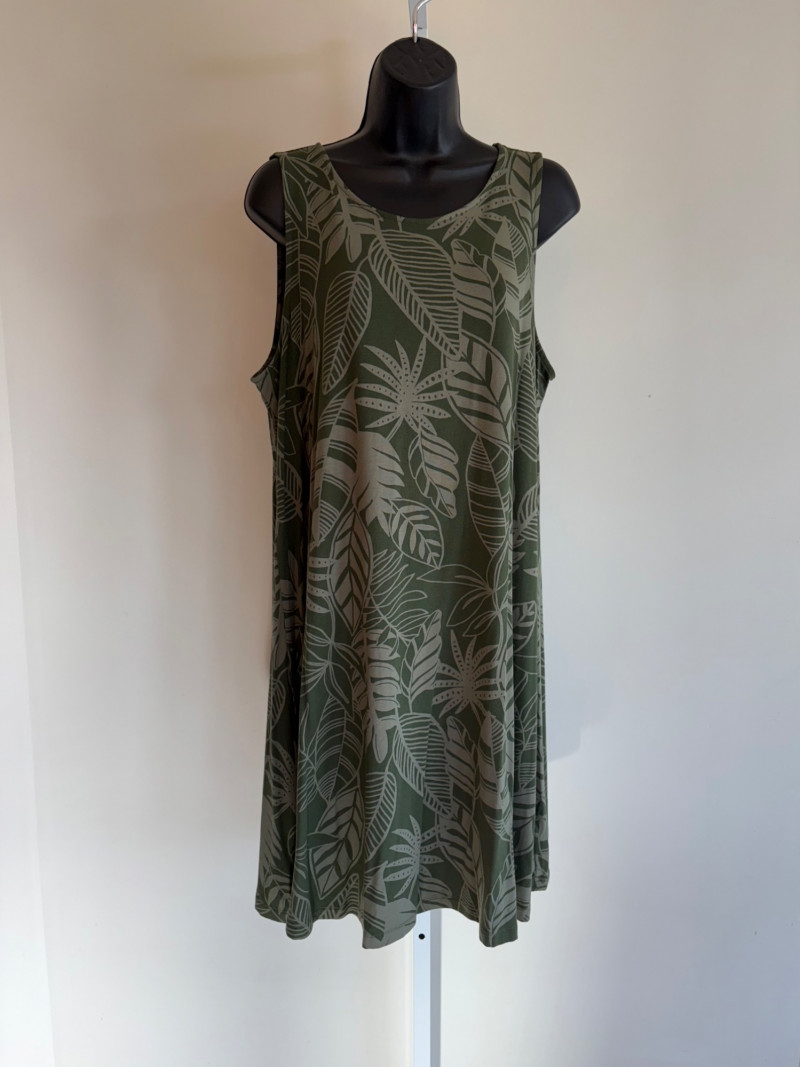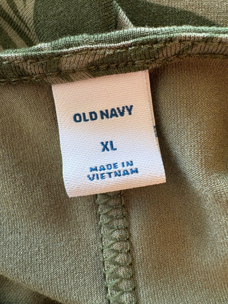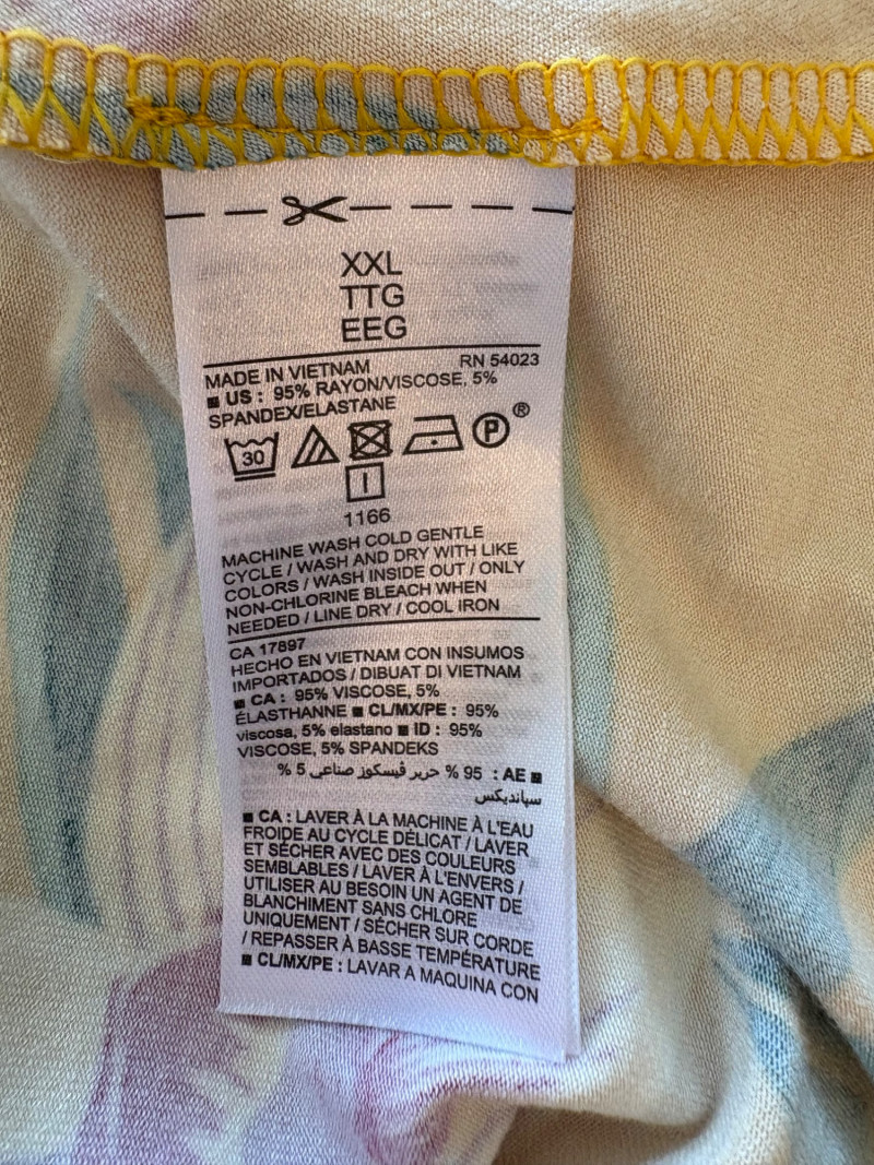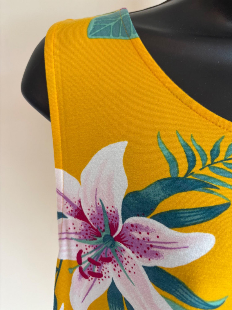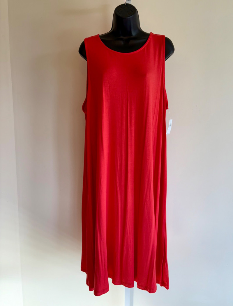 Trio of brightly colored dresses from Old Navy (vintage Old Navy before the construction quality declined). All are in excellent condition (orange is new) and all are sleeveless with a curved neckline. 95% rayon viscose with 5% spandex so they stretch quite a bit and fall beautifully. Orange solid measures 23" pit to pit and 41.5" from shoulder strap to bottom hem. New with tag. Size tag says XXL Tall. Yellow with tropical flowers measures 23" pit to pit and 39" from shoulder strap to bottom hem. Size tag says XXL. Green with foliage print measures 22.5" pit to pit and 36" from shoulder strap to bottom hem. Size tag says XL.