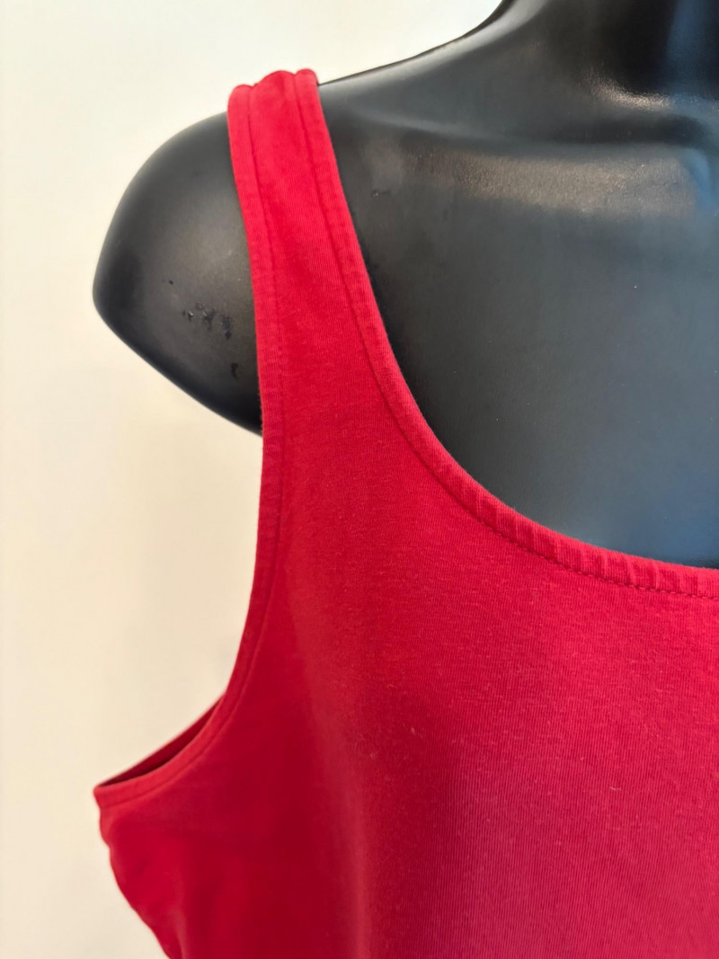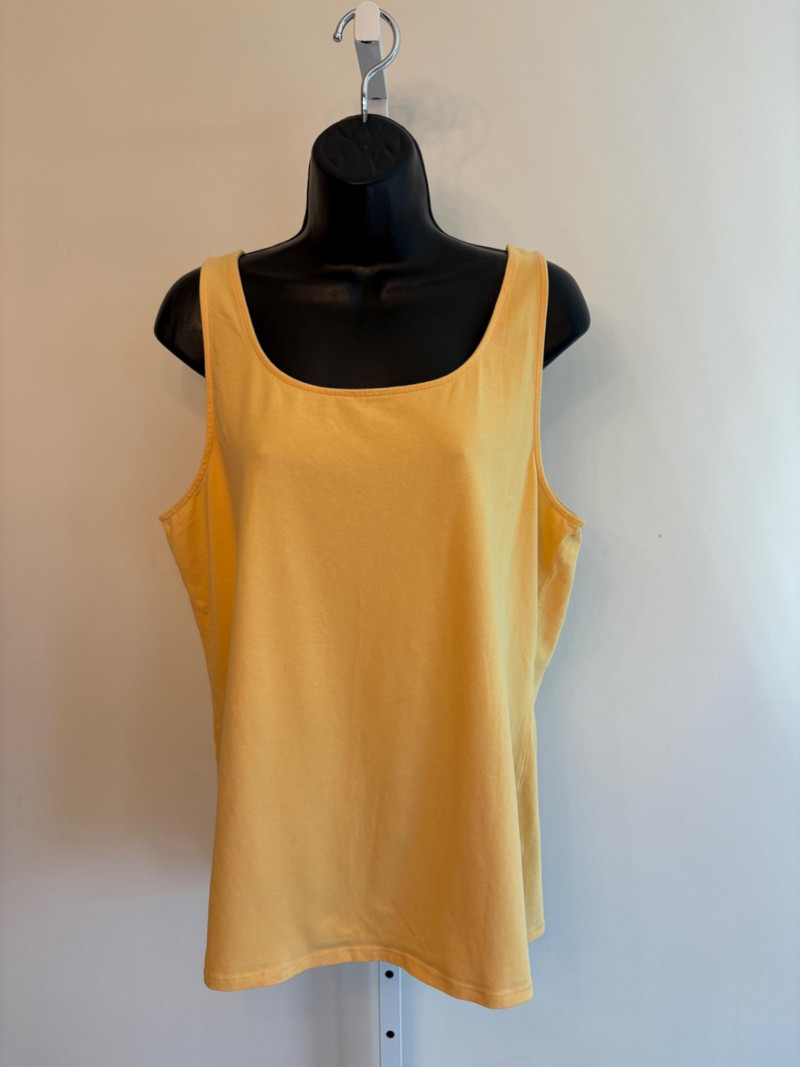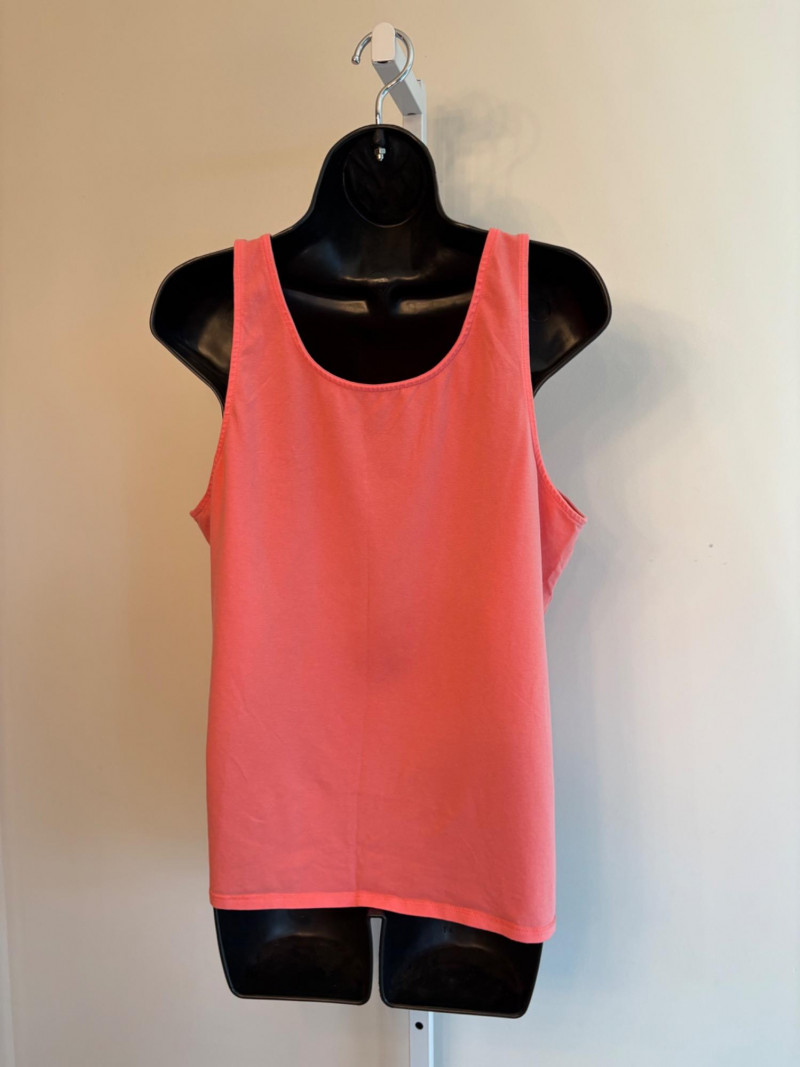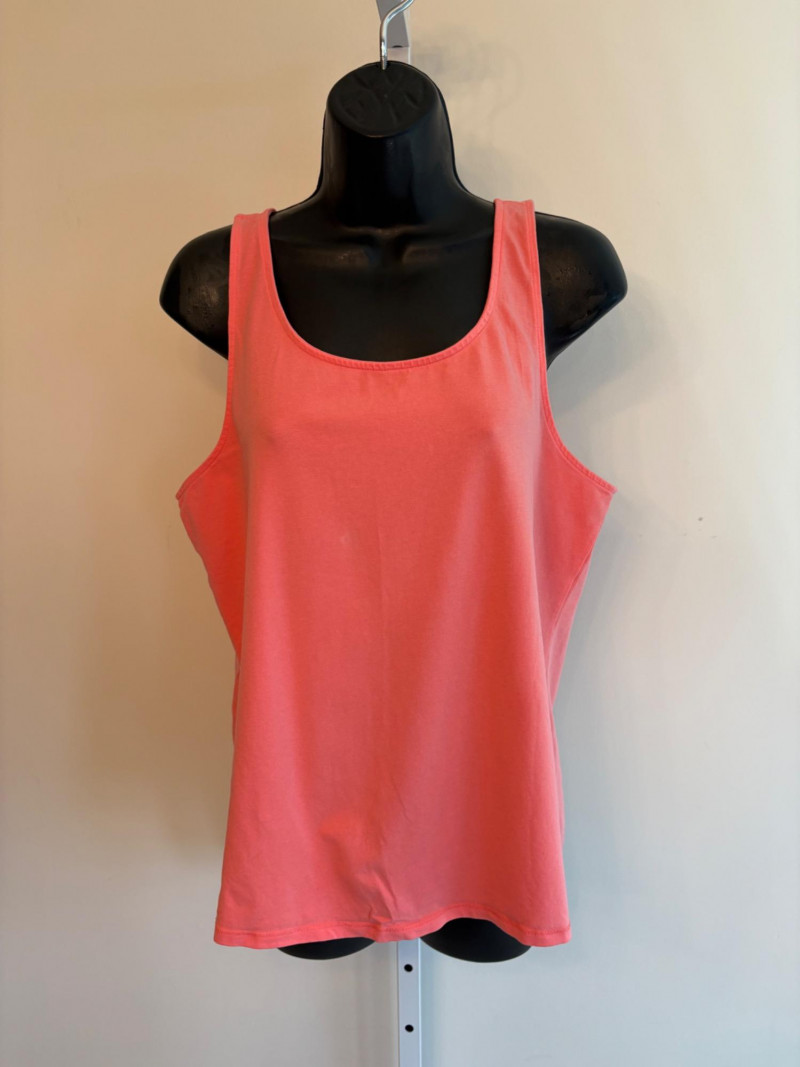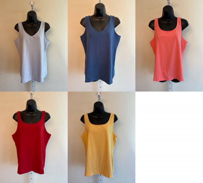 5 brightly colored good quality cotton tanks from J. Jill: All measure 16.5" pit to pit and between 23"-26" from top of shoulder strap to hem. All are in good used condition* and made of 95% cotton with 5% lycra. All are quite stretchy. The red, pink, and yellow ones have a curved neckline while the 2 blues have V-necks. Despite all measuring the same, the size tags vary: red (XL), pink (XL petite - this is the one that is 23" in length), yellow (XL), light blue (1X) and dark blue (1X). * Except the pink petite tank - it has a very slight stain on the front and a portion of the hem that needs to be whipstitched back in place - see last 2 photos.