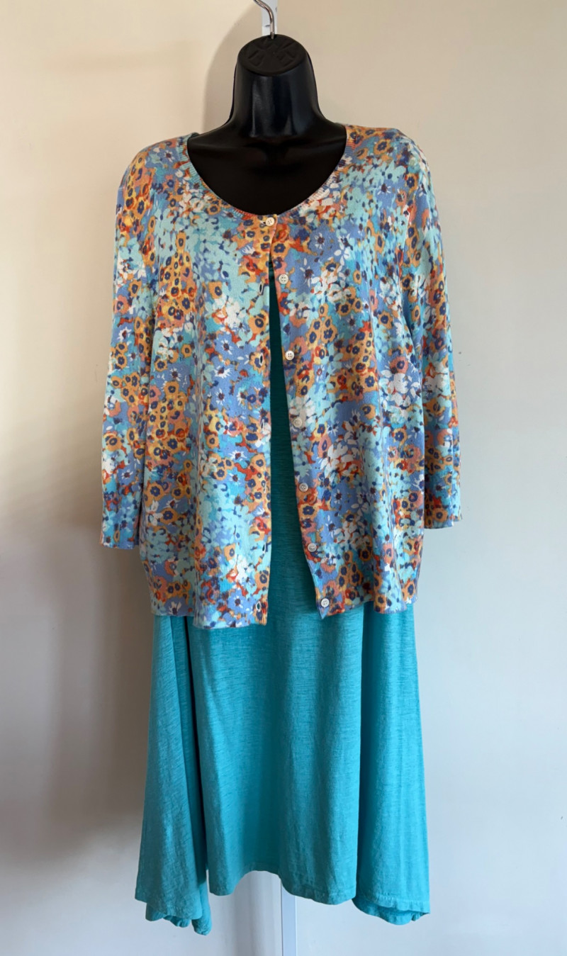 Lot # 23 - Colorful Linen Knit Dress & Floral Cardigan - Eileen Fisher/J. Jill