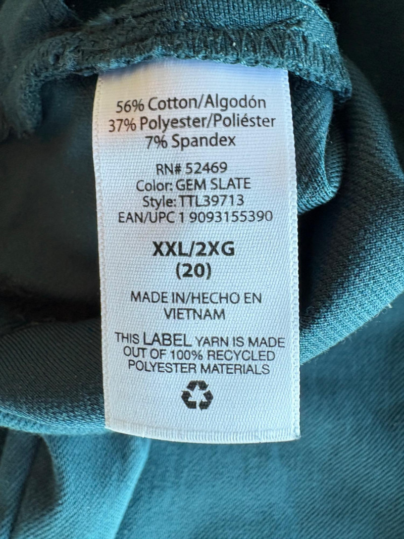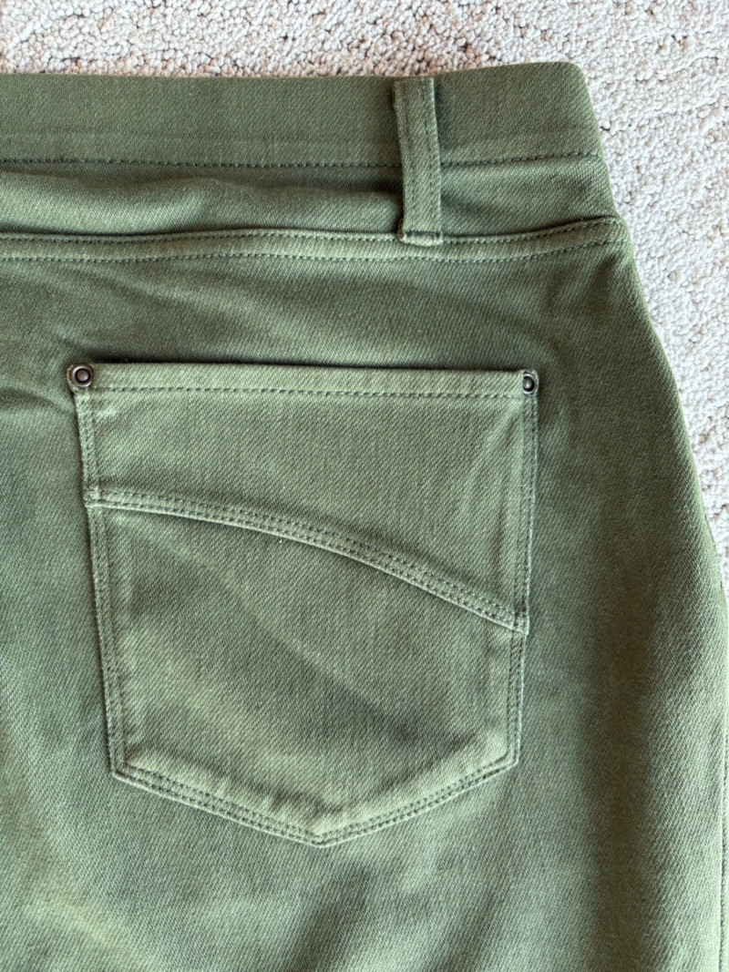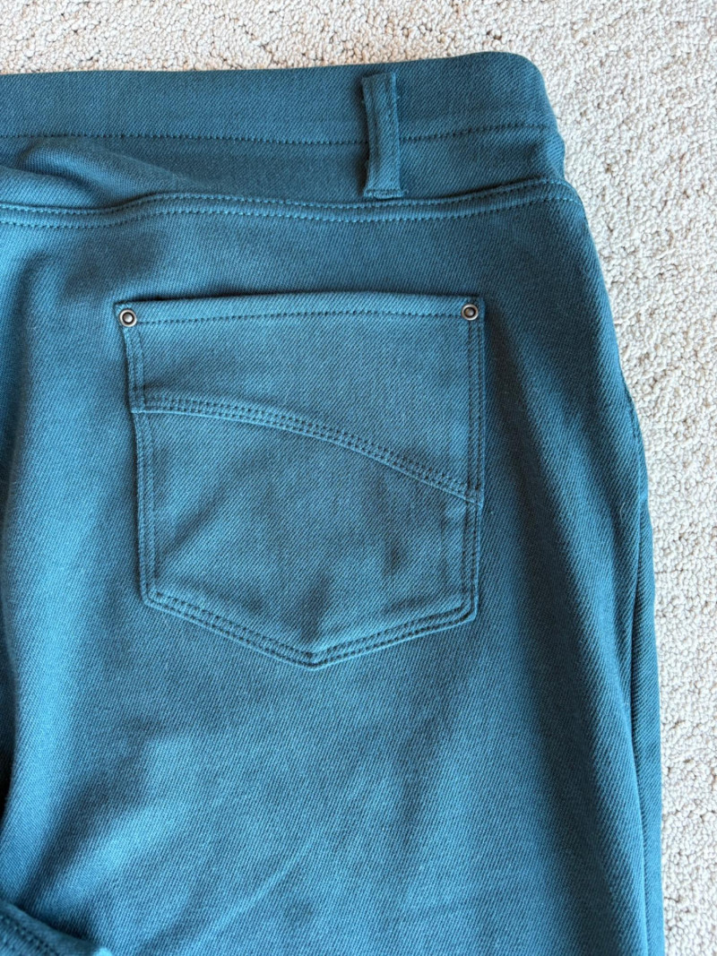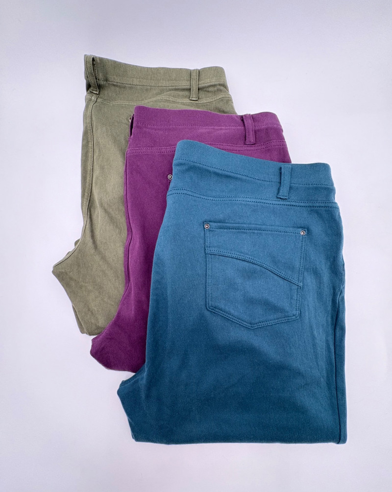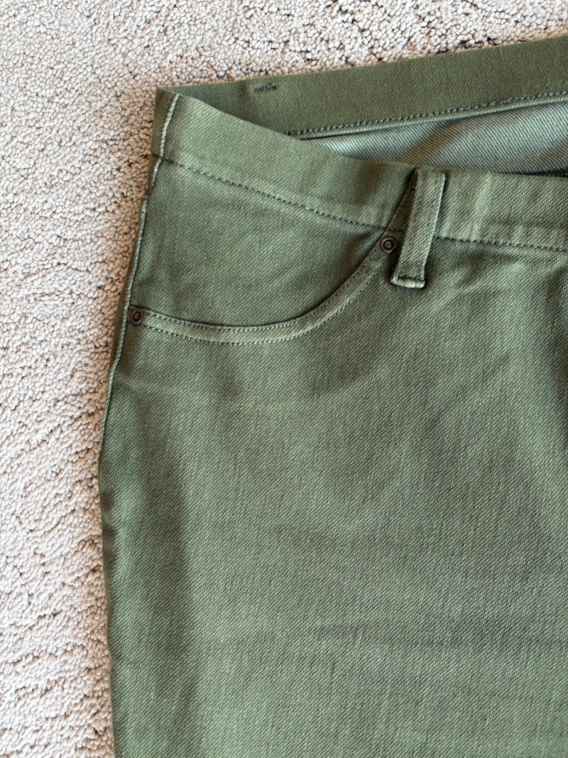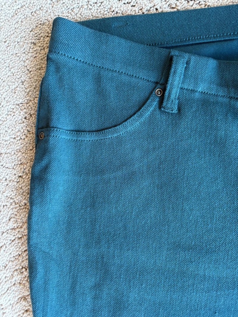 Three pairs of “jeggings” that truly resemble jeans in style, but are super comfortable and stretchy like leggings. All are from Time and True in shades of eggplant, olive green, and teal/blue and in excellent condition. All measure 18.5" side to side at the waist and have a 28" or 28.5" inseam. 56% cotton with 37% polyester and 7% spandex. Size tags all say XXL (20).
