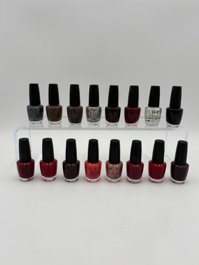 16 bottles of OPI nail polish. Some have been used a bit, but most are full/nearly full and colors still vivid. (While we normally don't sell open items, nail polish has enough chemicals in it that we aren't worried about any contamination transfer to the new owner.) Includes plastic clamshell storage case. See photos for details.