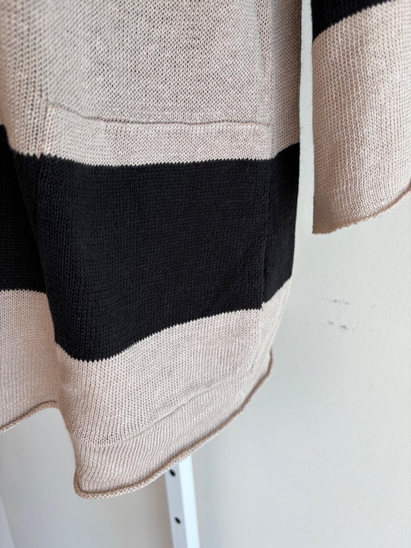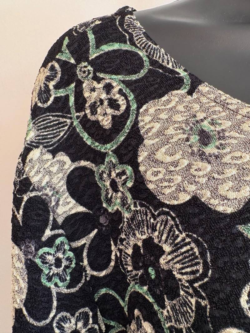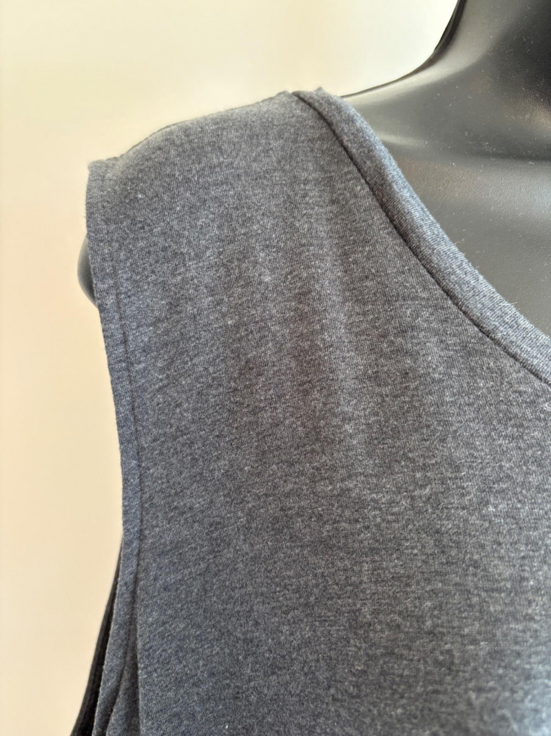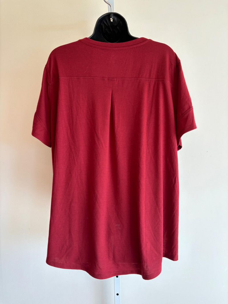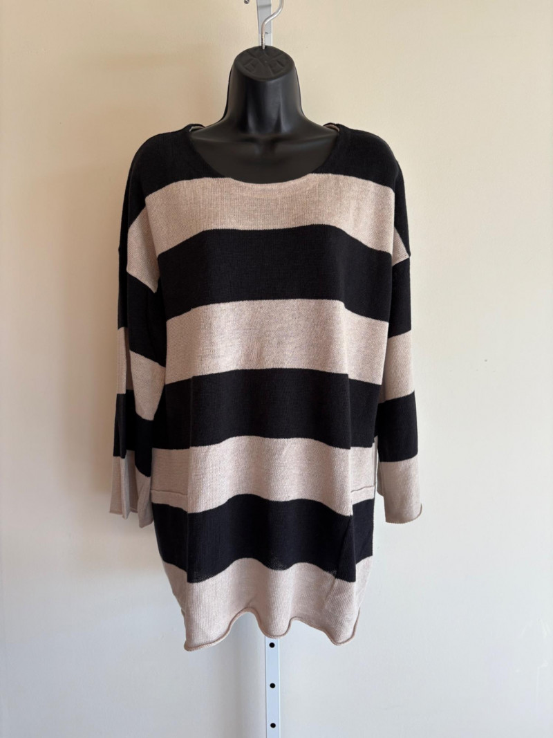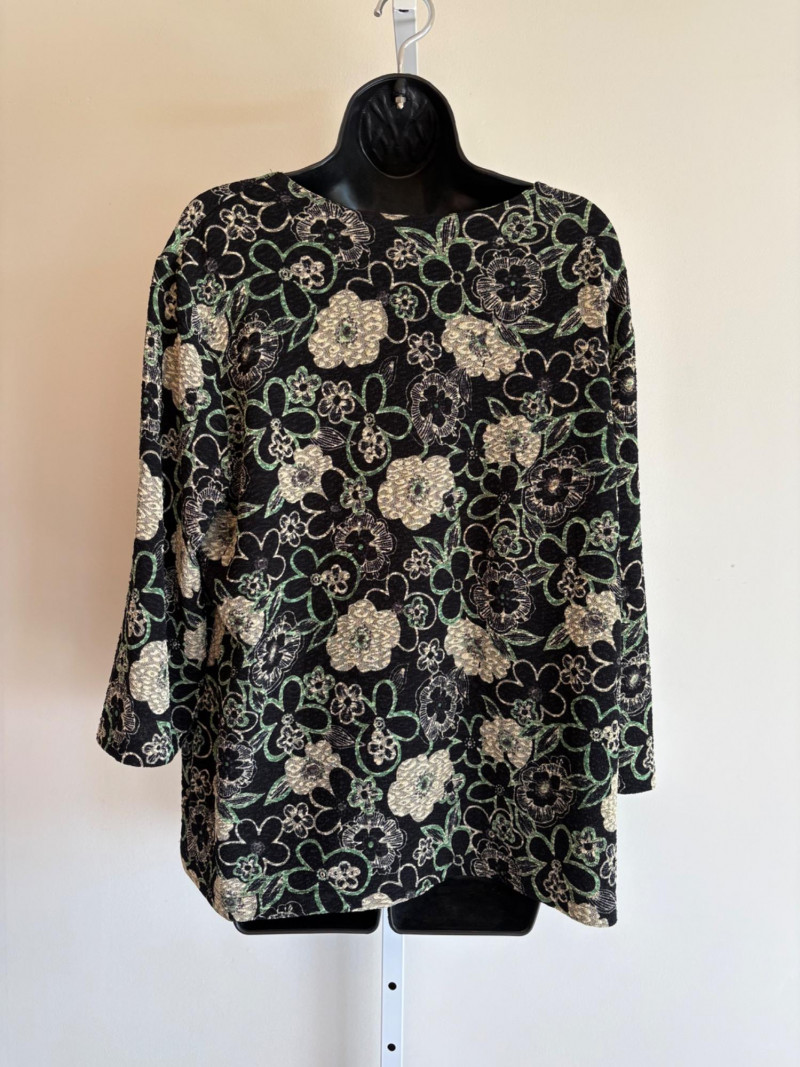 6 summer shirts/light sweaters from various makers. All measure 23.5" pit to pit and are in excellent condition. Yellow & white horizontal stripe shirt from Old Navy has 3.4 sleeves and split hem. 100% cotton. Measures 26" from back neckline to hem. Size tag says XXL. Maroon curved neck classic t-shirt from Athletic with split/lower back hem & back pleat. 62% polyester with 33% rayon and 5% spandex. Measures 28.5" from back neckline to hem. Size tag says XXL (20) Beige and black horizontal striped sweater from Eileen Fisher has curved neck, 3/4 sleeves, and 2 front patch pockets with side access. 100% organic linen. Measures 27" from back neckline to hem. Size tag says L/G. Blue fish print tank shirt from J. Jill has centered back pleat. 100% linen. Measures 26" from back neckline to hem. Size tag says XL. Black, green, and beige textured shirt from French Laundry has round neck and 3/4 sleeves. 83% polyester with 10% nylon and 7% spandex. Measures 24.5" from back neckline to hem. Size tag says XL. Super soft grey sleeveless t-shirt from Eileen Fisher has V-neck and slight flare. 95% Tencel Lyocell with 5% spandex. Measures 24" from back neckline to hem. Size tag says 1X.