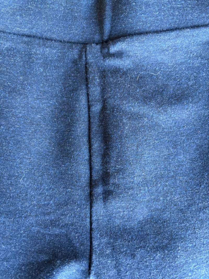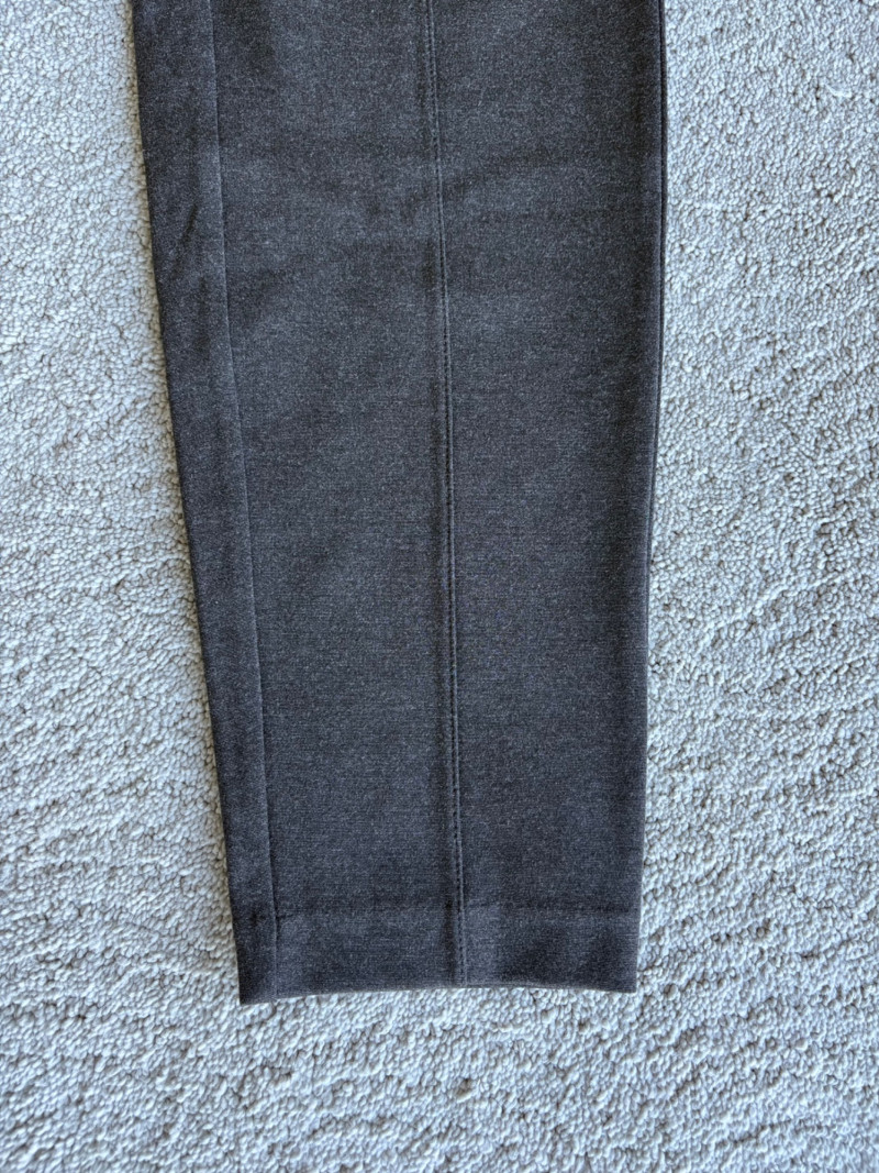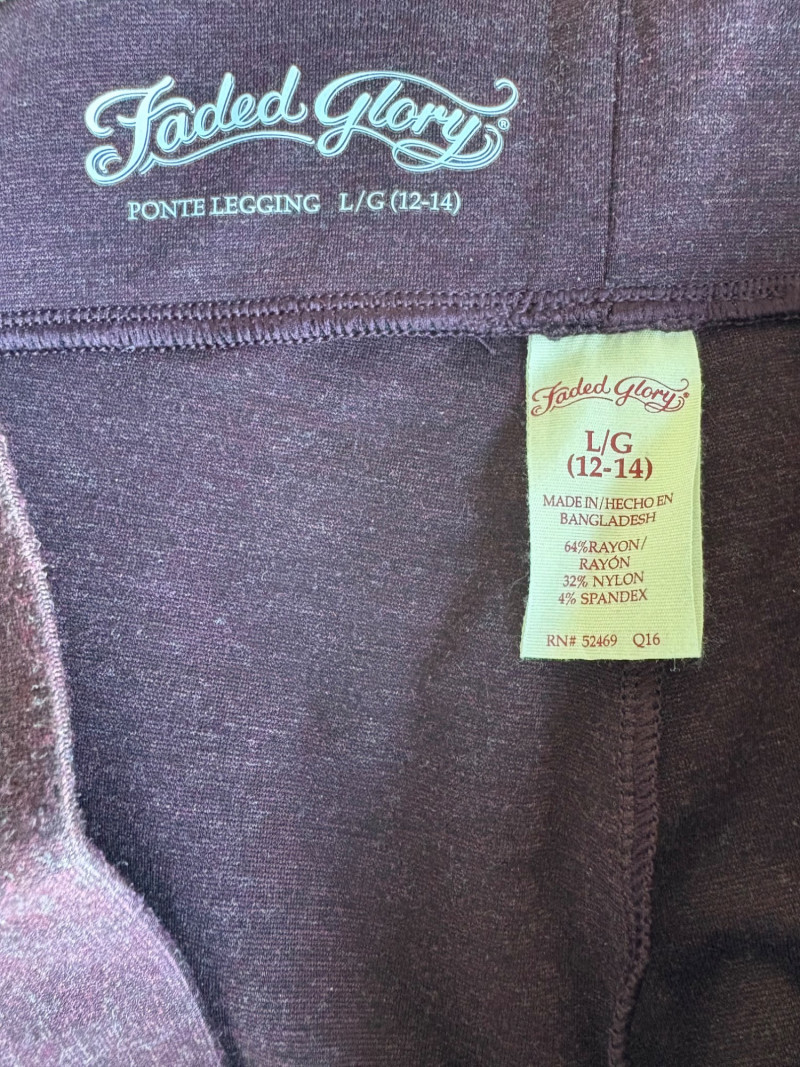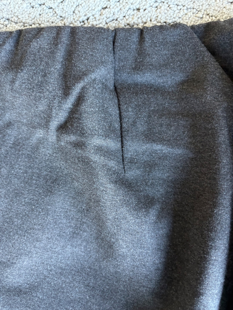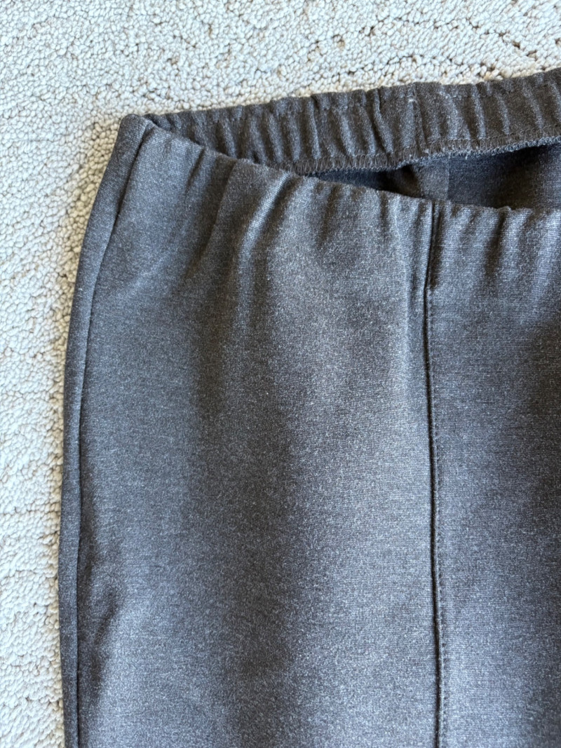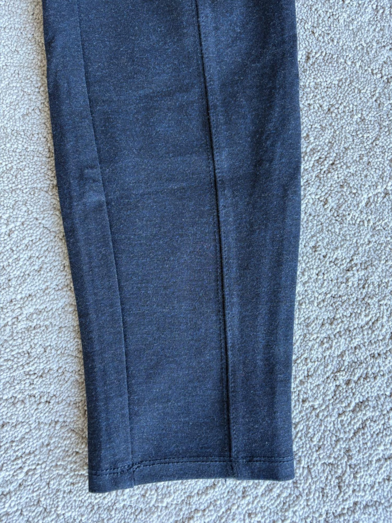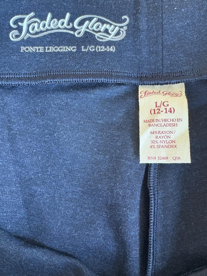 OK, we will admit stretch knits used to "yuck' us out, but they've really improved the feel and fit of ponte in particular over the past decade and now it's become a favorite of ours since it holds shape and hangs beautifully. These 3 pairs of ponte leggings/pants are a terrific layer under a light summer sweater or can transition to the fall under a top & jacket with their slim line. While they have different size tags, they all fit our client! Grey leggings from J. Jill have elasticated waist, front seaming, and back darts for better fit. Ponte is smooth, very stretchy, and very forgiving for all shapes. Excellent condition. Measures 16.5" side to side at waist with 22" inseam. 73% viscose and 23% nylon with 5% spandex, Size tag says XL. Burgundy & navy blue leggings from Faded Glory have wide elasticated waistband and front seaming. In excellent condition. 64% rayon with 43% nylon and 4% spandex. Both measure 17.5" side to side at waist. Burgundy pair has 26" inseam while blue pair has 27" Inseam. Size tags on both say L (12-14).