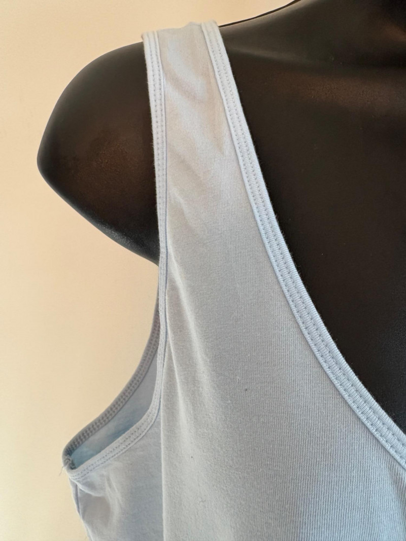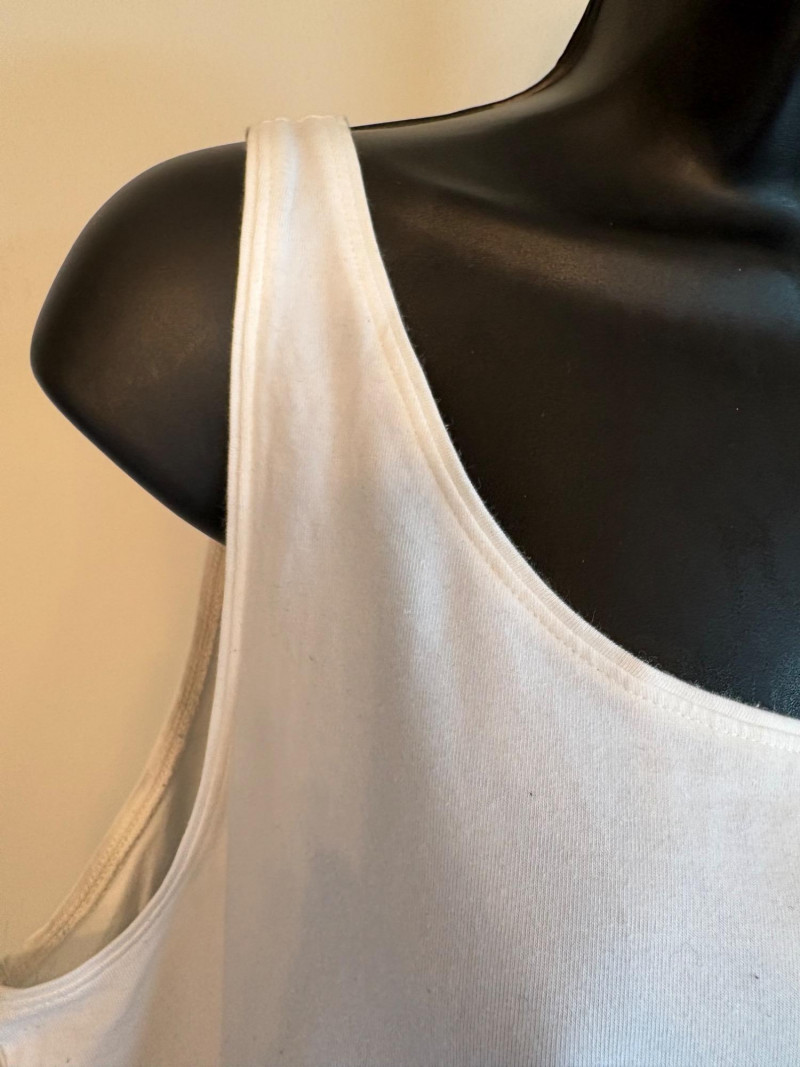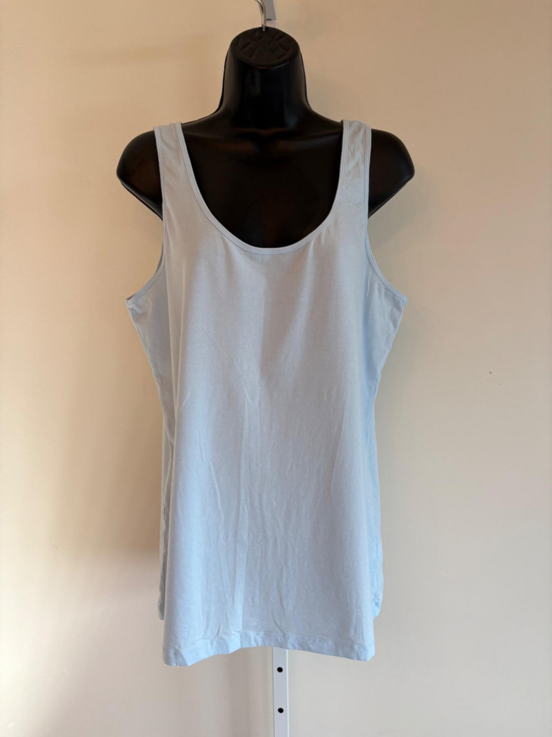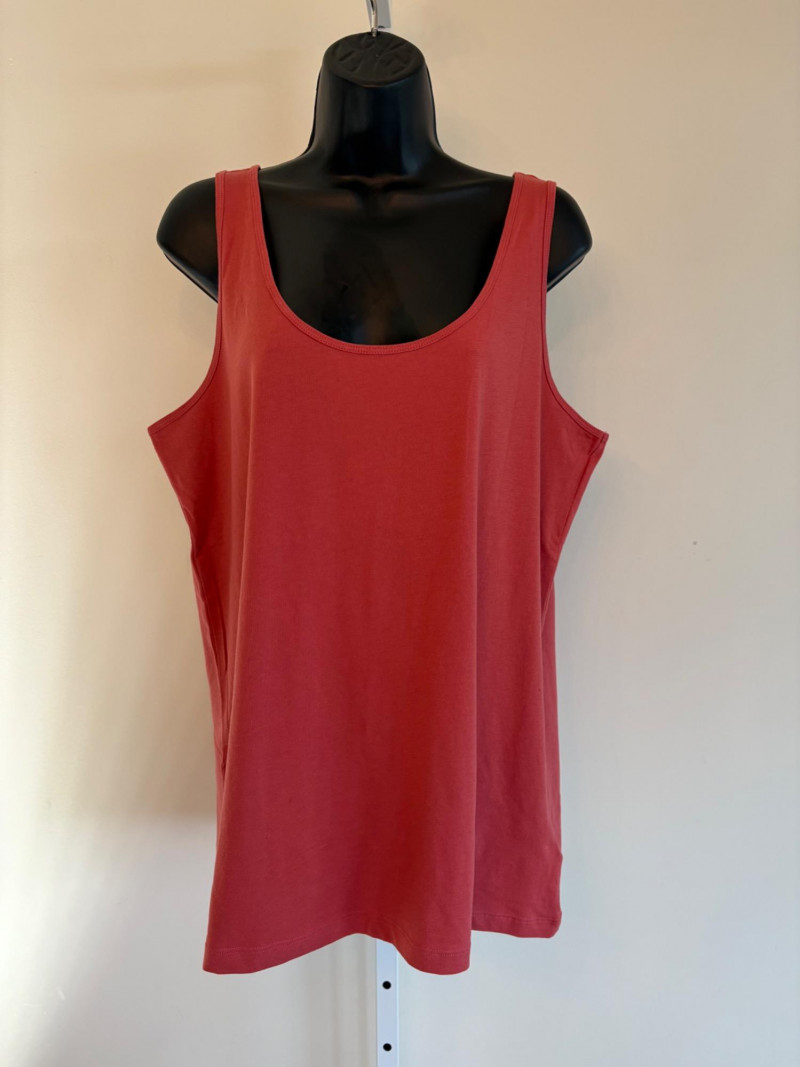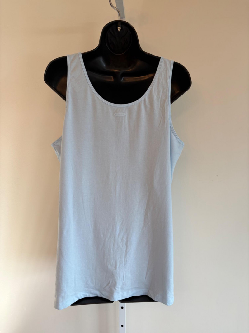 6 great tanks from Eileen Fisher and Old Navy (vintage Old Navy when the quality was still good!). All tanks measure 20" pit to pit with length that varies from 22.5" to 27" from the shoulder to the hem. All are in very good to excellent condition. White tank from Eileen Fisher is 90% organic cotton and 10% spandex. 22.5" L. Size tag says L. Grey tank from Eileen Fisher is 70% silk with 30% cotton. 23" L. Size tag says XL. Pinkish-beige, pale blue, pink-puce, and blue tanks from Old Navy are 95% cotton with 5% spandex. All measure 27" L. Sze tags say XL.