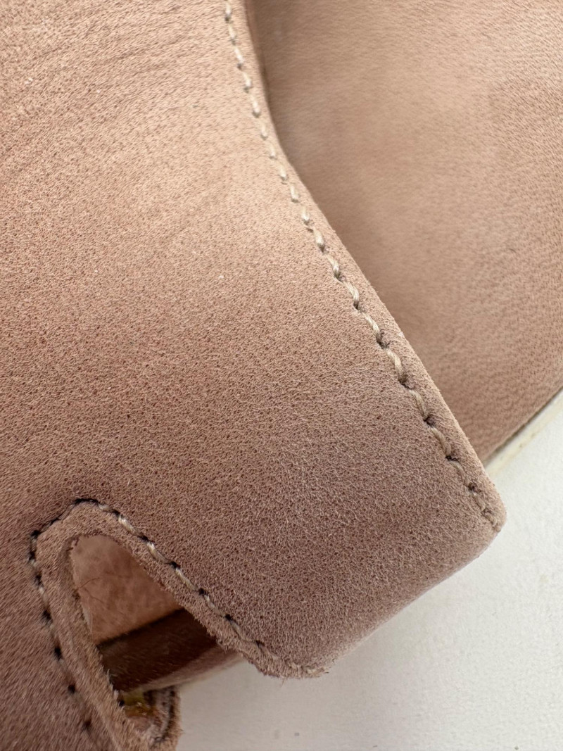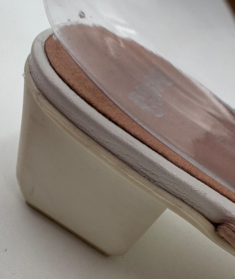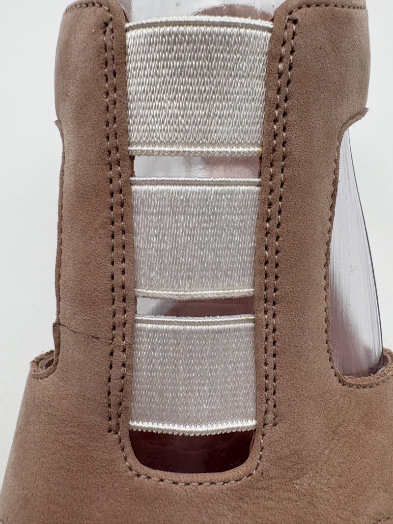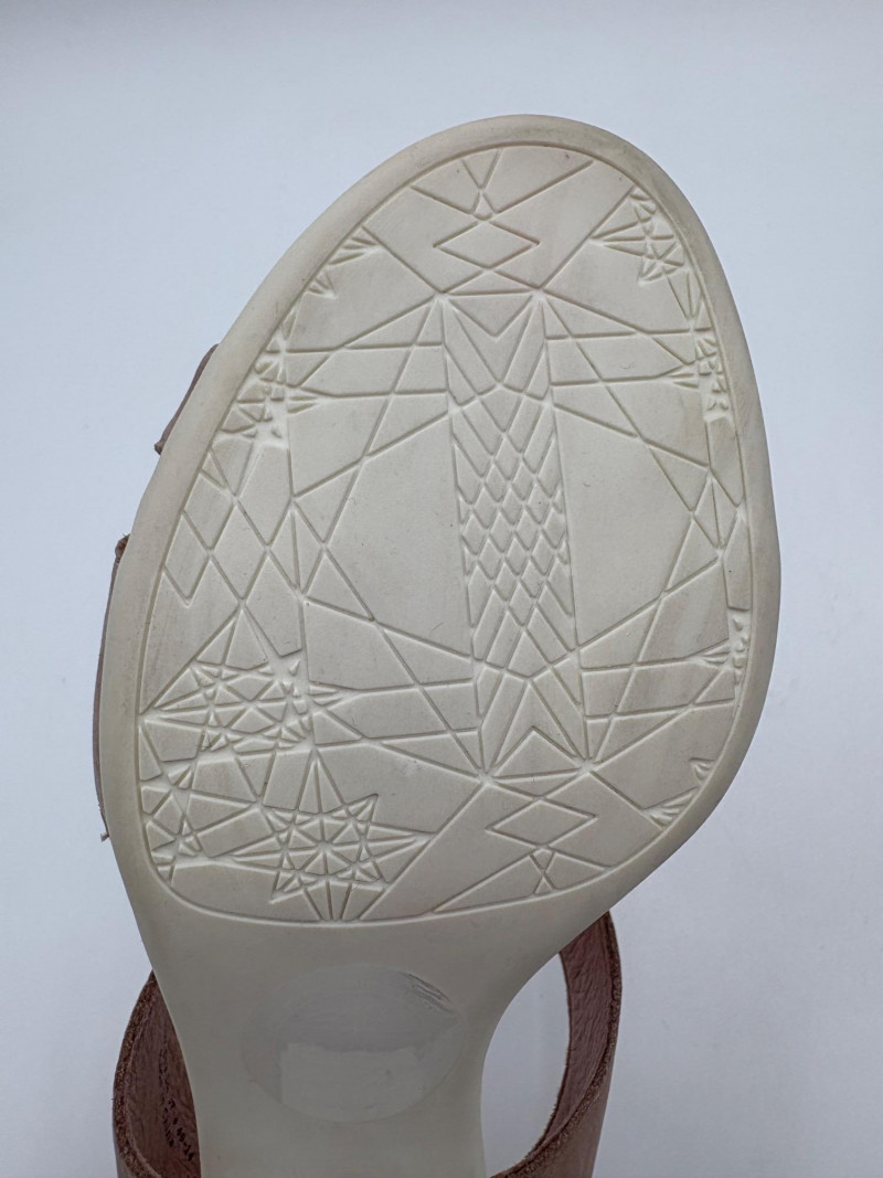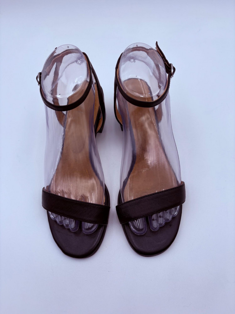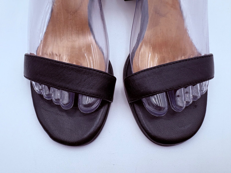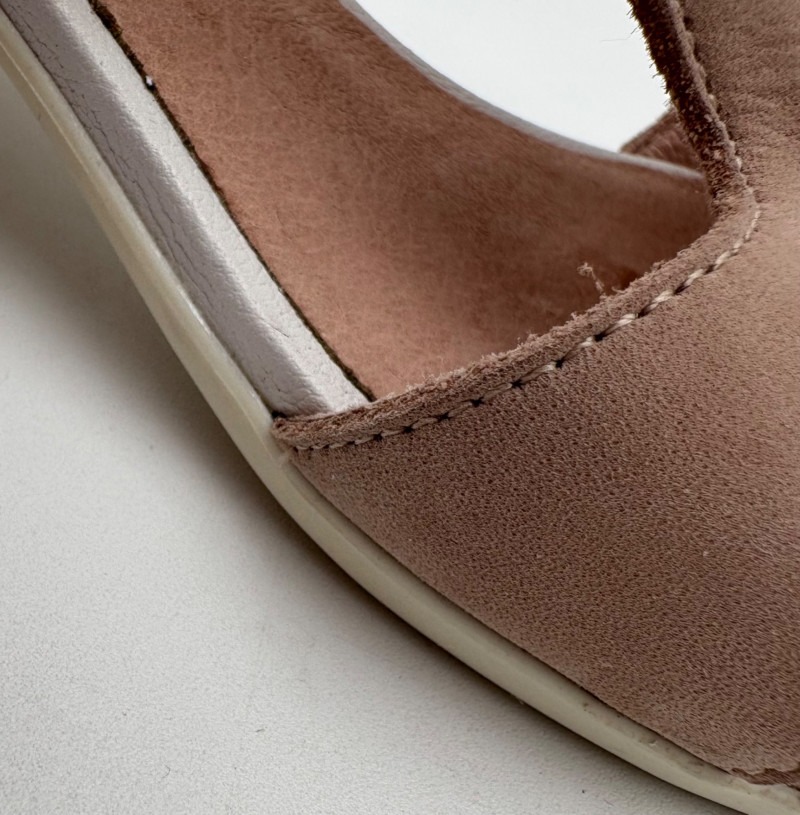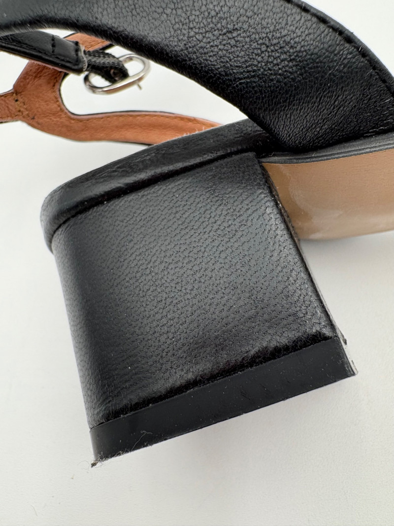 Two pairs of comfortable low heel sandals for casual summer dresses or skirts. Beige & white sandals from French maker Camper have white sole, white elasticated strips over the top of the foot & back of heel, and a white 1.75" heel on a rubber sole. Uppers are beige nubuck leather. In excellent condition, although there is slight residue on ball of foot from client's cushion inserts. Should come off with rubbing alcohol or Goop Off. Size 37 Black J. Jill sandals have a strap across the ball of the foot and delicate slender angled straps that wrap around the heel with buckle above the ankle. 2" heel and soft self-covered leather heel. In excellent condition. Size 7.