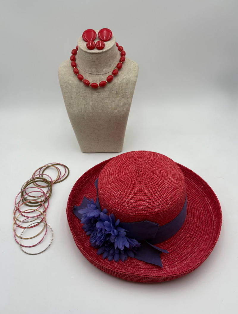 Lot # 75 - Red, Red, Red - Hat, Necklace, Earrings & Bangles - Betmar