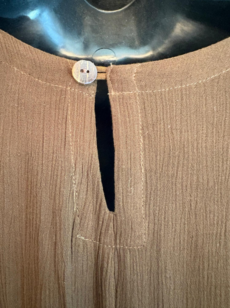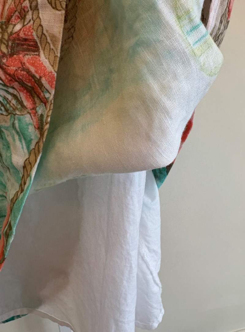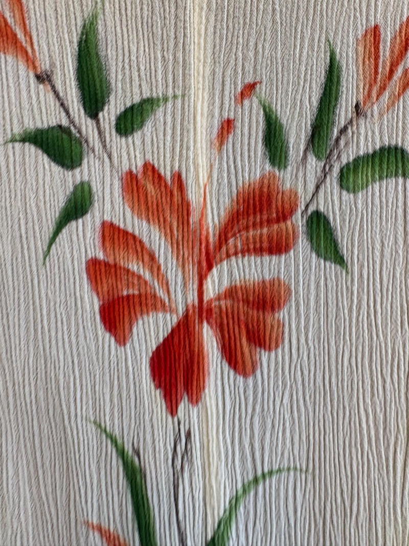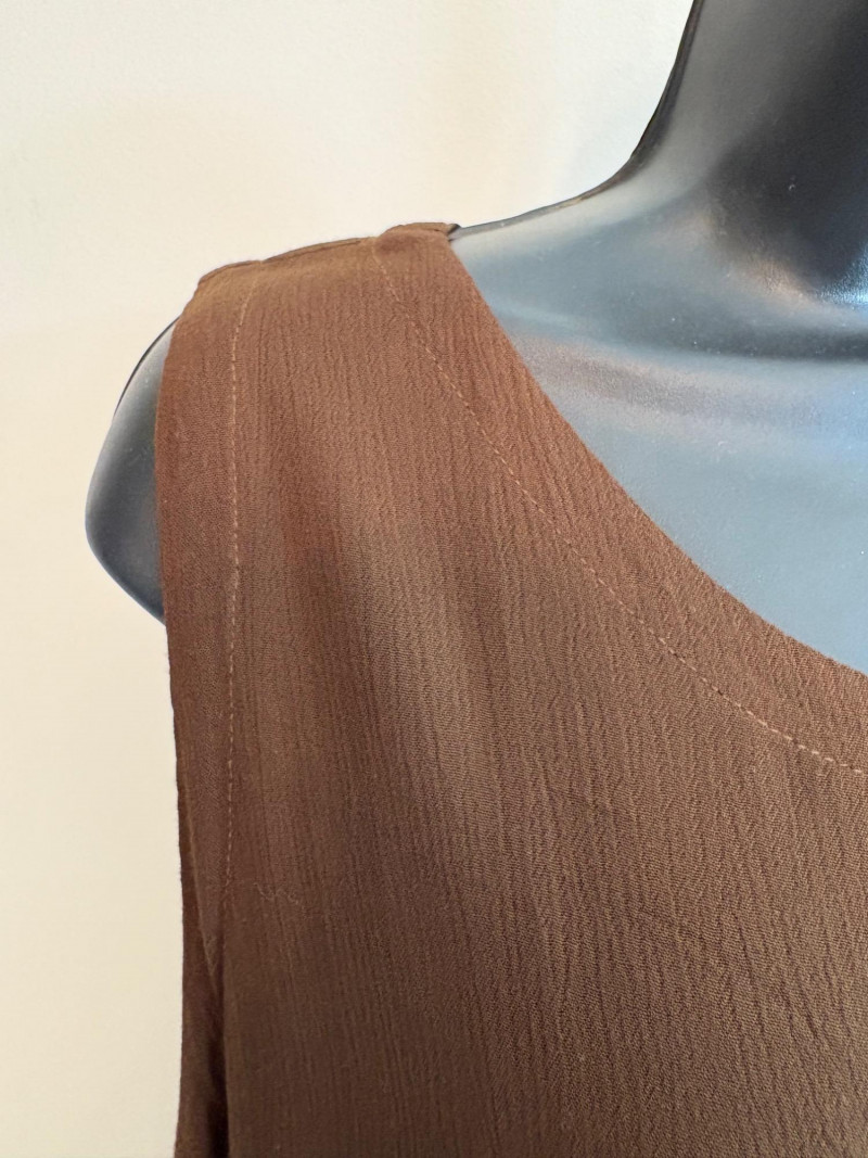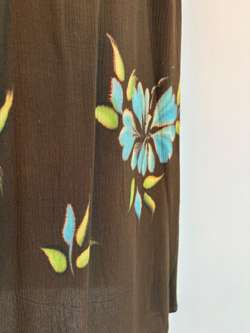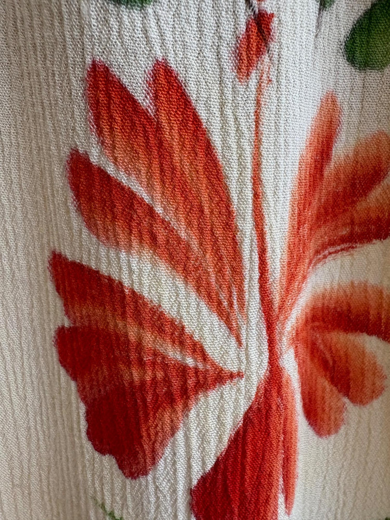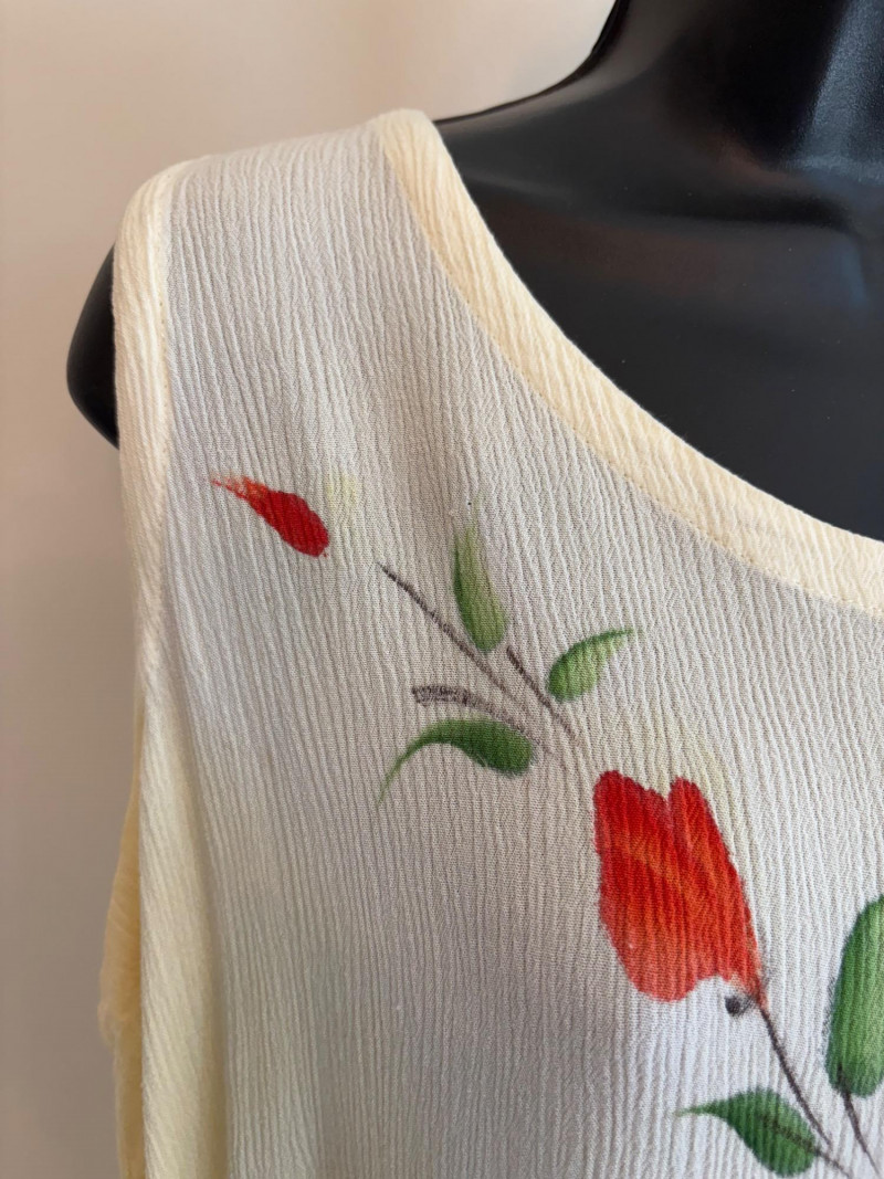 Three sleeveless dresses perfect for those warmer days from J. Jill and Hibiscus Collection Hawaii. (We think the Hibiscus Collection Hawaii ones are vintage.) Ivory gauzy dress from Hibiscus Collection Hawaii has orange & green floral motifs along the center front/back and neckline. In excellent condition. Great fall to the fabric. 100% rayon. Measures 22" pit to pit and 37" from back neckline to hem. Size tag says OSFA. Brown gauzy dress from Hibiscus Collection Hawaii has blue-green & yellow floral motifs along the hemline & single button back closure. In excellent condition. Great fall to the fabric. 100% rayon. Measures 22.5" pit to pit and 41" from back neckline to hem. Size tag says OSFA. Surfside scene dress from J. Jill has a wide variety of colors with palm trees and beach items along the lower area of the dress. Side in-seam pockets, bust darts, single button back closure, and fully lined. In great condition except for a faint discoloration on the upper left armhole we noticed while doing close-ups. We think it might launder out, but even if not, it isn't noticeable unless you know it's there - see last photo. 100% linen. Measures 23" pit to pit and 38" from back neckline to hem. Size tag says XL.