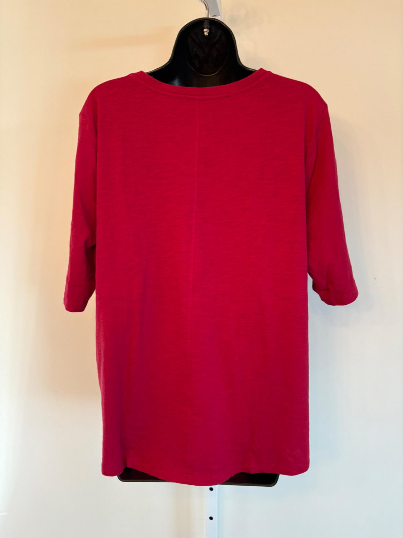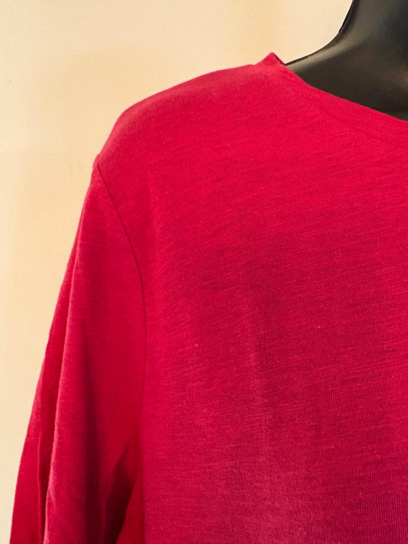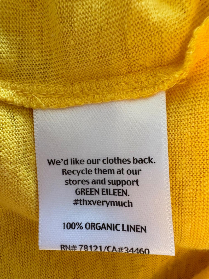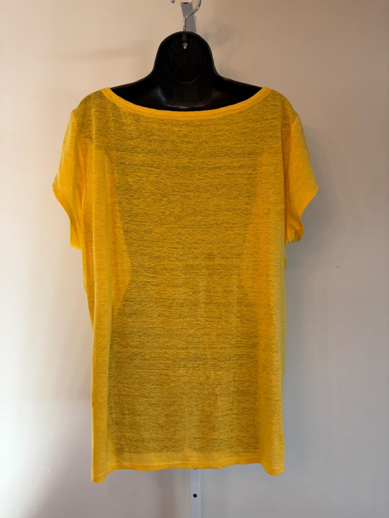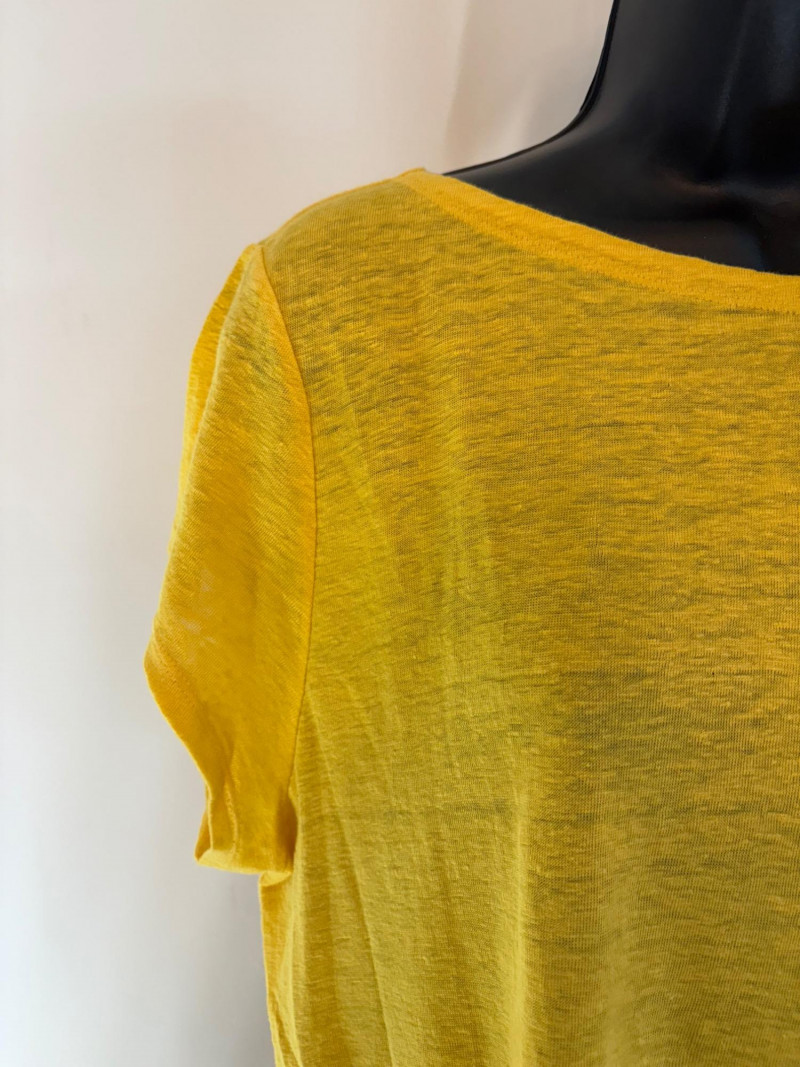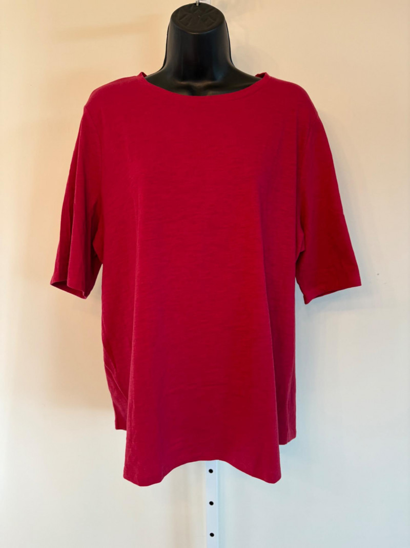 4 great t-shirts in yellow, white, red, and black from Eileen Fisher. All in excellent condition. All measure 23" pit to pit and 26" in length with size tags saying XL. Yellow shirt is 100% organic linen. White shirt is 100% organic cotton. Black V-neck t-shirt is 100% organic linen. Red shirt is 100% organic cotton.