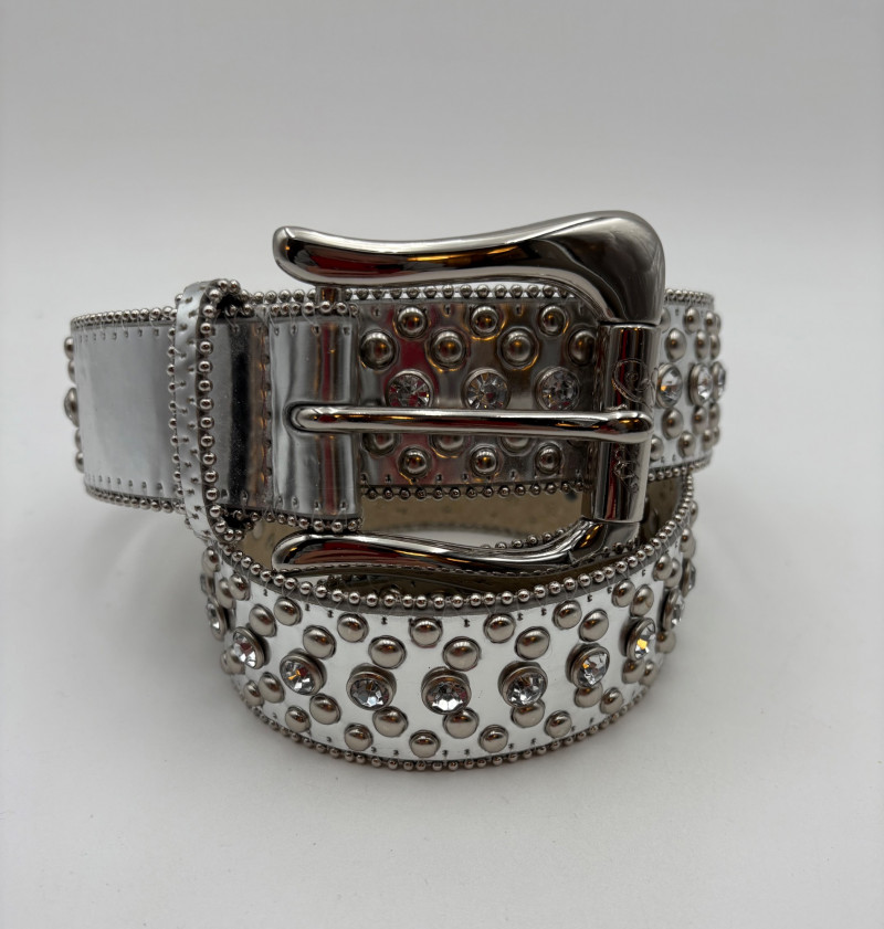 Lot # 88 - Silver Leather Purse & Studded Belt - Eileen Fisher/Guess - NWT