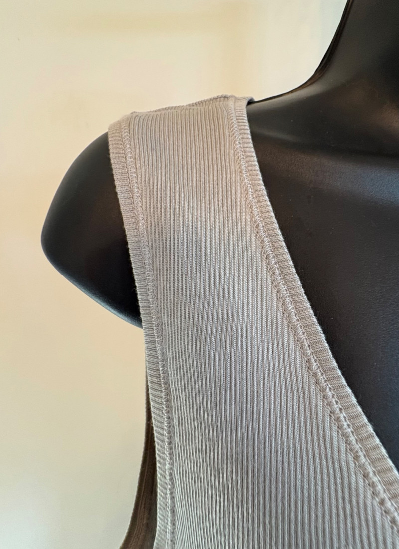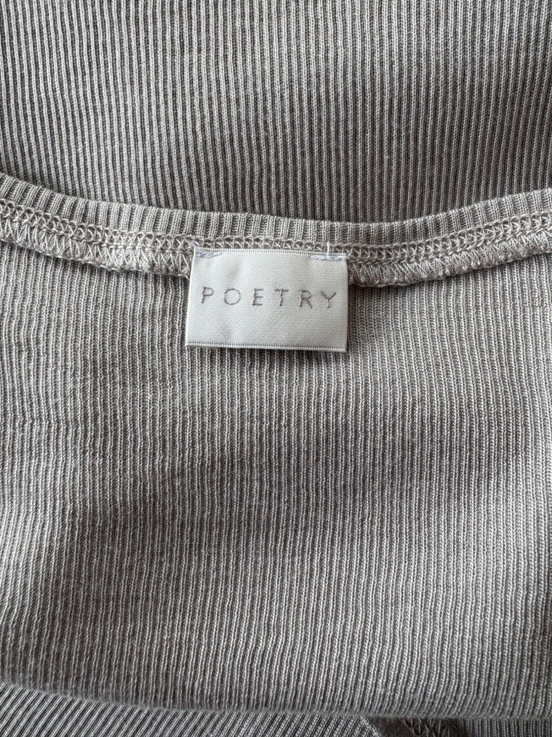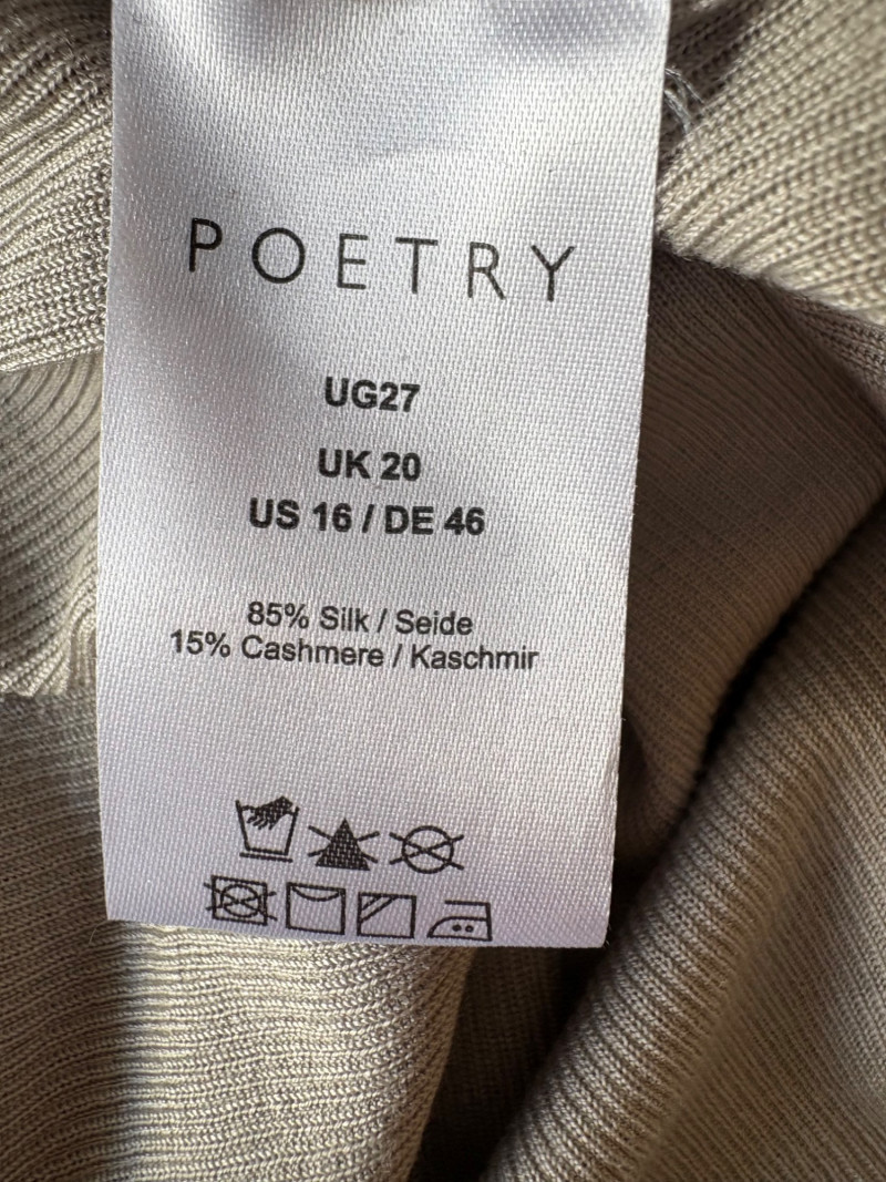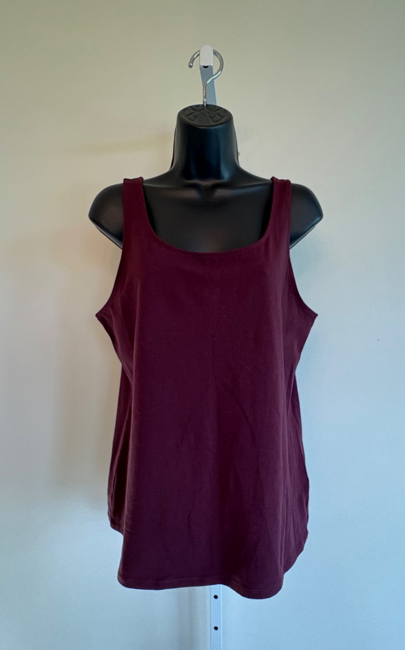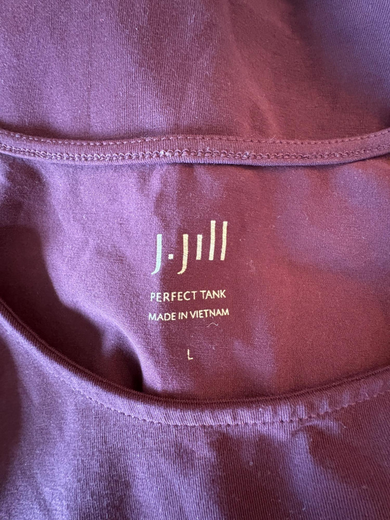 4 tanks in interesting colors from various makers. All measure 18.5" pit to pit and between 24" - 26" from shoulder strap to hem and all are in excellent condition. White tank from Eileen Fisher is 100% organic cotton. Size tag is unclear. Yellow tank from Eileen Fisher is 100% organic cotton. Size tag is missing. Maroon tank from J. Jill is 95% cotton with 5% spandex, Size tag sys L. Silvery/beige tank from Poetry is 85% silk with 15% cashmere. Size tag says 16.