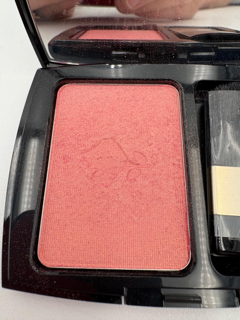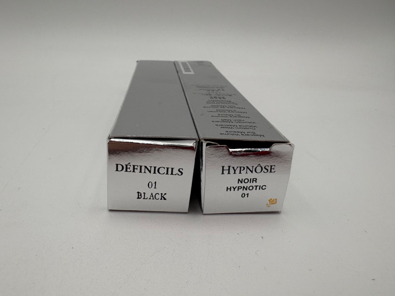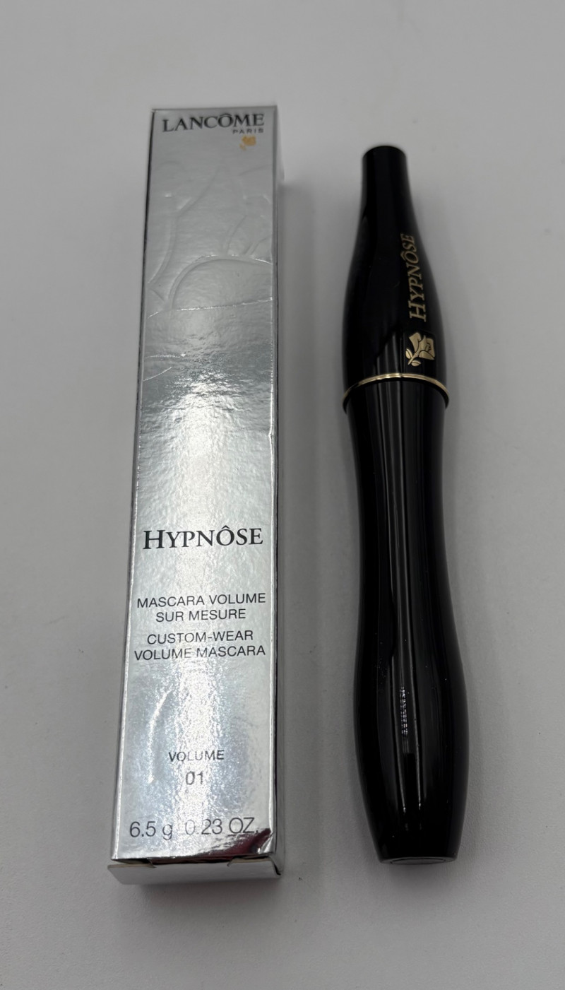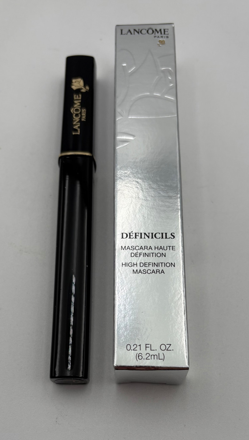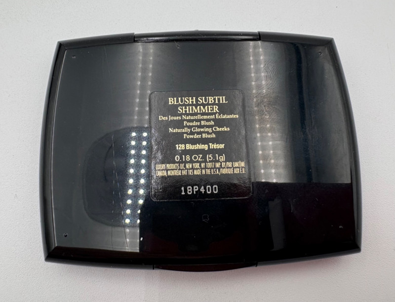 Three Lancome products from our client's makeup cabinet. We aren't very knowledgeable on the products or their effectiveness, so please take a close look at the photos. Note that all are sealed in their original packaging as far as we can tell - we opened the mascara boxes to photograph, but saw no signs of use. Likewise, when we opened the compact, the "rose" imprint in the powder was still intact as was the plastic wrap around the brush. 2 tubes of mascara - one "Hypnose" and the other "Definicils". Both are 01 - Black color 1 blush powder compact "Blush Subtil Shimmer" for "naturally glowing cheeks" in #128 - Blushing Tresor Lancome storage bag