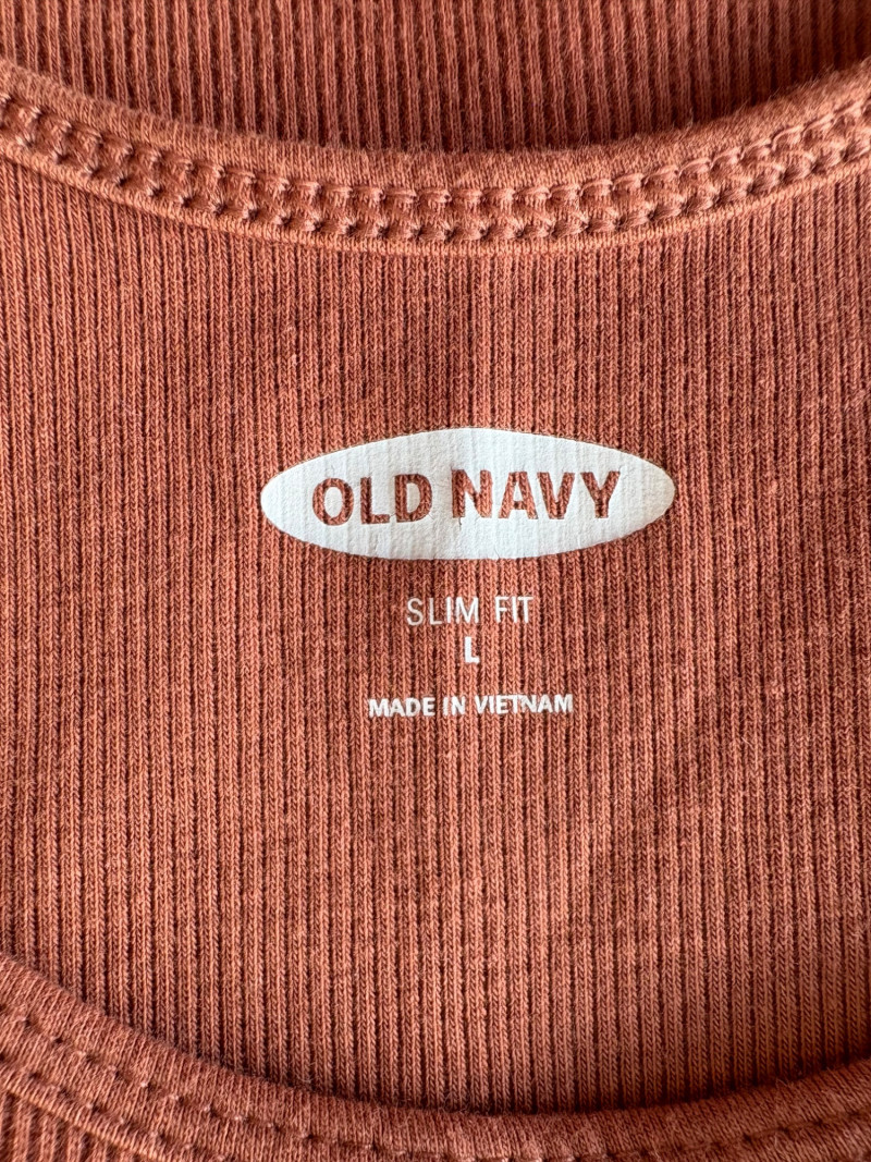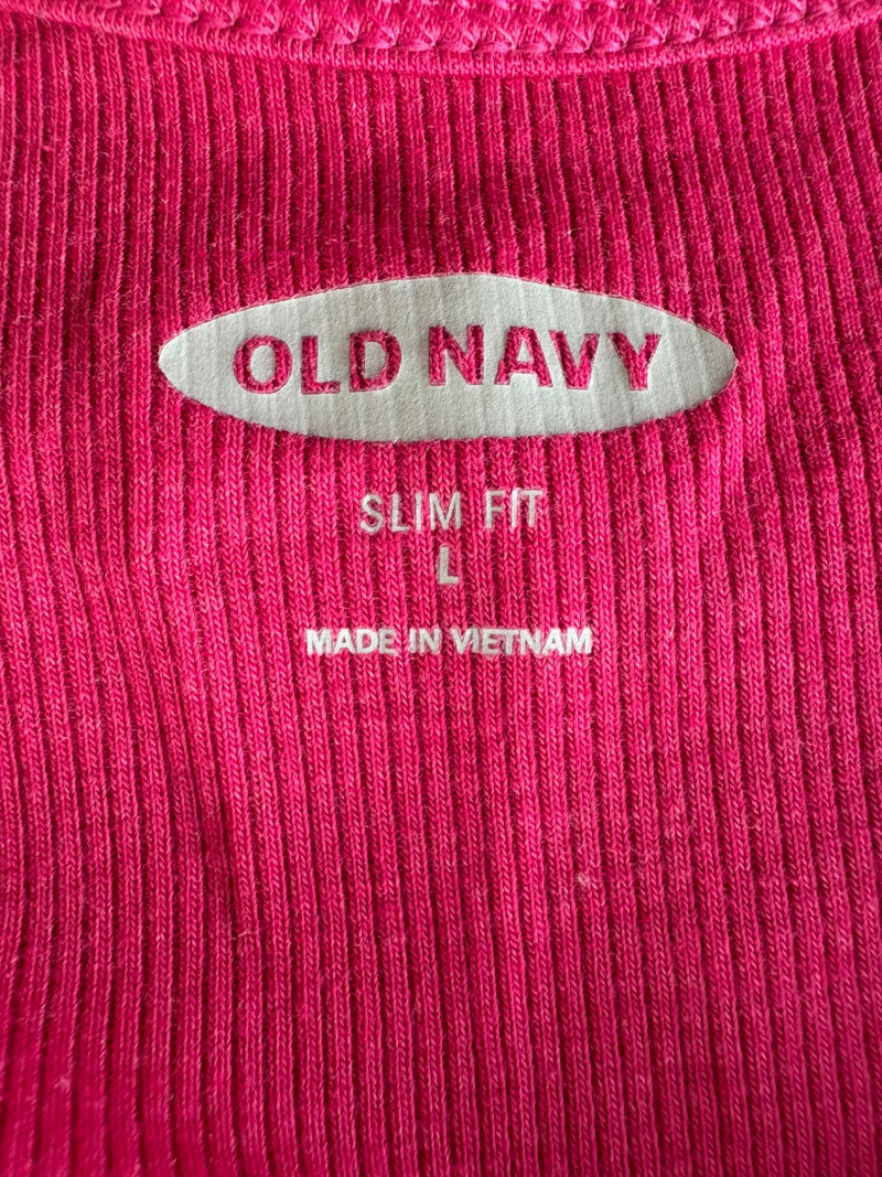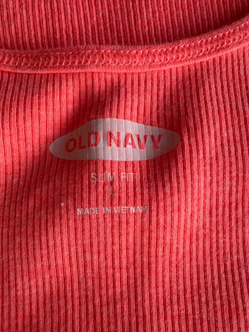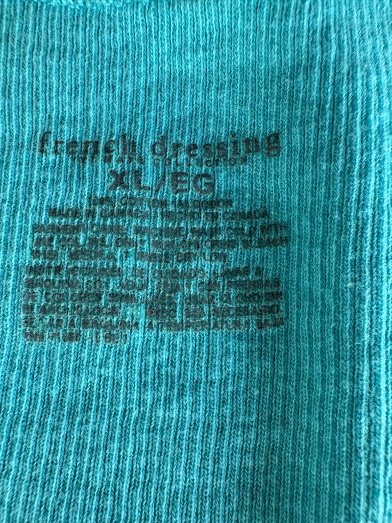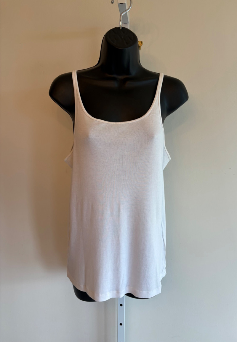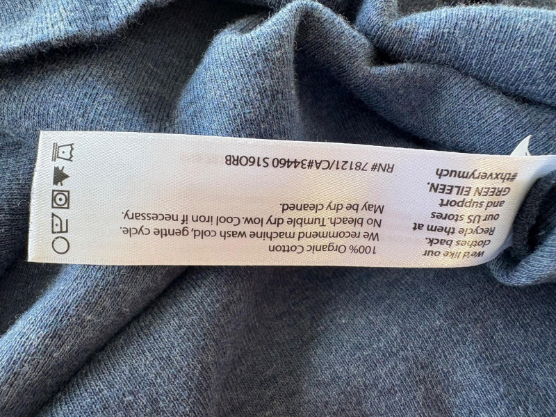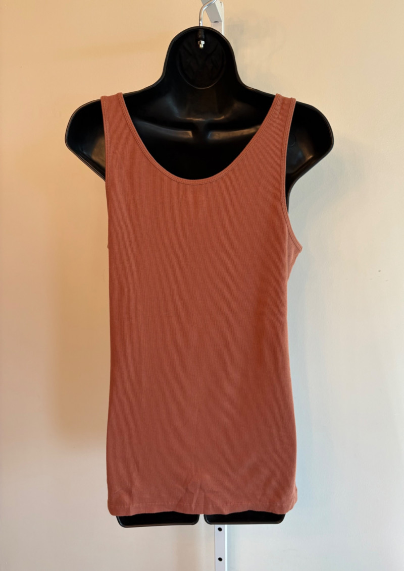 6 tanks in various fibers from Old Navy, French Dressing, & Eileen Fisher. All are in good used condition. Dark pink, puce, and light brown tanks from Old Navy measure 16" pit to pit and 26" or so in length from shoulder strap to hem. 57% cotton with 38% polyester and 5% spandex. All are size L. Light blue tank from French Dressing measures 15" pit to pit and 22" from shoulder strap to hem. 100% cotton. Size tag says XL. White tank from Eileen Fisher measures 16.5" pit to pit and 24" from shoulder strap to hem.. (While it is still in good used condition, it is the most used of the group.) 100% organic cotton. Size tag says PL. Blue Eileen Fisher tank measures 16.5" pit to pit and 26" from shoulder strap to hem. 100% cotton. Size tag says L.