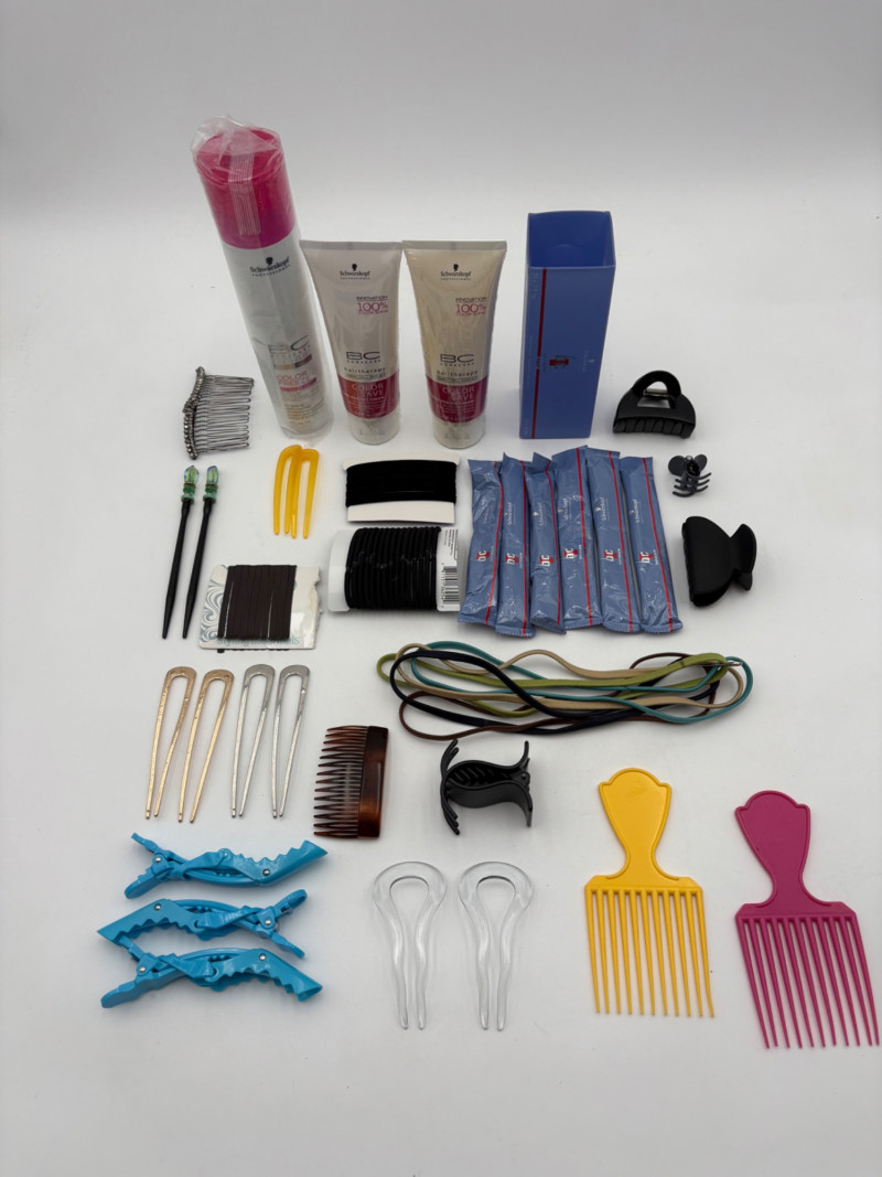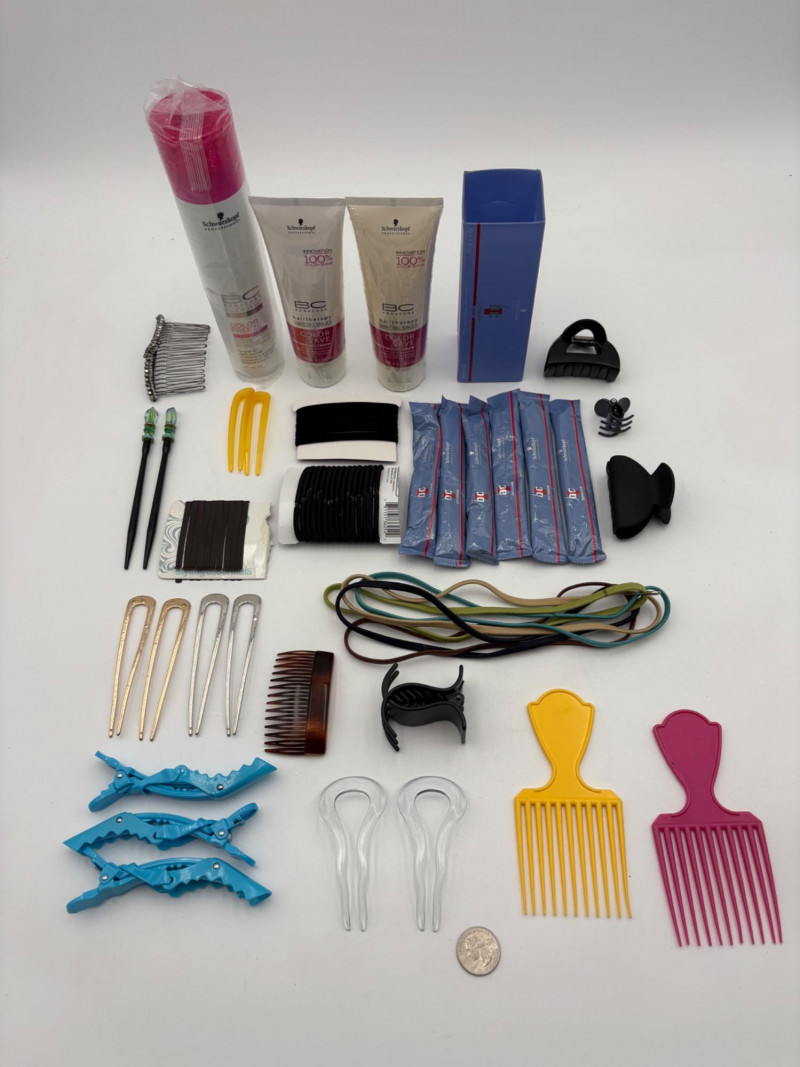 Variety of haircare items and products. The Schwarzkopf products are sealed, but we cannot vouch for their effectiveness.