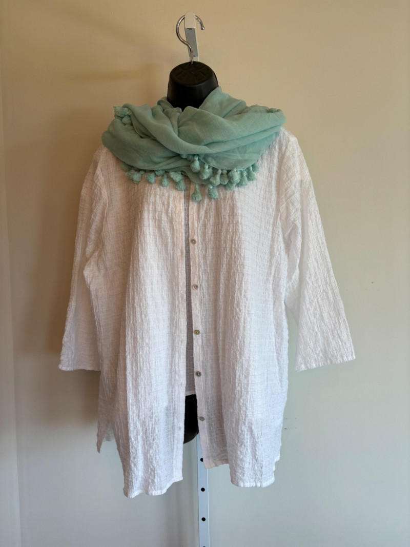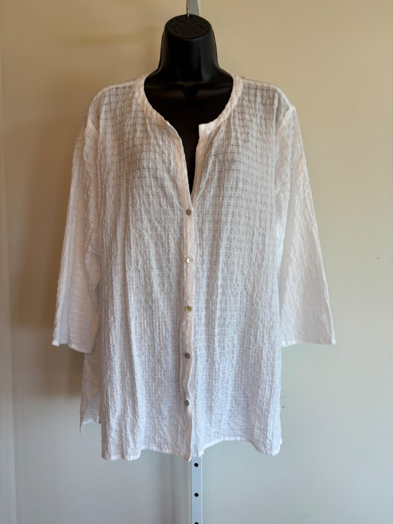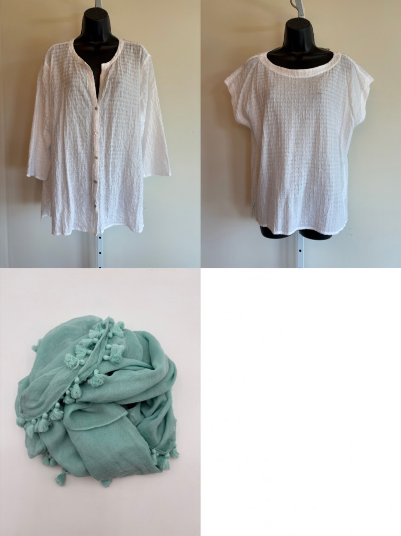 Lot # 102 - Light White Cotton Shirt , Overshirt, & Scarf - Eileen Fisher