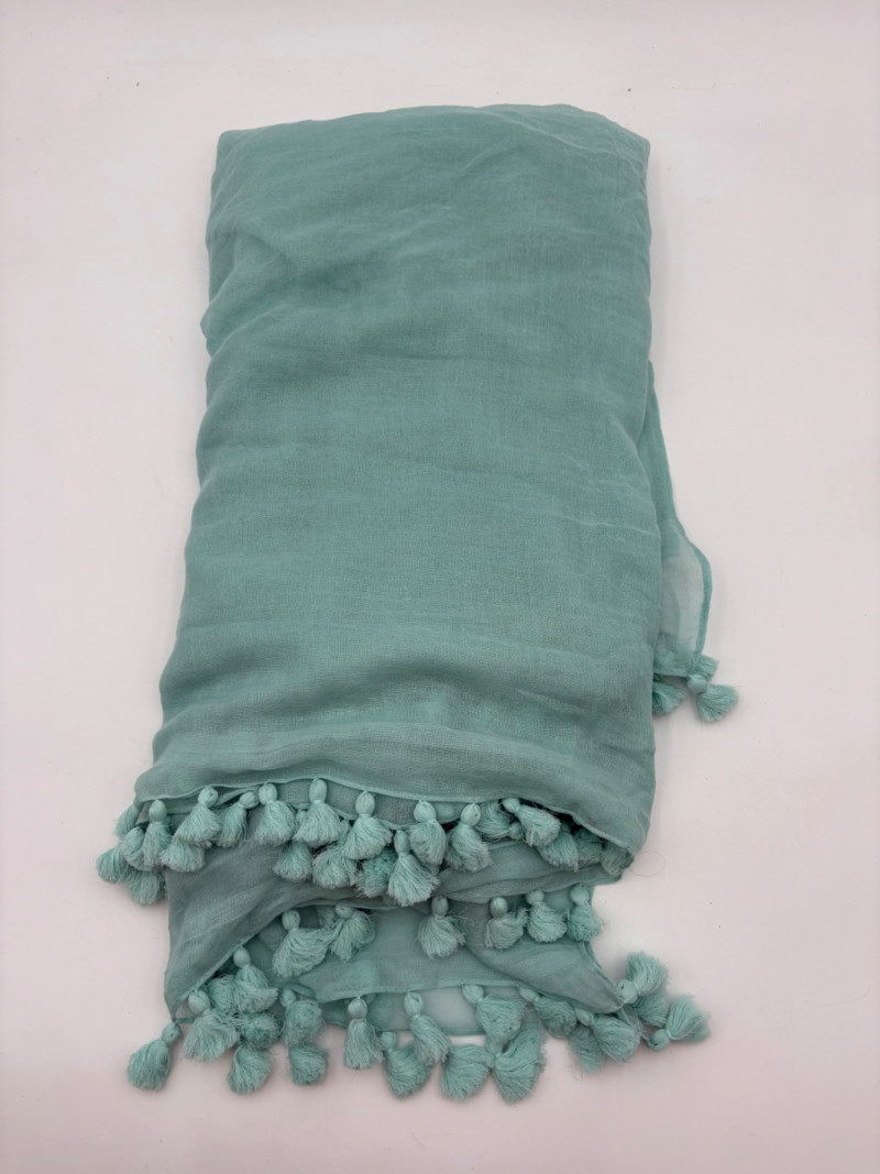 Two great Eileen Fisher coordinating pieces to use together or alone combined with an aqua scarf from Martha Stewart for the evening. Short sleeve shirt has angled front seaming from the armpit ending in short split hems. In excellent condition. 99% organic cotton with 1% spandex - lightweight woven squares fabric with just a hint of stretch. Measures 23" pit to pit and 23" from back neckline to hem. Size tag says M. Matching long -sleeve jacket/overshirt has round neckline, button front closure, and split hem with back hem approx. 1" longer than front. in excellent condition. 99% organic cotton with 1% spandex. Measures 25" pit to pit and 28" from back neckline to hem. Size tag says XL. Aqua lightweight scarf from Martha Stewart has tassels on the short ends. Measures approx. 40" x 75".