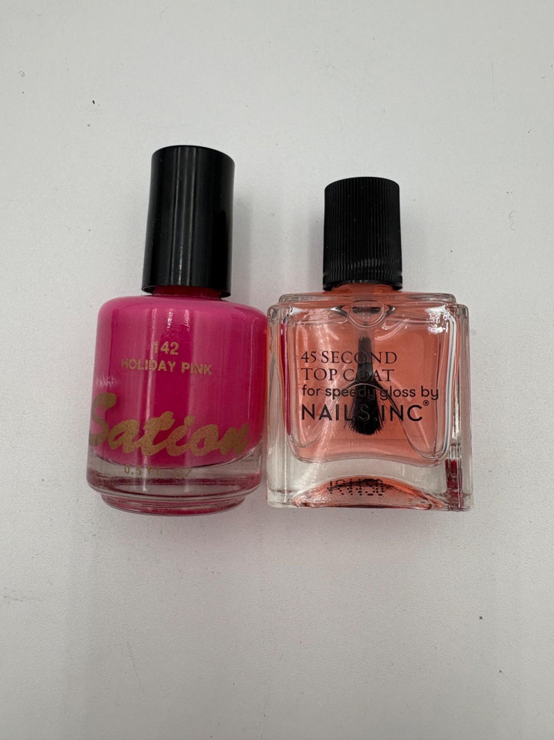 25 bottles of nail polish or nail product. Some have been used a bit, but most are full/nearly full and colors still vivid. (While we normally don't sell open items, nail polish has enough chemicals in it that we aren't worried about any contamination transfer to the new owner.) See photos for details.