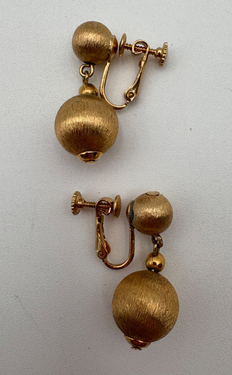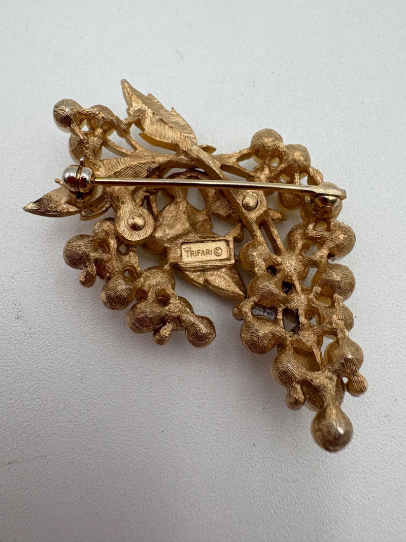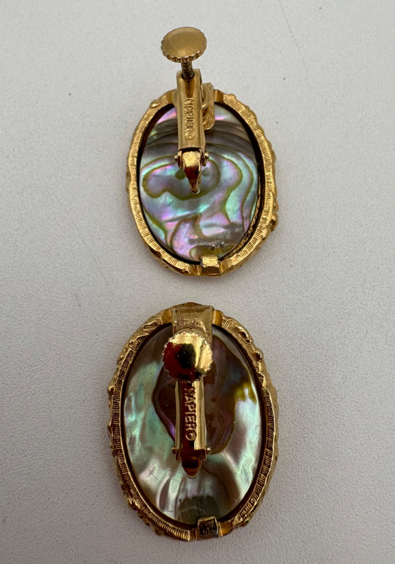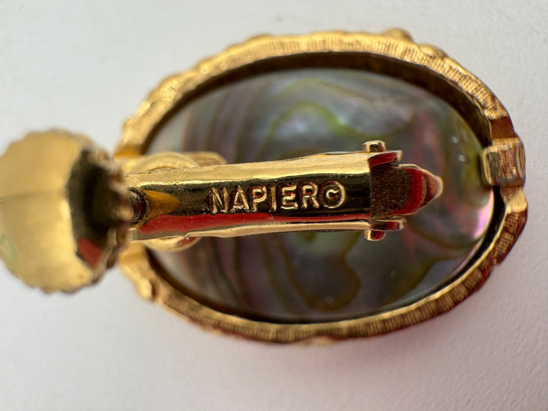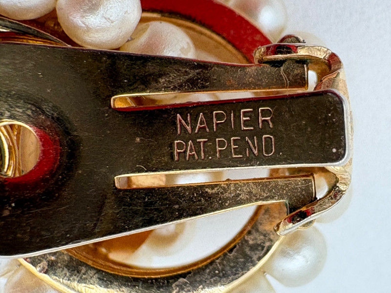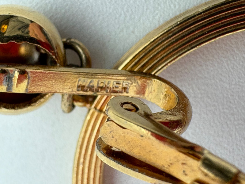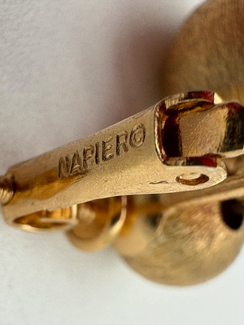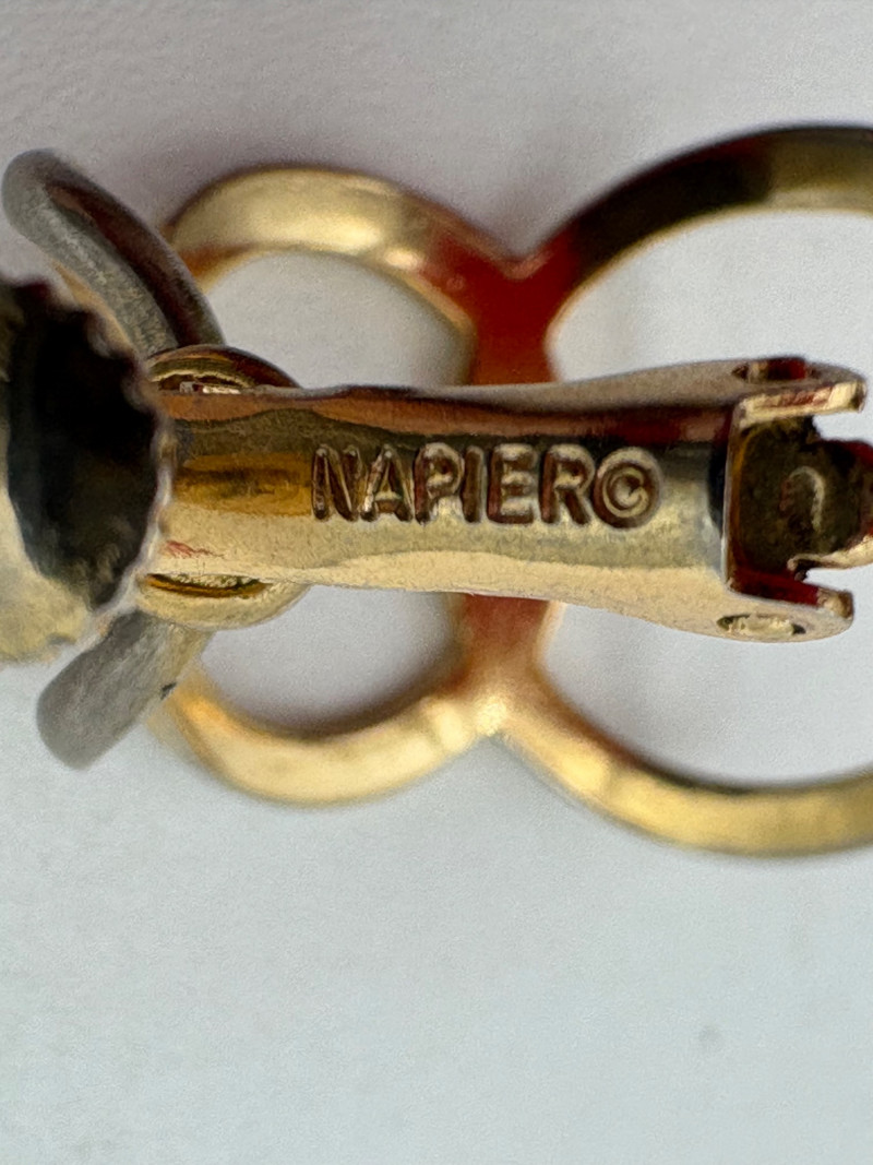 Vintage clip-on earrings from Napier and a pin from Trifari. See photos for details & maker marks.