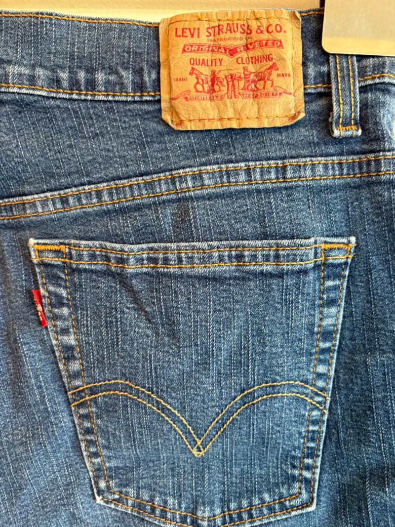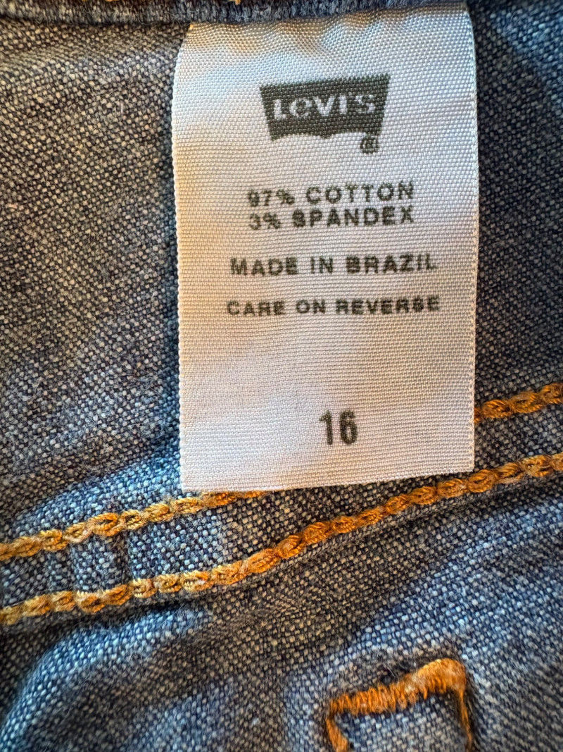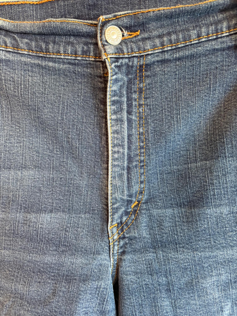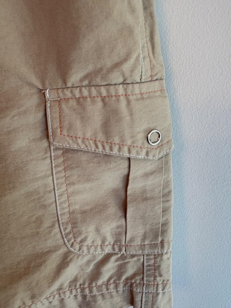 Three pairs of shorts for casual wear from JMS & Levi's. Levi's shorts have traditional 5-pocket styling, zip fly front, and Levi's back tag. In excellent condition (we think they have a purposedly distressed finish). 97% cotton with 3% spandex. Measure 18" side to side at waist with 6.5" inseam. Size tag says 16. 2 pairs of identical JMS shorts in blue and khaki. Both have elasticated waistband with drawstring, faux fly, set-in side pockets, and left leg cargo pocket. 70% cotton with 30% nylon. Both are in excellent condition and measure 18.5" side to side at waist with 5.5" inseam. Size tags say 2X.