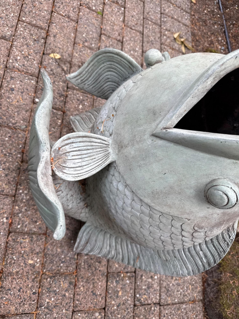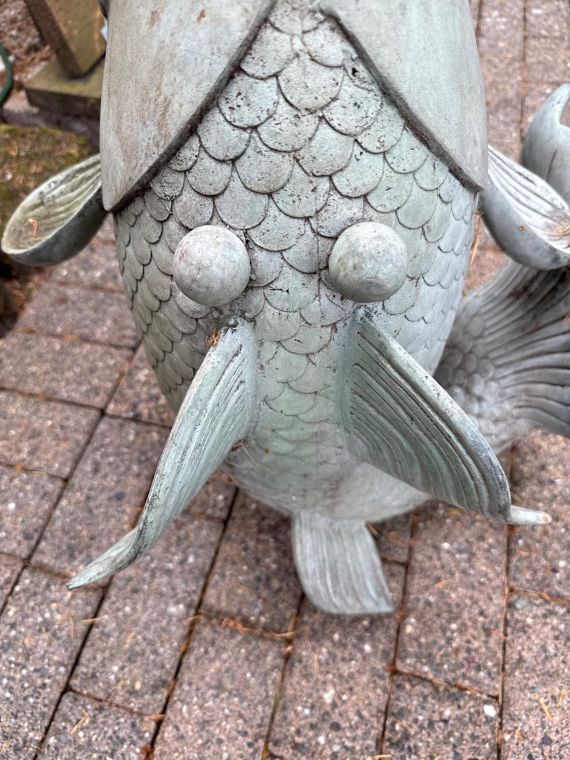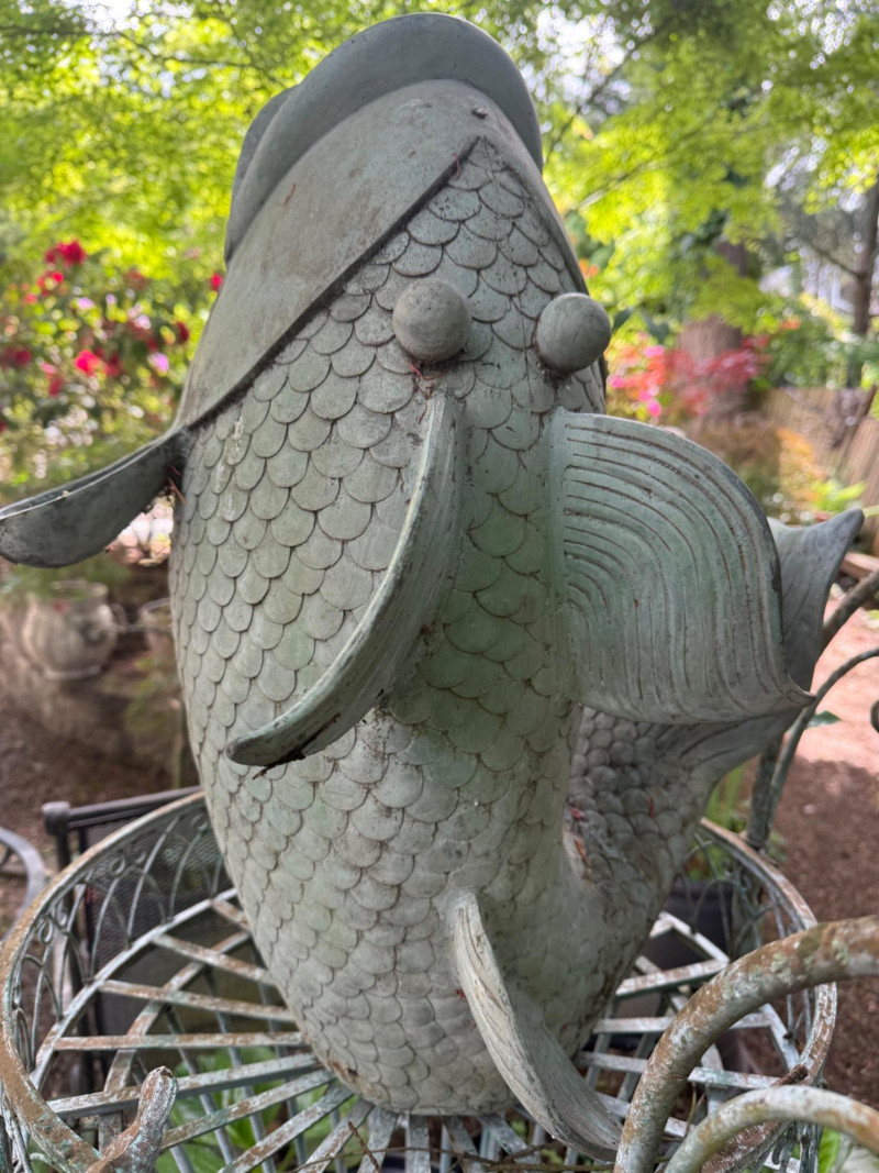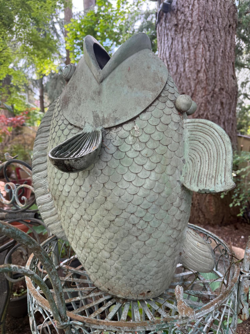 Dimensions are 24T x 22 W Cast bronze metal fish In great condition. Heavy