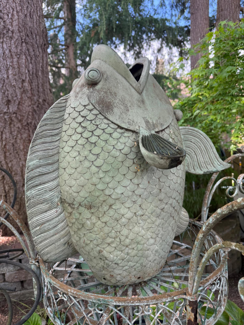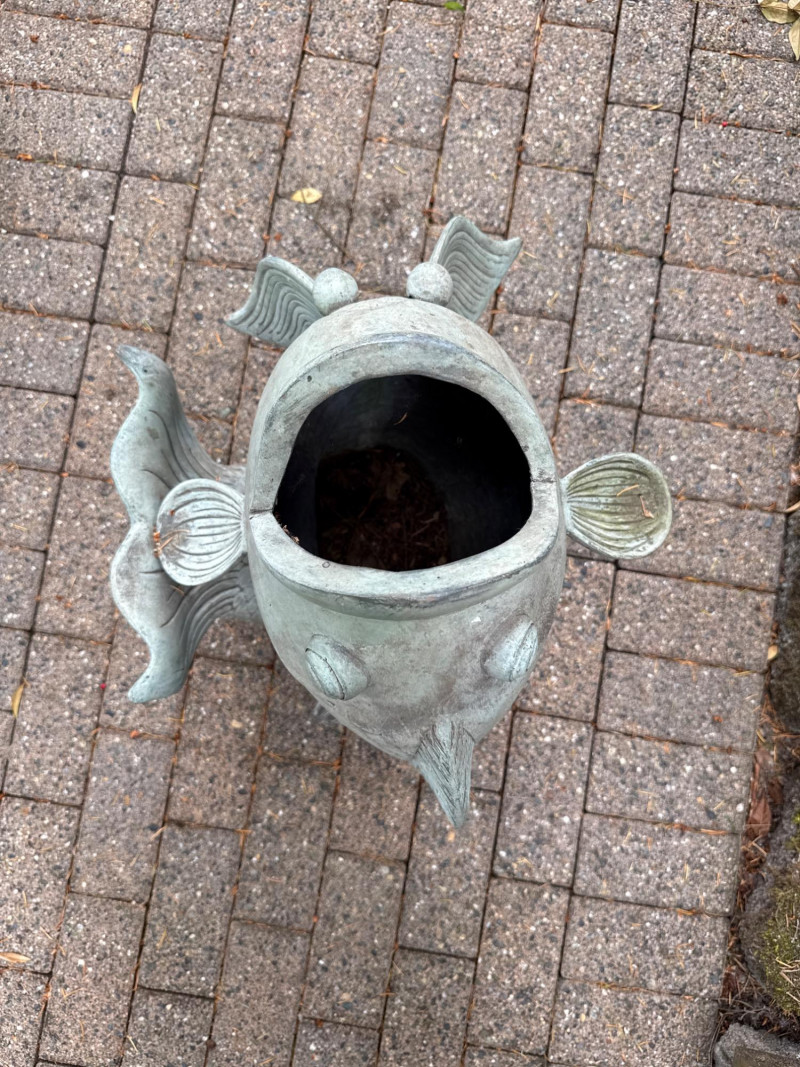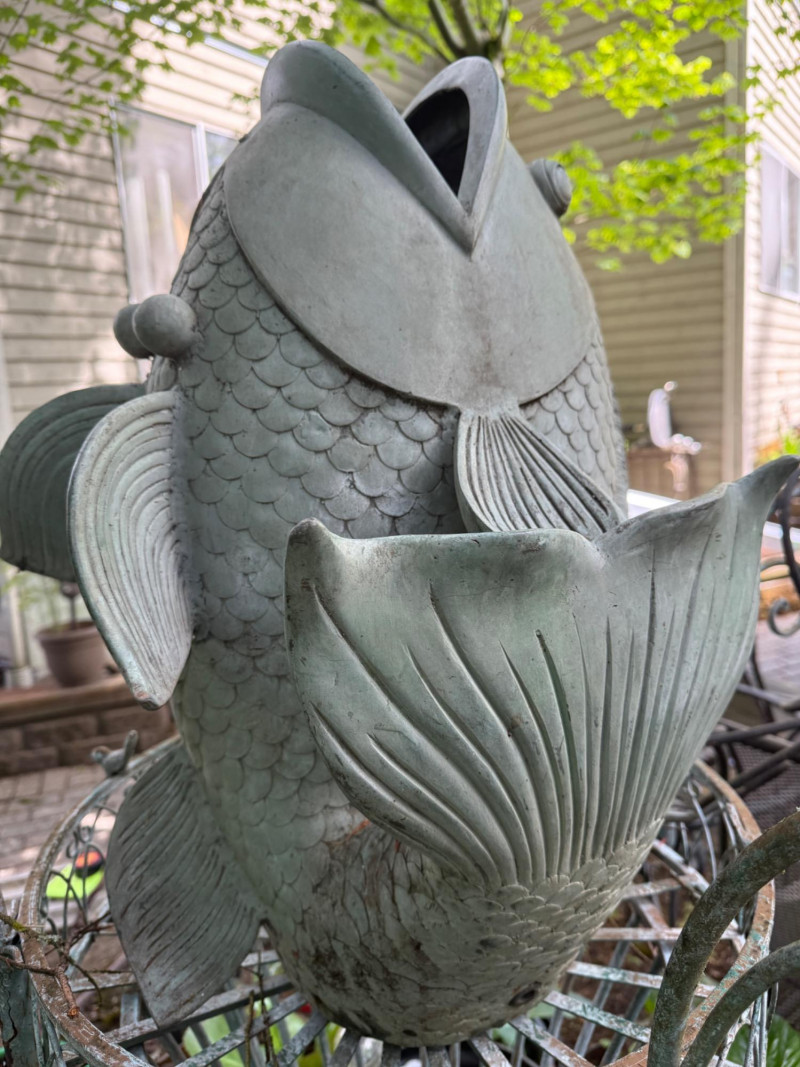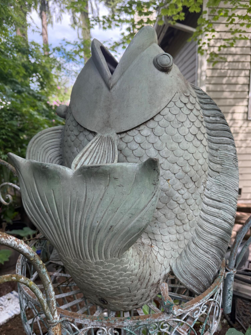 Dimensions are 24T x 22 W Cast bronze metal fish In great condition. Heavy