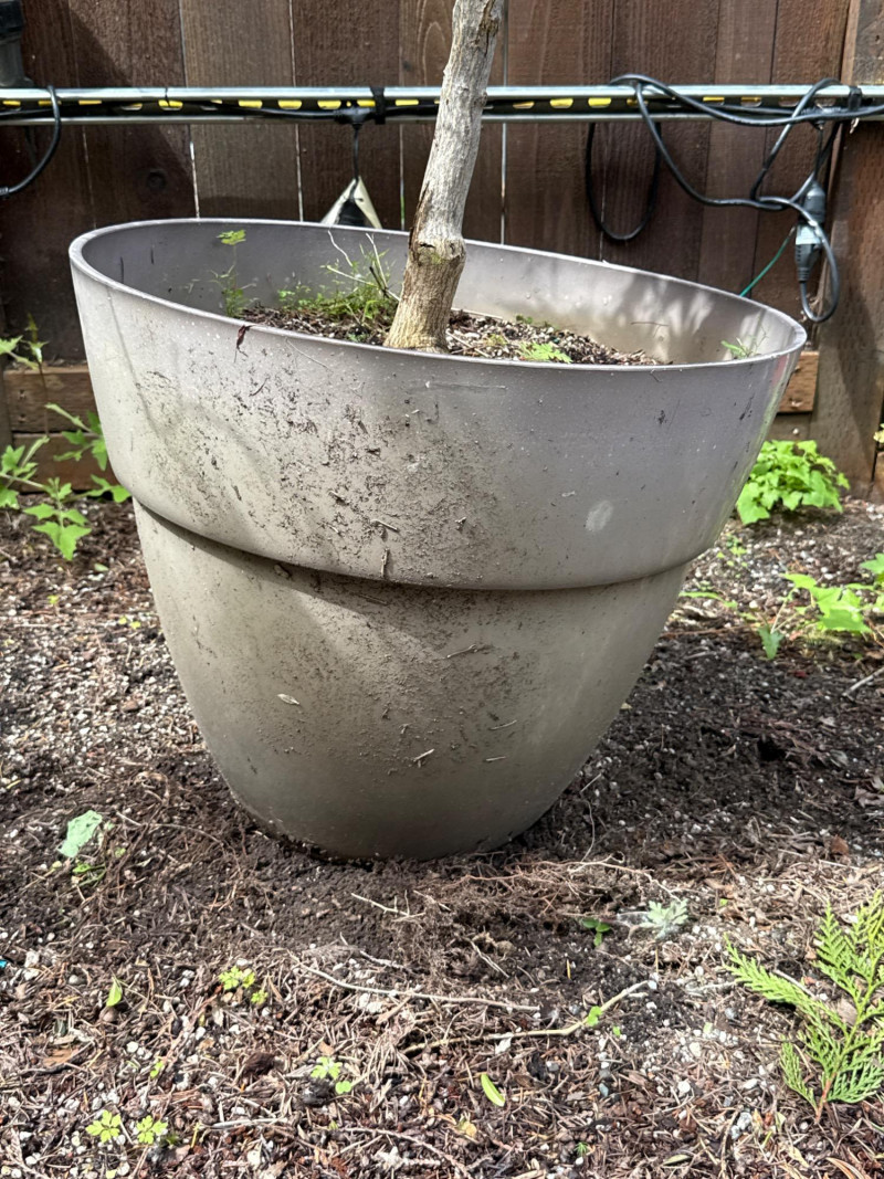 **Note: Plant dimensions are approximate. Plant health is not guaranteed but are being maintained. Plastic/Resin pot dimensions are 19in tall, 22in wide. Plant dimensions from soil to tip are: 53in tall, 74in wide. Heavy, with easy load location. Bring support to help load.