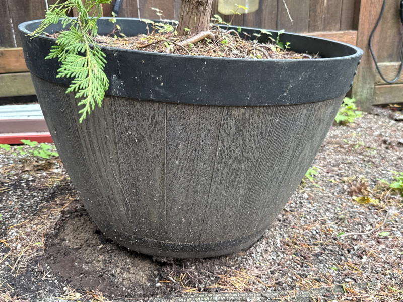 **Note: Plant dimensions are approximate. Plant health is not guaranteed but are being maintained. Plastic/Resin pot dimensions are 17in tall, 24in wide. Plant dimensions from soil to tip are: 6ft tall, 6ft wide. Heavy, with easy load location. Bring support to help load.
