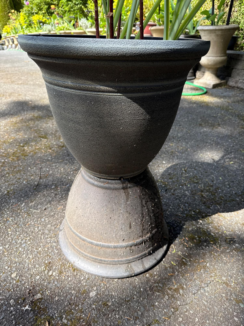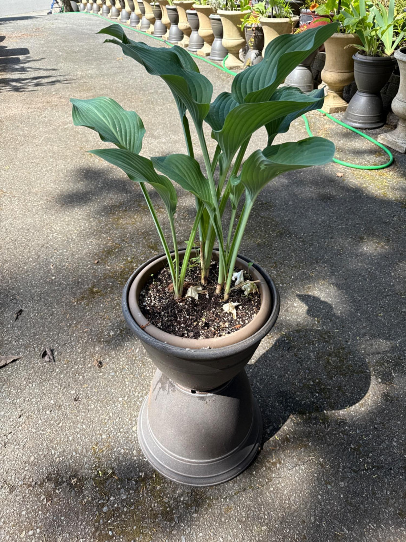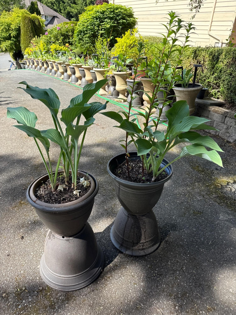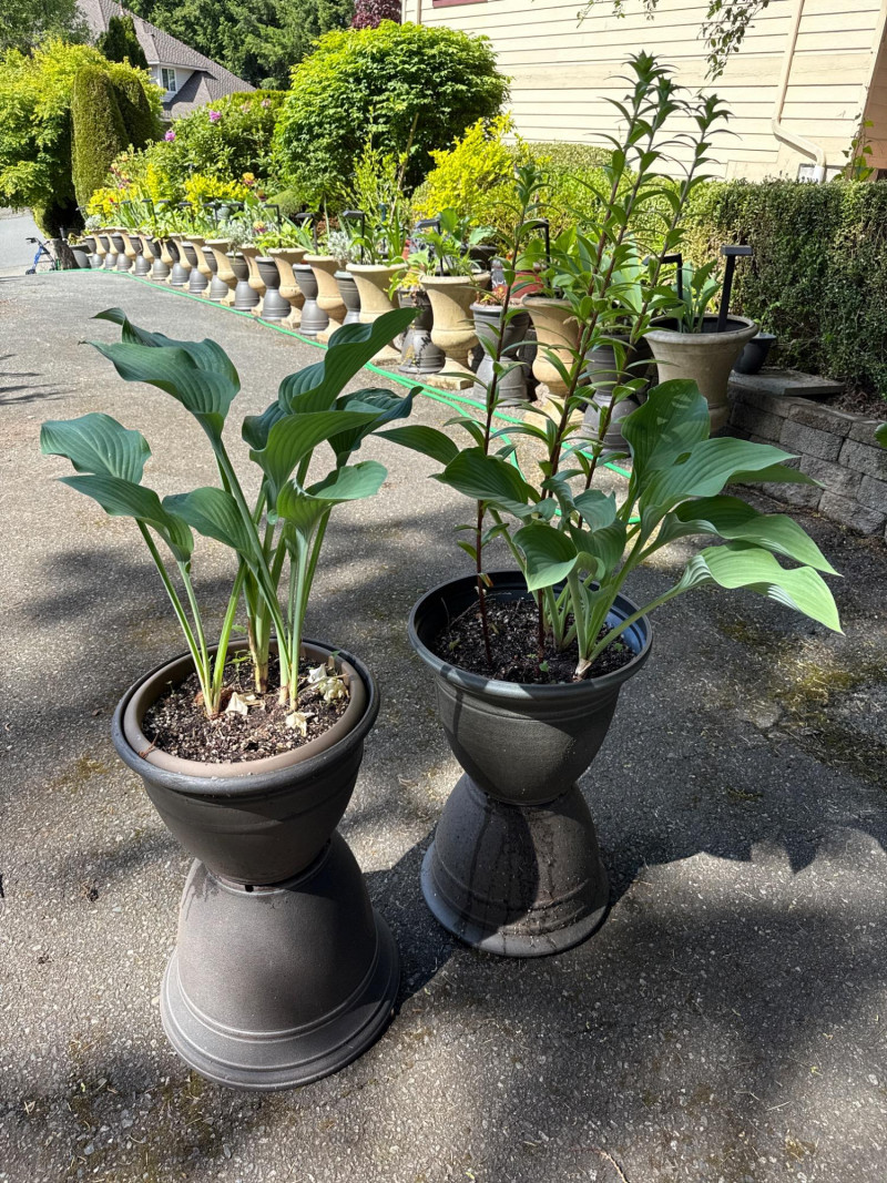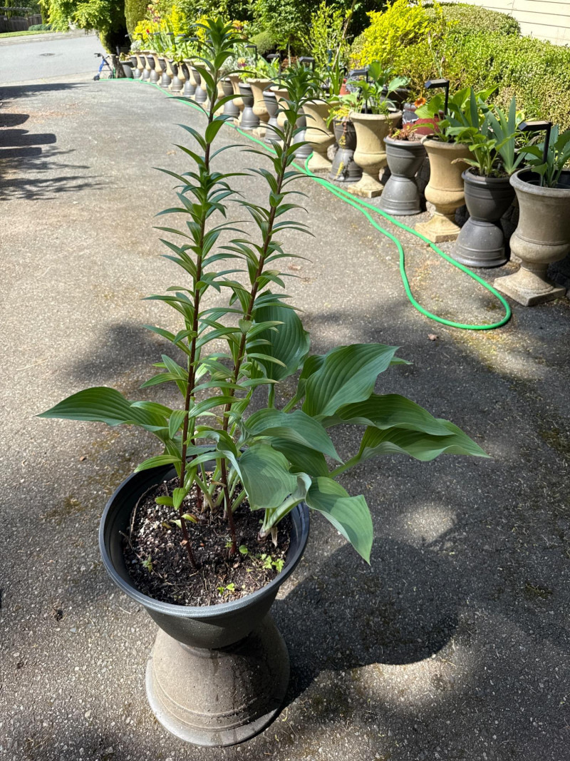 Lot # 38 - 2 Stacked Pots with Tall Hosta's and Lilies