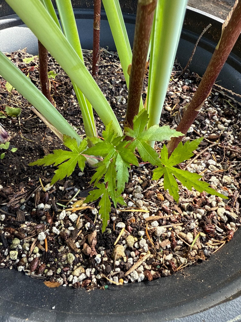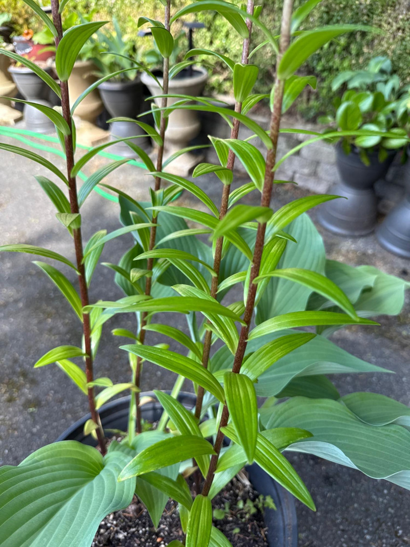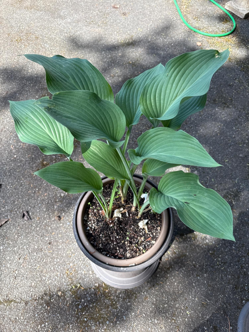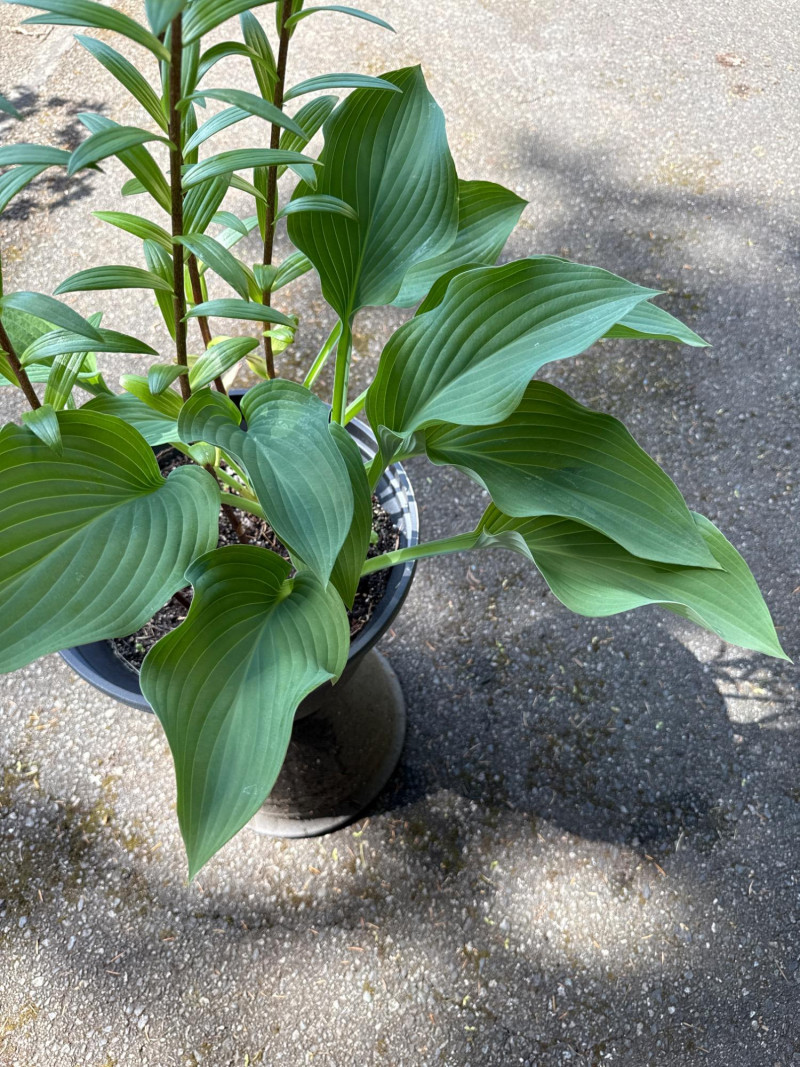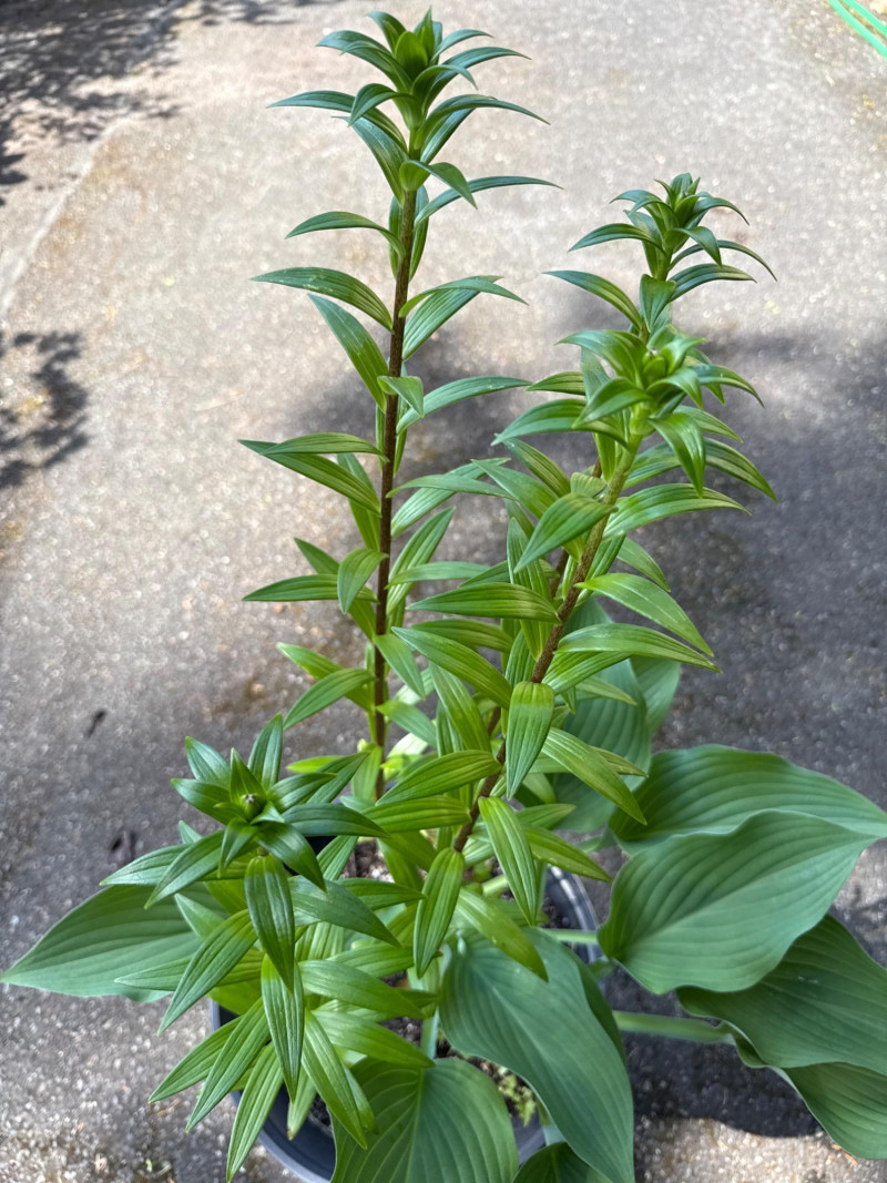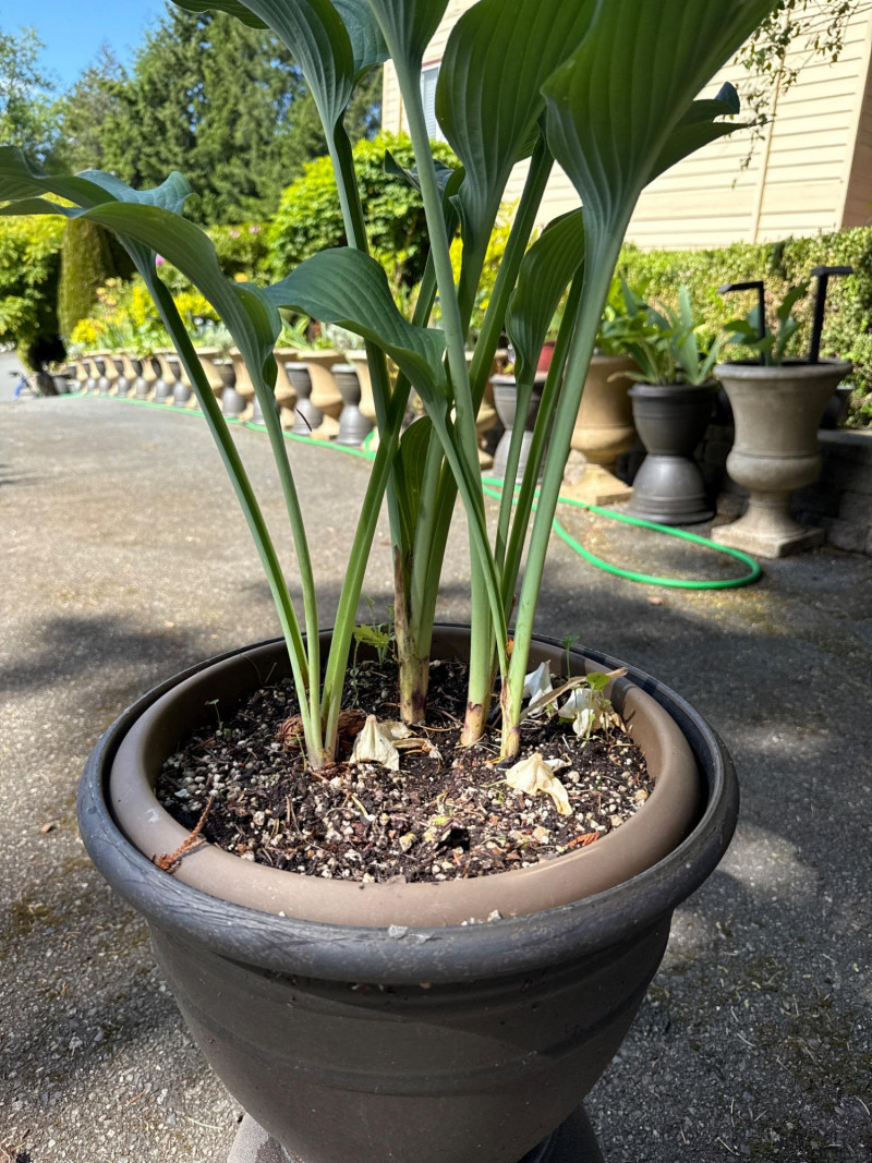 Lot # 38 - 2 Stacked Pots with Tall Hosta's and Lilies