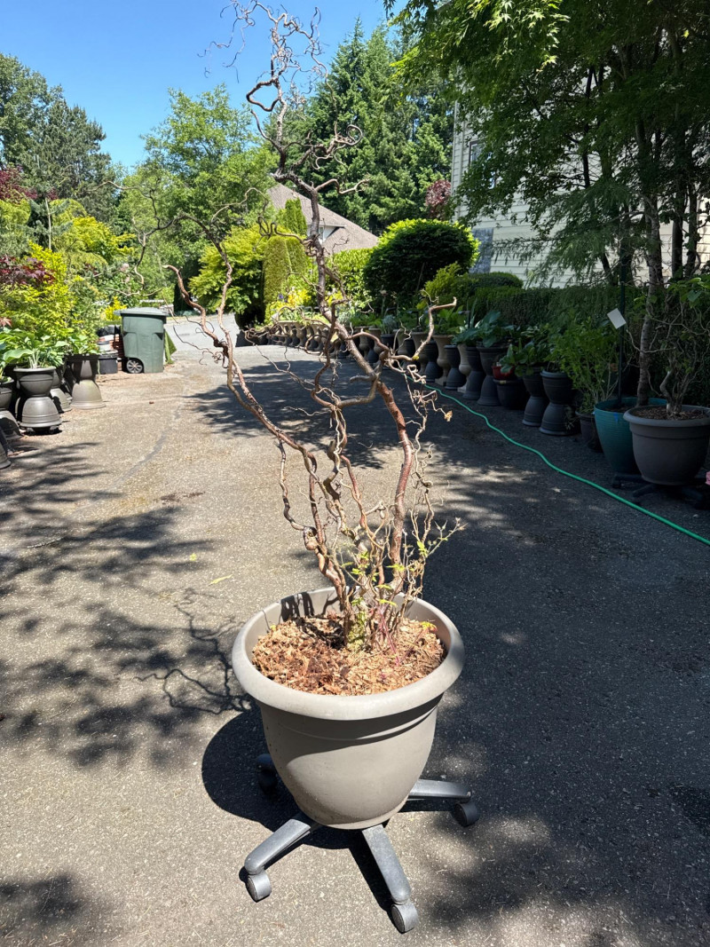Lot # 41 - Corkscrew Hazel Tree in Gray Rolling Pot