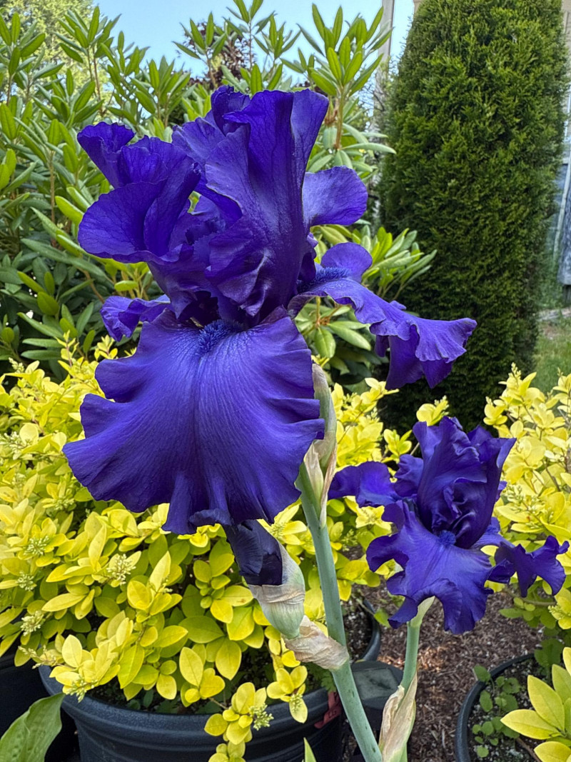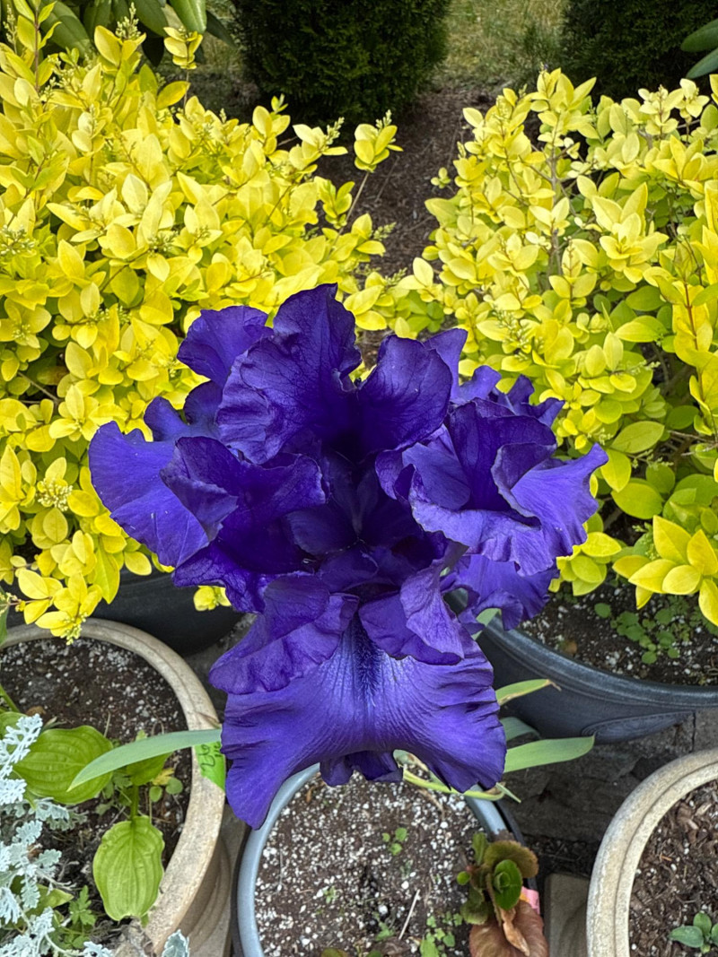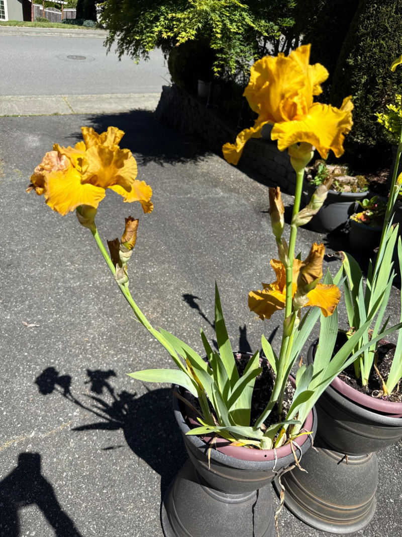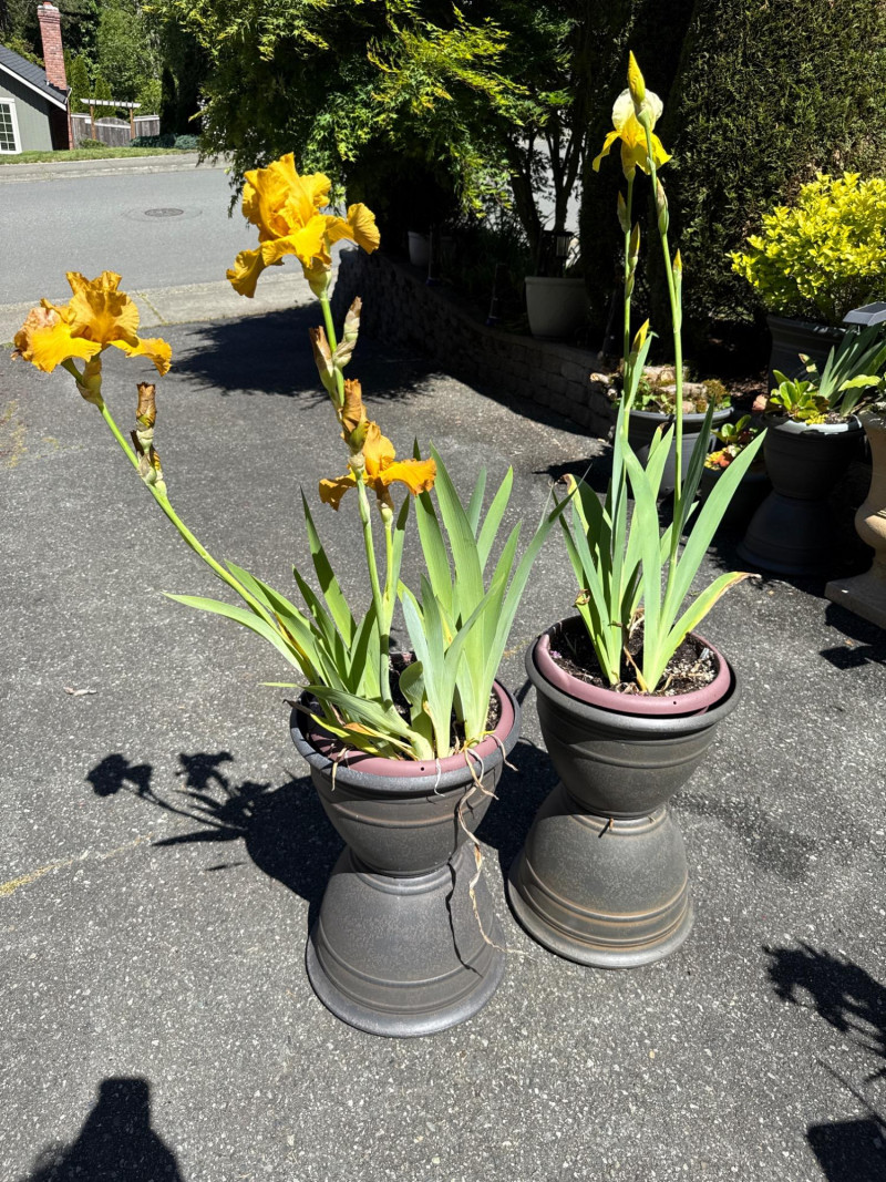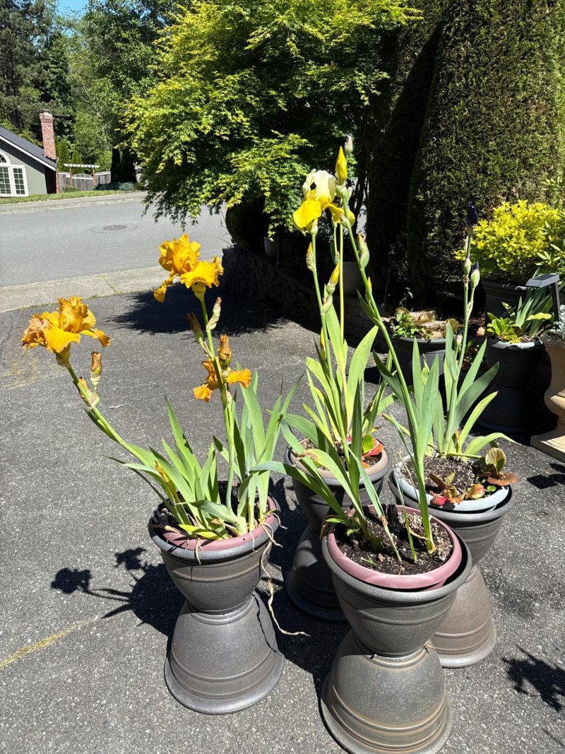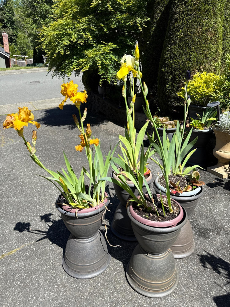 Lot # 46 - Purple, Golden and Yellow Iris Flowers in 4 Stacked Pots