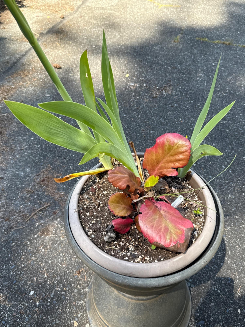 Lot # 51 - Purple Bearded Iris, Kolanchoe Plants in Three Stacked Pots