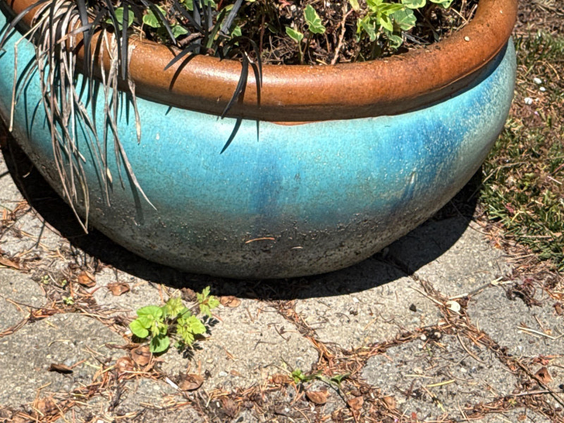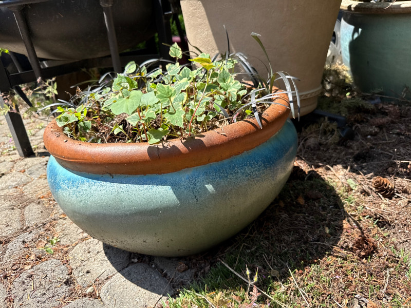Lot # 58 - Large Blue Glazed Pot with Small Plants