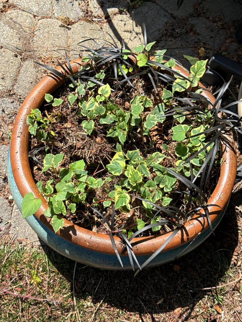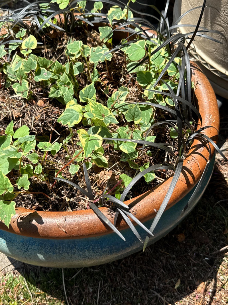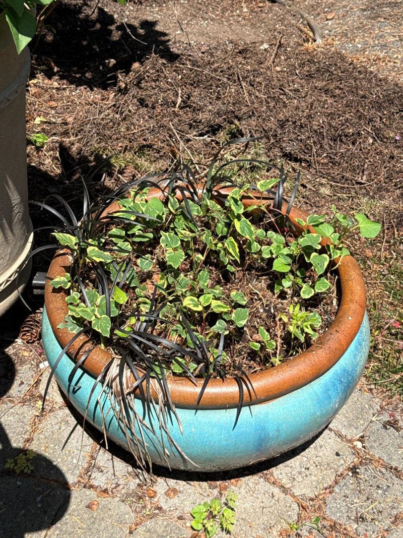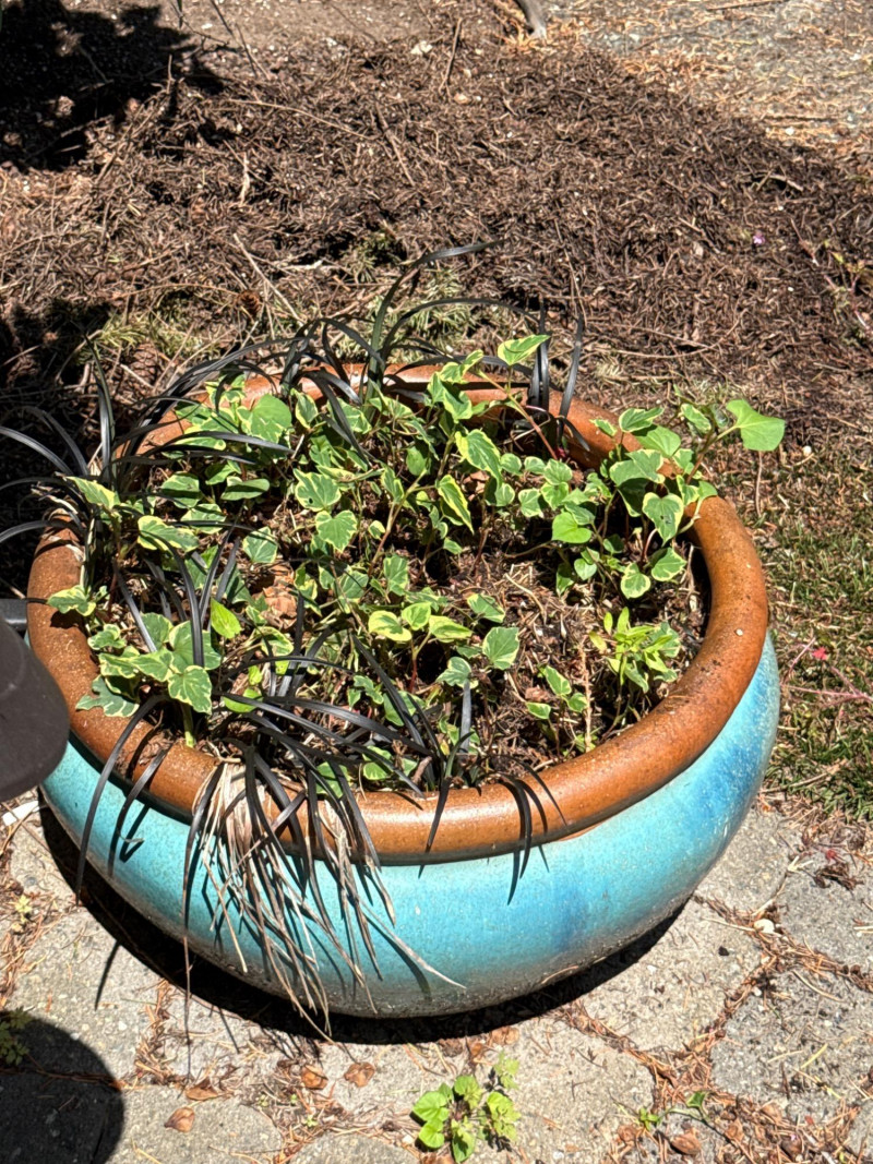 **Note: Plant dimensions are approximate. Plant health is not guaranteed but are being maintained. Ceramic pot dimensions are 10in tall,19in wide. Heavy, with easy load location. Bring support to help load. Ivy, Lilac and ornamental grasses