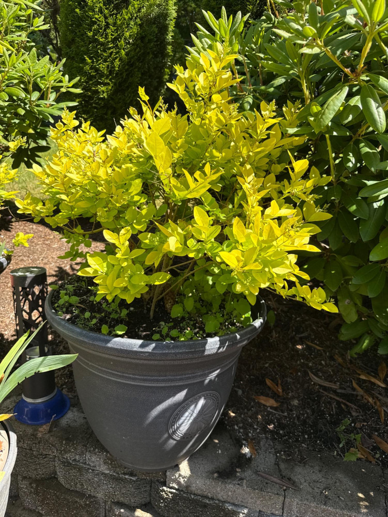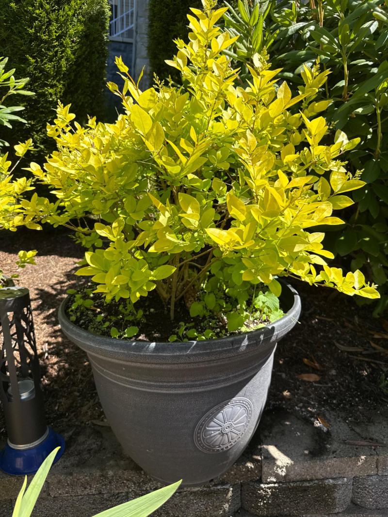 **Note: Plant dimensions are approximate. Plant health is not guaranteed but are being maintained. Plastic/Resin pot dimensions are 18in tall, 20in wide. Plant dimensions from soil to tip are: 22in tall, 37in wide. Heavy, with easy load location. Bring support to help load.