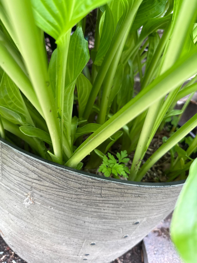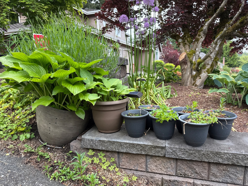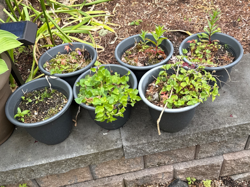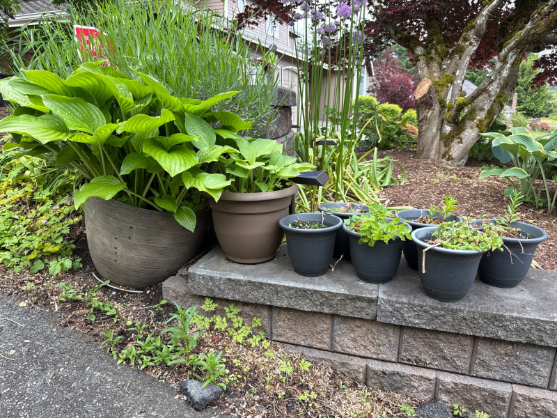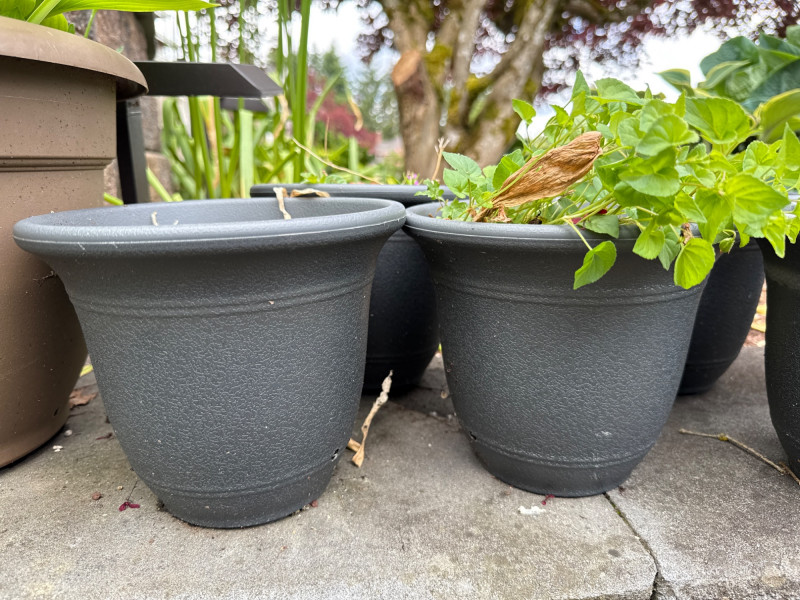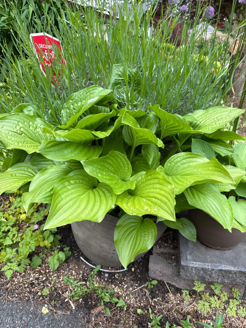 **Note: Plant dimensions are approximate. Plant health is not guaranteed but are being maintained. Plastic/Resin pot dimensions are 17in tall, 17in wide. 11in tall, 11in wide Plant dimensions from soil to tip are: Varies Heavy, with easy load location. Bring support to help load. Hosta, Lavendar, Creeping Jenny plants. Smaller pots do not all have plants