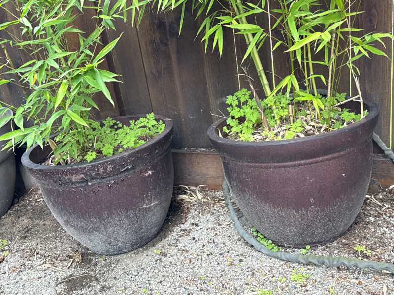 **Note: Plant dimensions are approximate. Plant health is not guaranteed but are being maintained. Plastic/Resin pot dimensions are 17in tall, 22in wide. Plant dimensions from soil to tip are: 80in tall, 42in wide. Second is 48in tall, 48in wide Heavy, with easy load location. Bring support and equipment to help load.