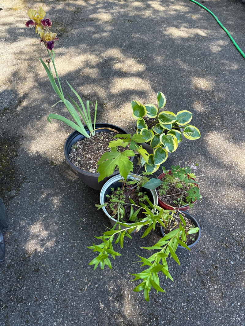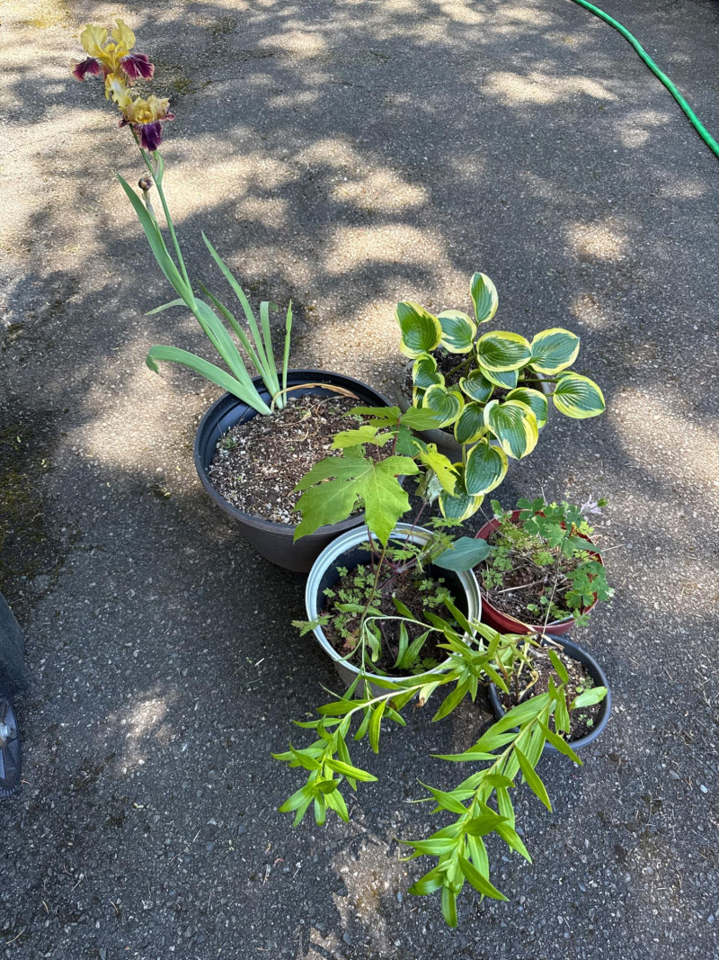 Lot # 89 - Five Misc. Starter Plants – Iris, Hosta, Lily, Maple, Columbine