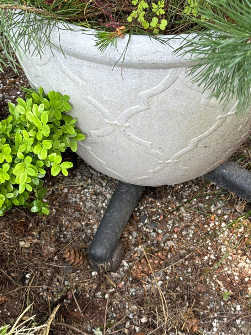 **Note: Plant dimensions are approximate. Plant health is not guaranteed but are being maintained. Plastic/Resin pot dimensions are 18in tall, 20in wide. Plant dimensions from soil to tip are: 18in tall, 31in wide. Heavy, bring support to help load. Wheels are not original to pot
