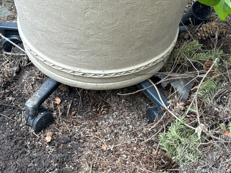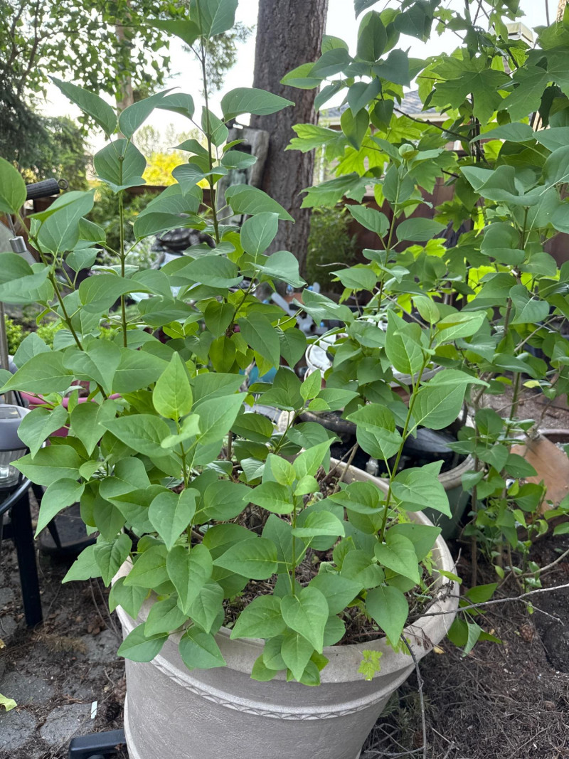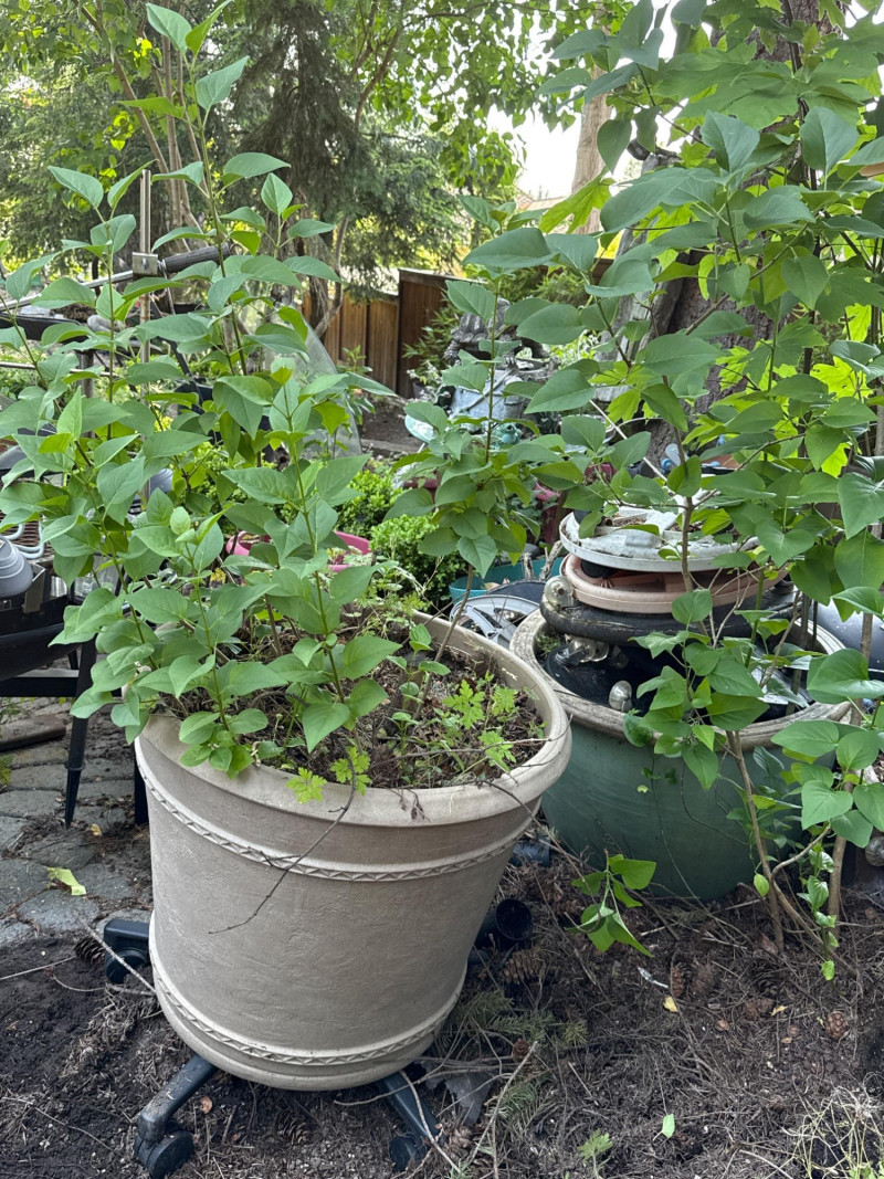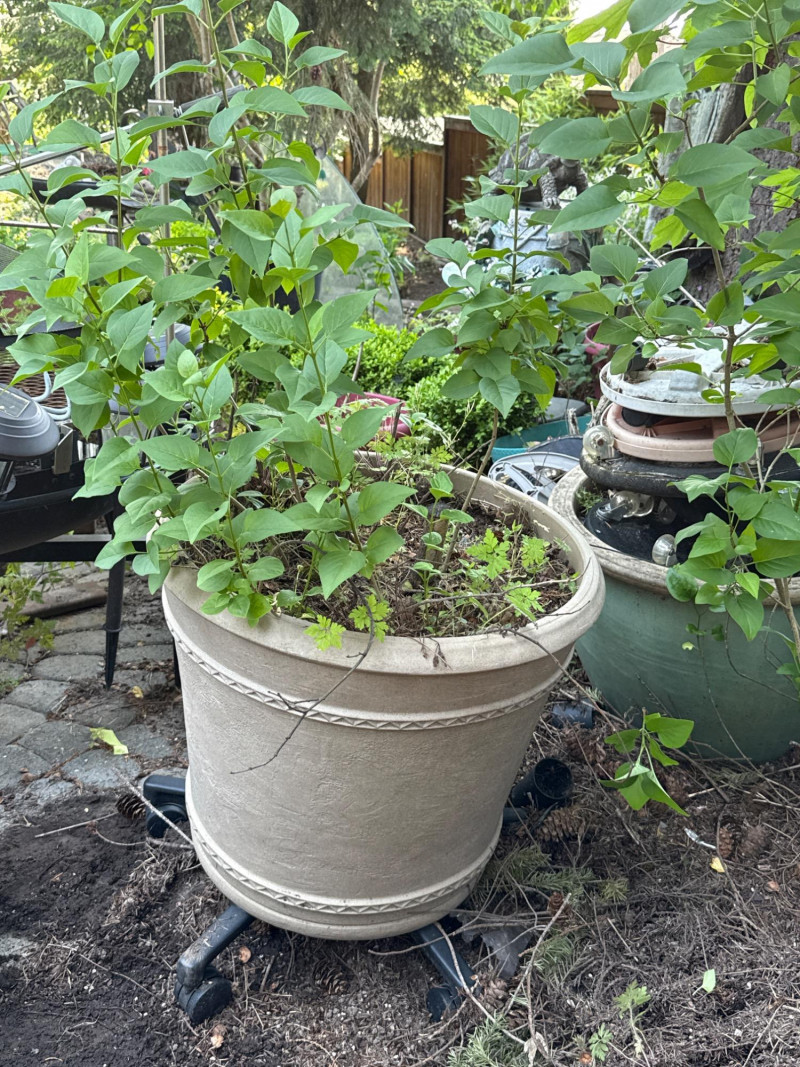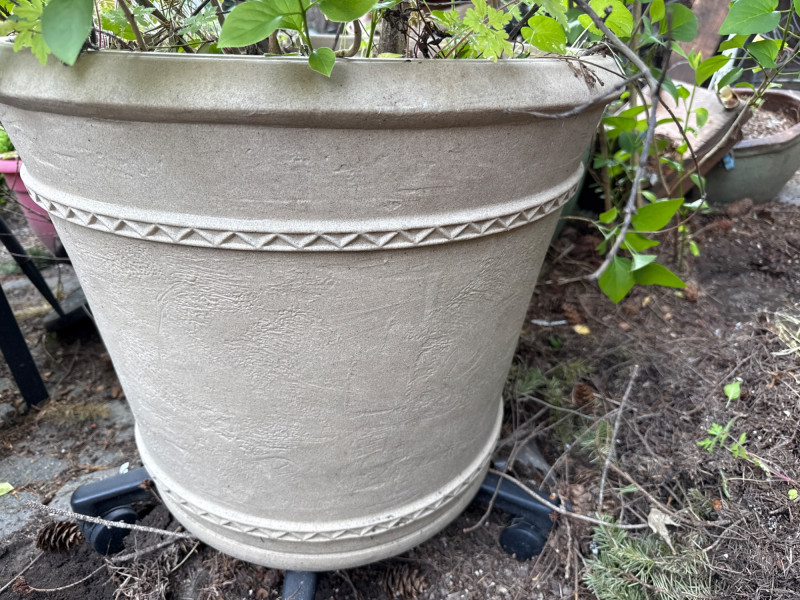 Lot # 100 - Lilac Shrub and Large Tan Pot with Wheels