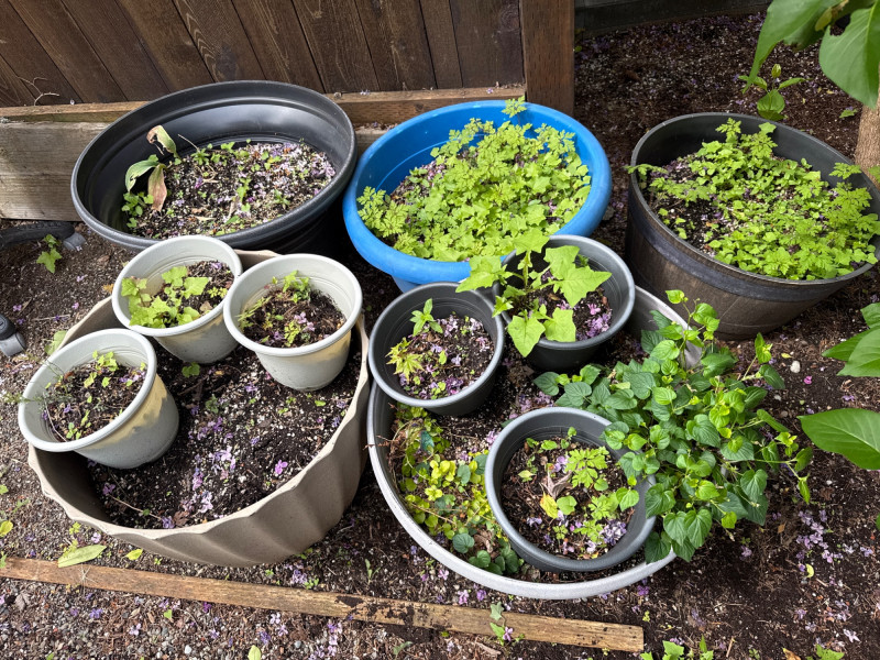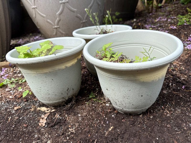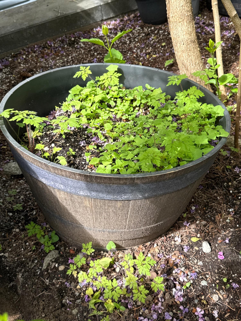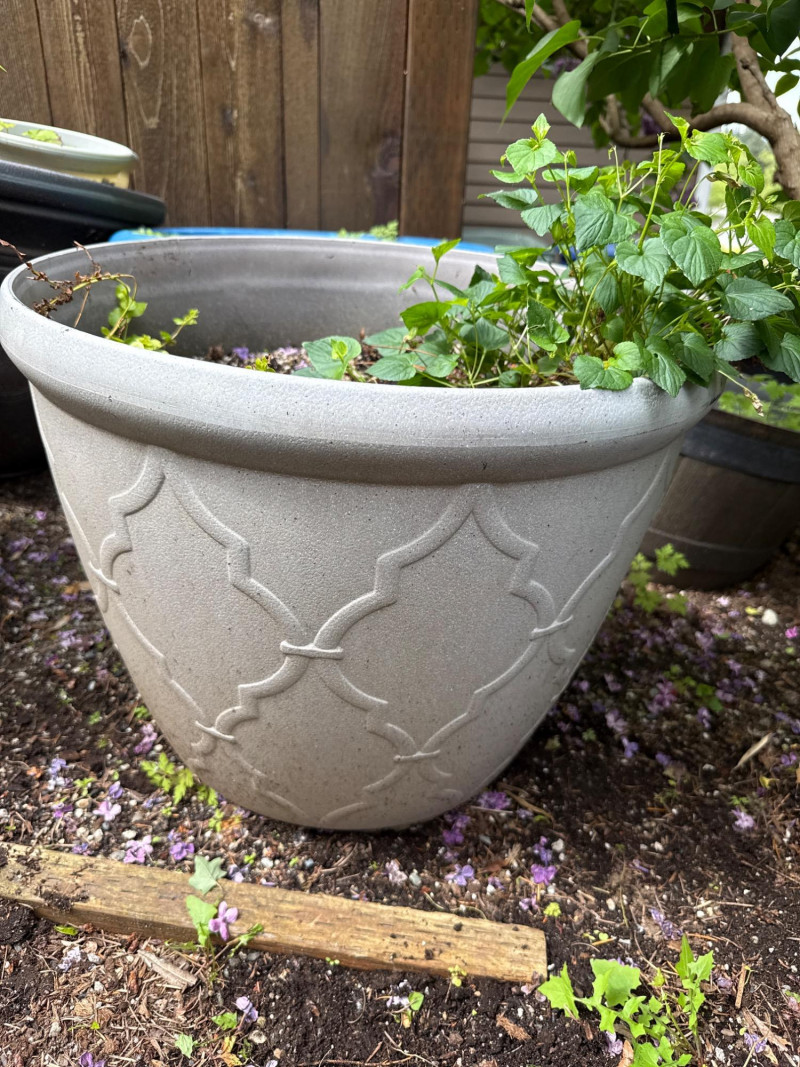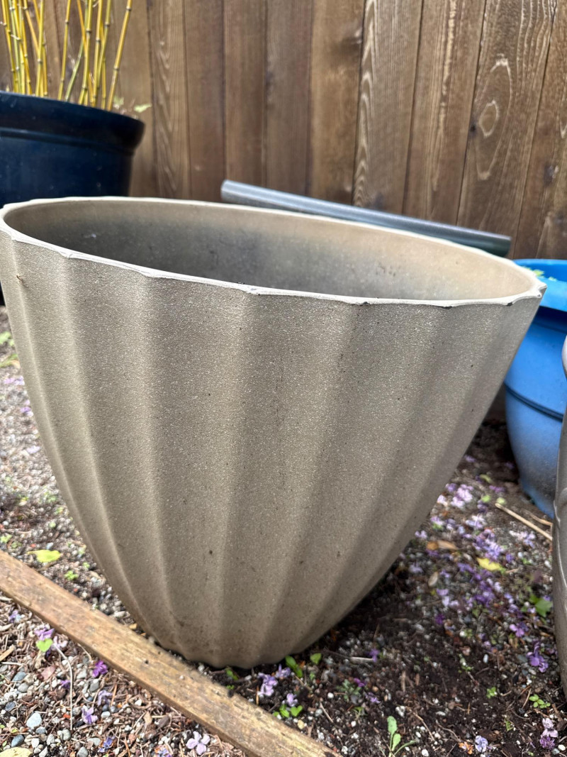 **Note: Plant dimensions are approximate. Plant health is not guaranteed but are being maintained. Plastic/Resin pot dimensions are: The black pot is 22in wide, 18in tall, white pot is 19in wide, 18in tall Plant dimensions from soil to tip are: Varies-Iris, Japanese Maple, Creeping Jenny Heavy, with easy load location. Bring support and equipment to help load.
