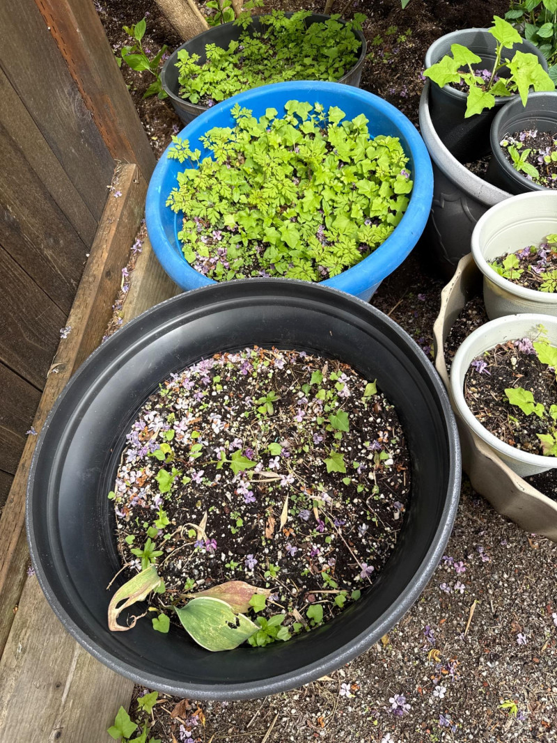 Lot # 101 - Five Large Mixed Colored Pots, Six Small Pots