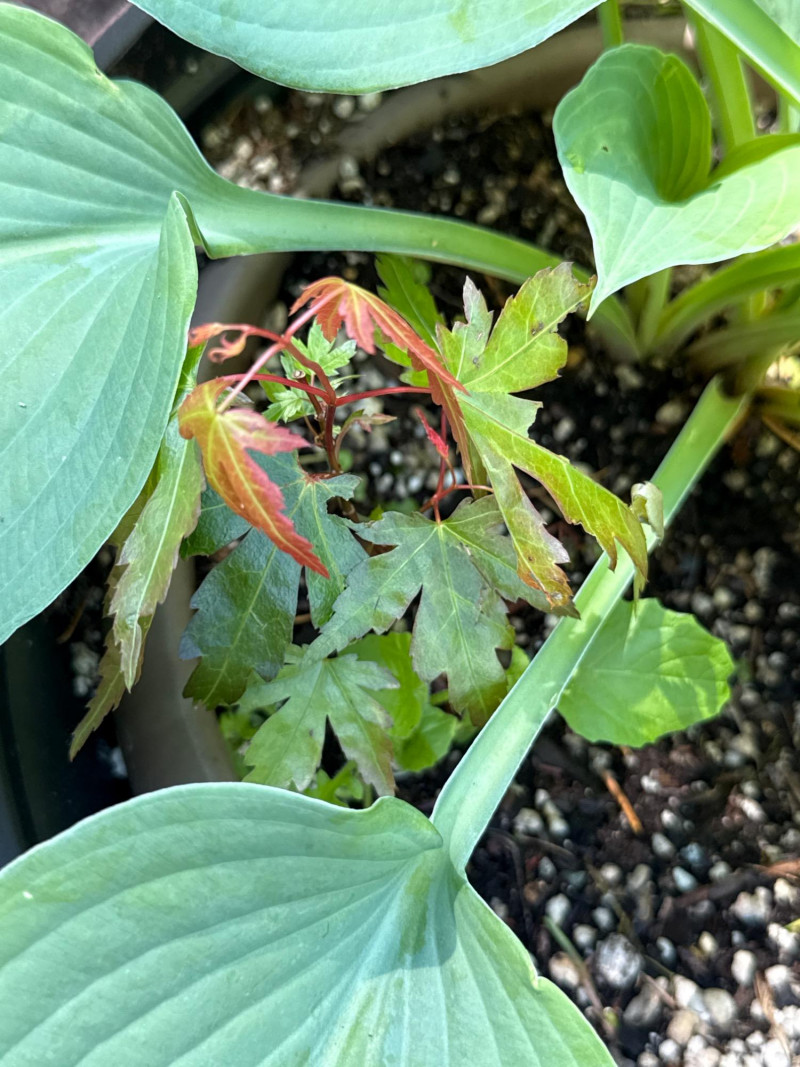 **Note: Plant dimensions are approximate. Plant health is not guaranteed but are being maintained. Plastic/Resin pot dimensions are: Stacked pot is 22in tall, 14in wide. One with wheeled base Plant dimensions from soil to tip are: Varies 3 pots total with Hosta's and Japanese Maple